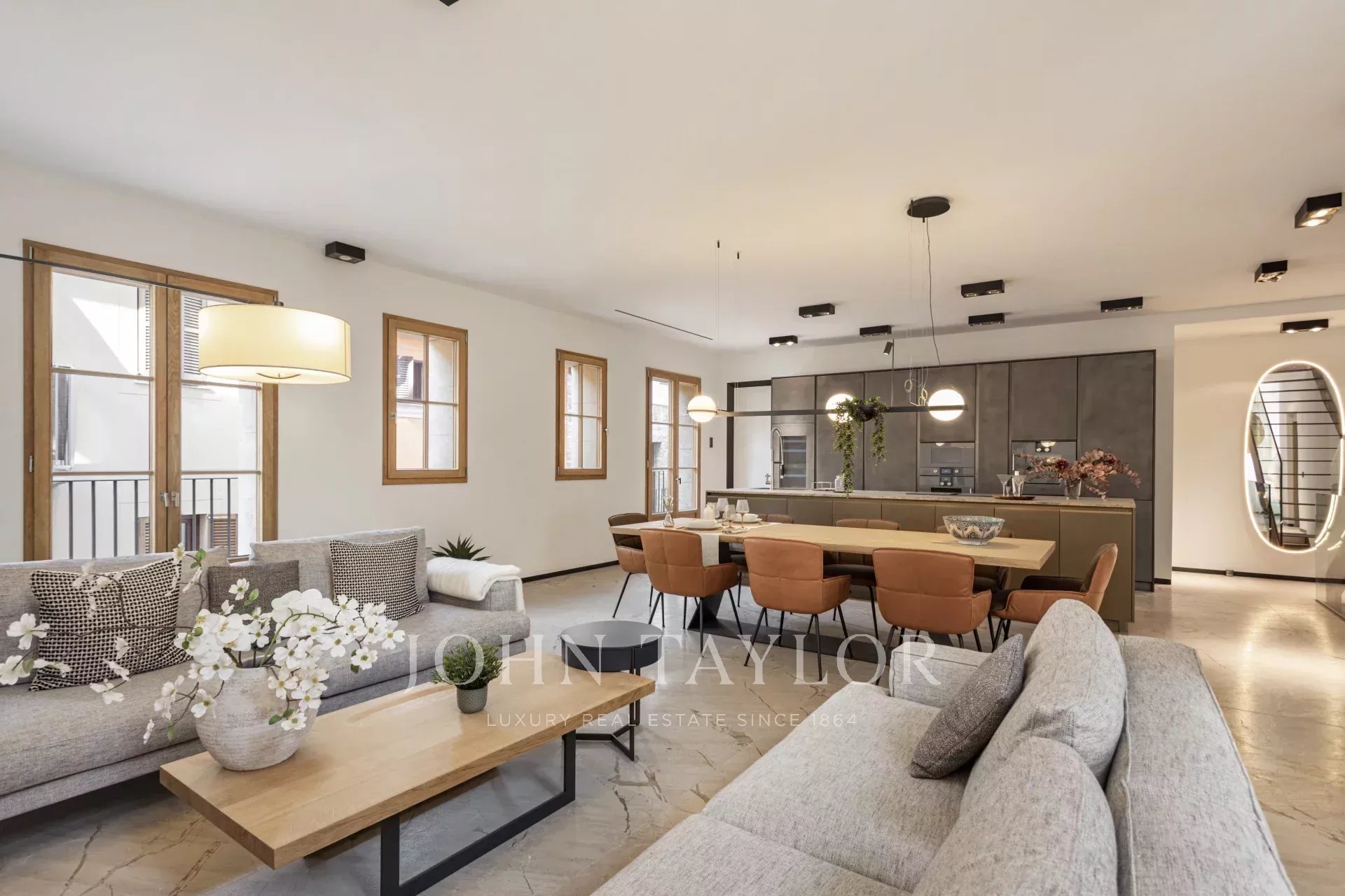 Расположенный в самом сердце Старого города Пальмы, всего в нескольких шагах от популярной площади Раймундо Клара, этот недавно построенный дизайнерский таунхаус возвышается на пяти уровнях - архитектурный шедевр, элегантно сочетающий в себе роскошь, комфорт и сущность средиземноморской жизни.