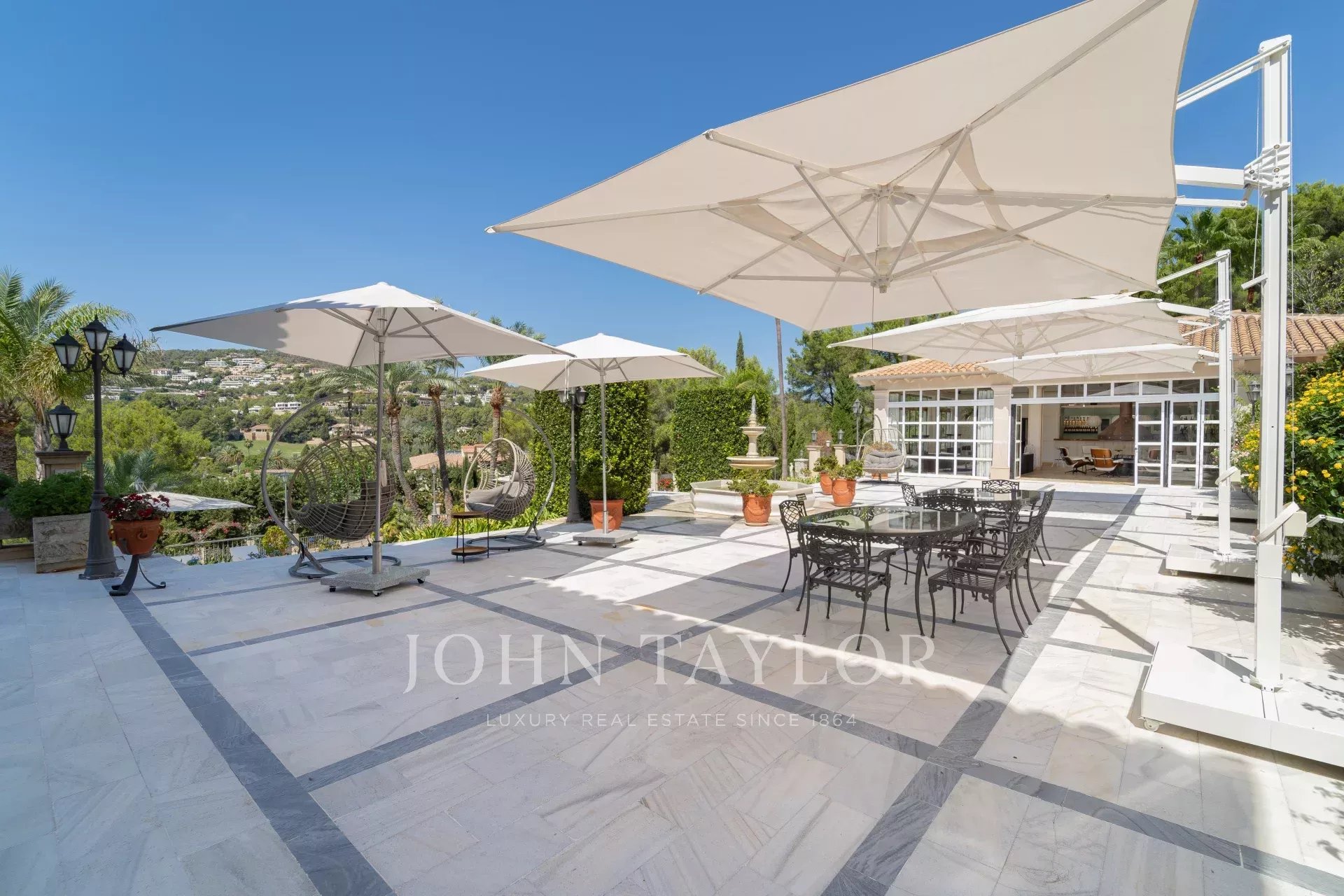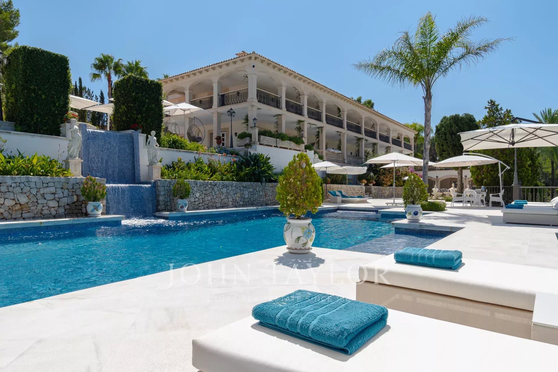 Замок М, величественно возвышающийся на высоком подсвеченном кольце стен, является одним из самых знаковых и престижных поместий в Сон Вида, откуда открываются захватывающие дух виды практически с любой точки обзора. В этом необычном особняке органично сочетаются неоклассическая архитектура и современная изысканность, а также изысканные детали, такие как нимфей, классические статуи, фонтаны, каскадный водопад и самые современные технологии "умного дома".