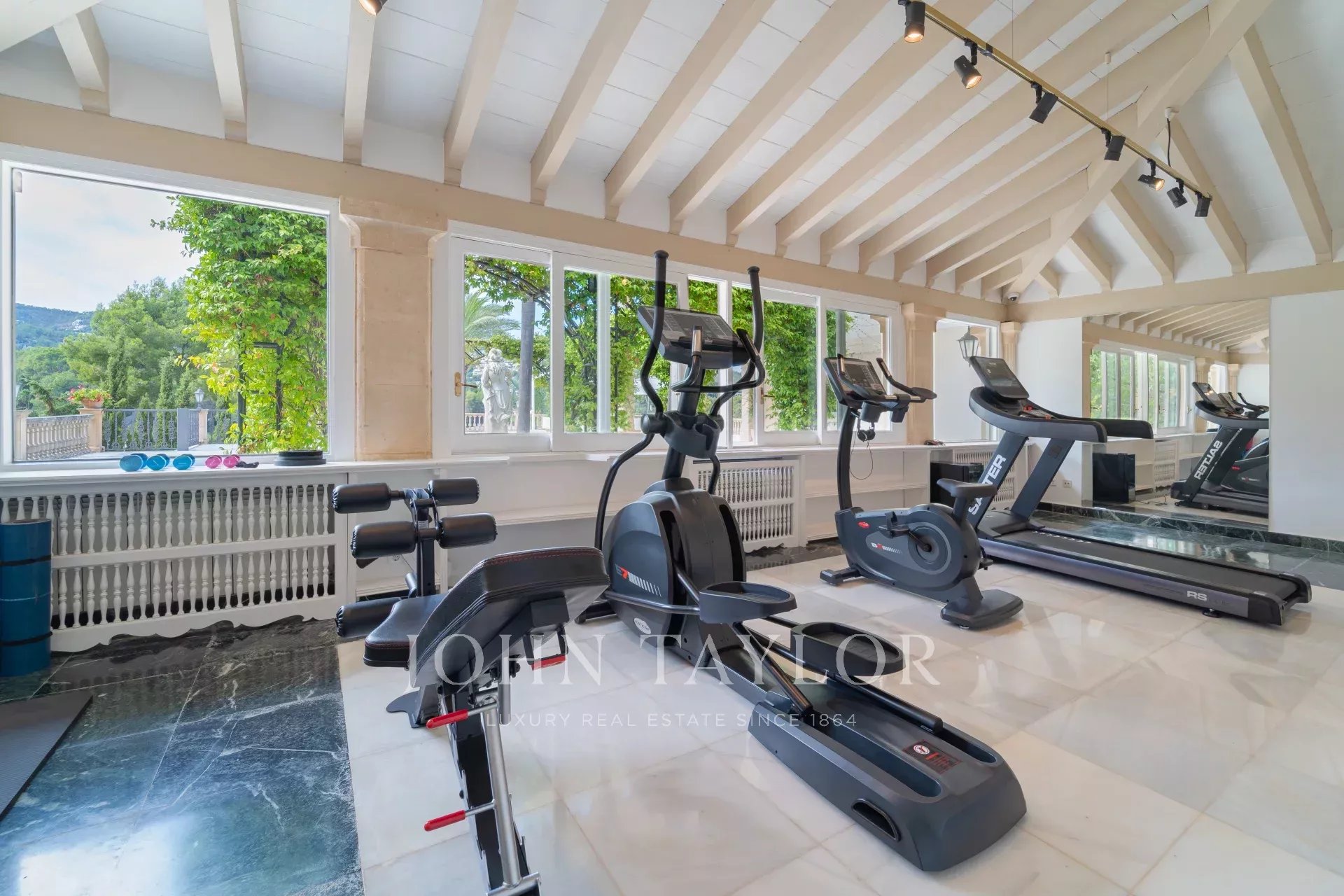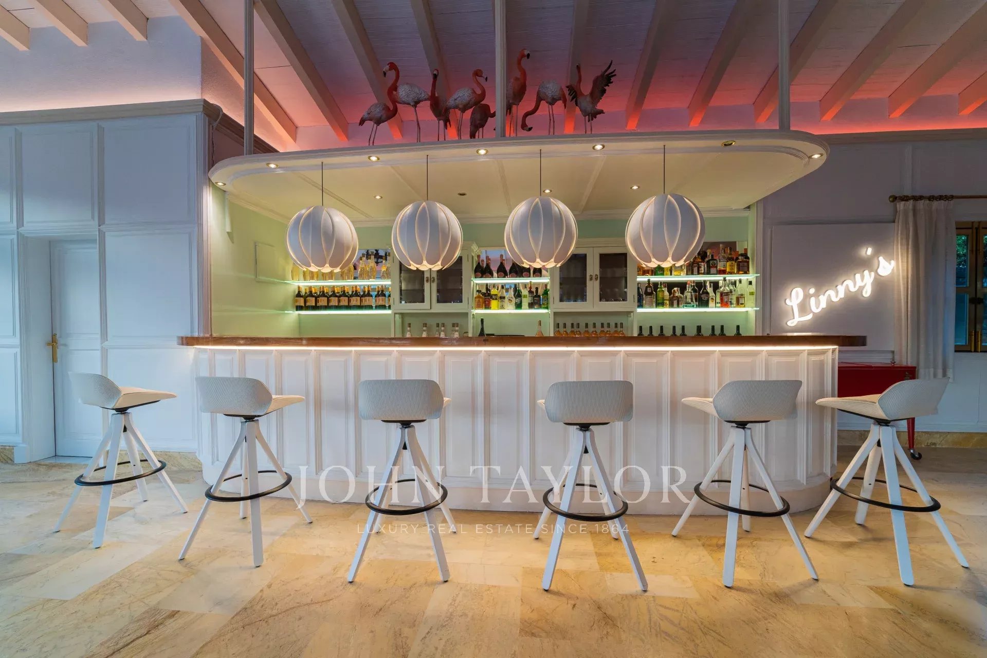 Впечатляющий вход: Вход через величественные ворота из кованой стали и длинную подъездную дорожку, вдоль которой растут 11 пальм. Развлекательные и оздоровительные зоны. У входа вы найдете спортивно-оздоровительную зону с тренажерным залом, небольшой кухней, ванной комнатой и гостевой комнатой, идеально подходящей для занятий йогой или массажем. В домике для барбекю с уникальным баром "Linny's" есть открытый дровяной гриль, варочная поверхность вок и большая каменная печь для пиццы - идеальное место для проведения собраний. Прилегающий к вилле парк ди Сабине очаровывает своей благоухающей жасмином оранжереей и безмятежным прудом с озером. Терраса - идеальное место, чтобы насладиться захватывающим солнечным закатом.
