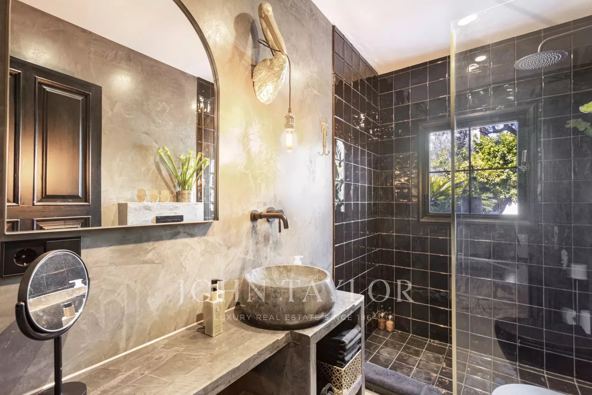 С первого этажа можно попасть на внутренний дворик и в дополнительные постройки, такие как частный спа-центр с бассейном-джакузи, частный винный погреб, апартаменты для гостей, два гаража на 10 машин, дополнительное помещение с ванной комнатой и кладовыми.