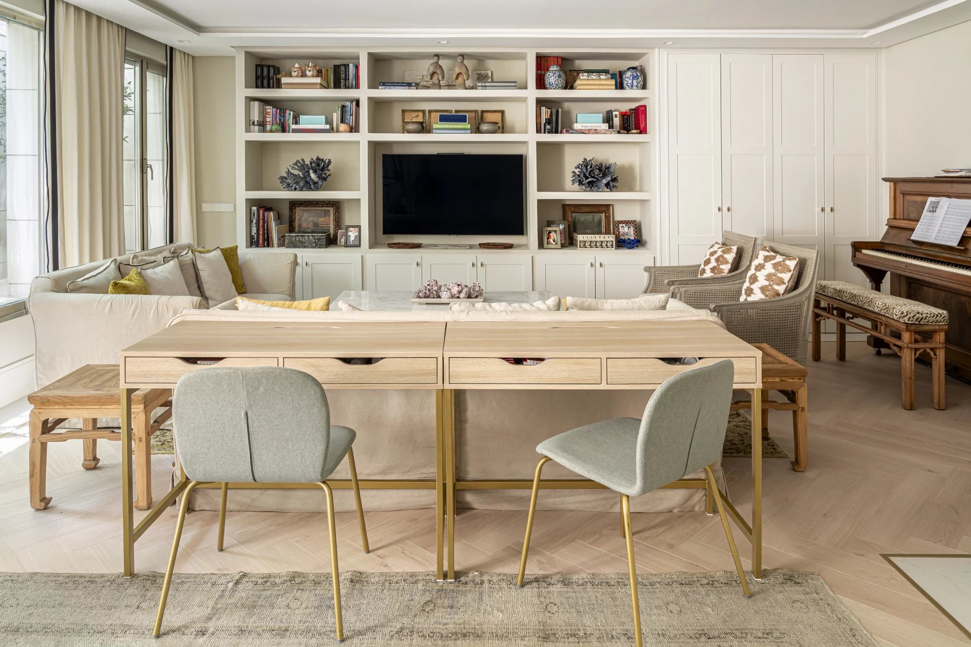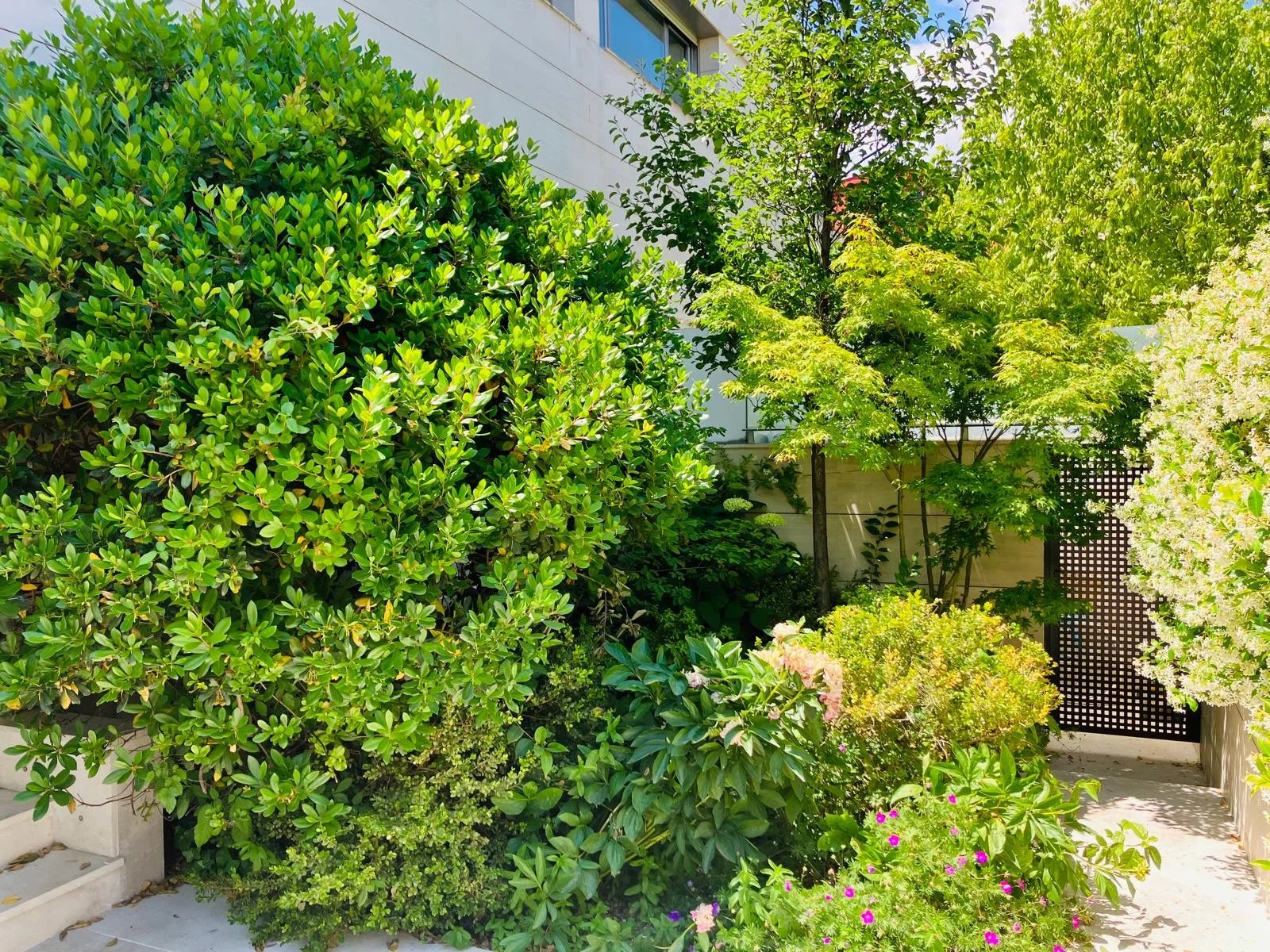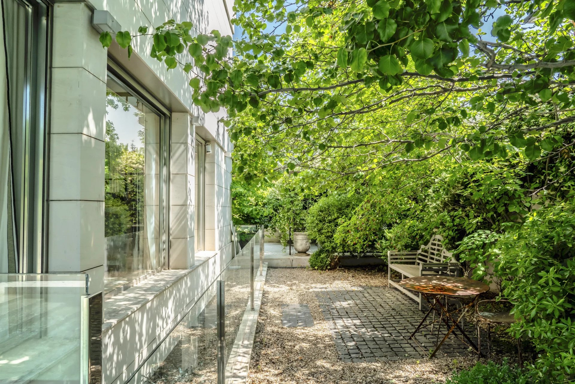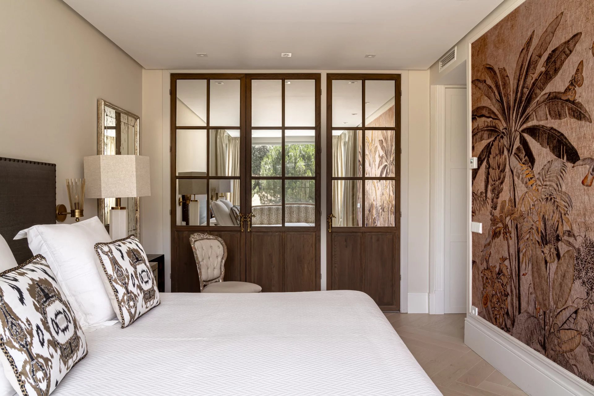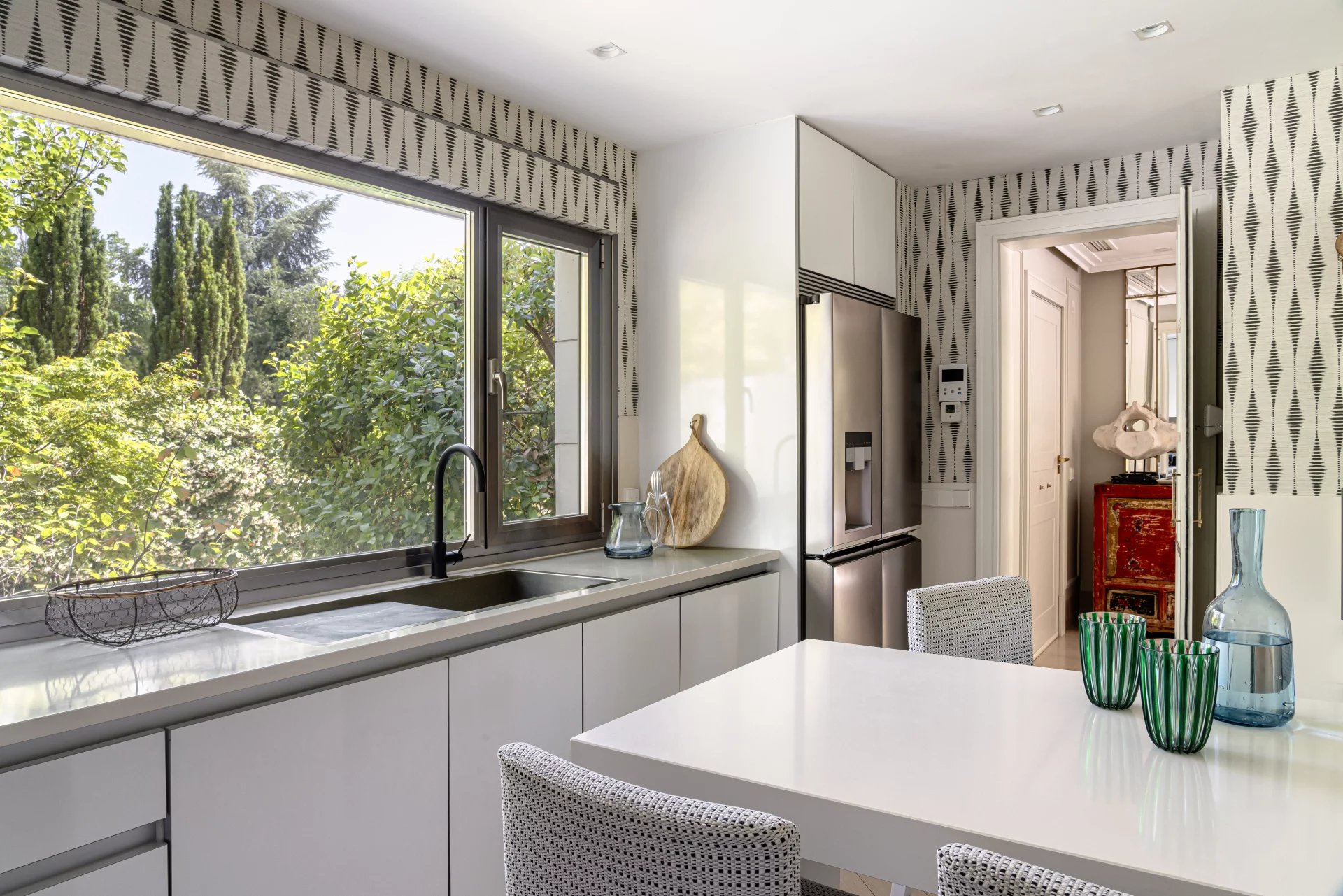 Архитектура, дизайн интерьера и ландшафтный дизайн выполнены с использованием дизайнерских деталей и высококачественных материалов: полы из светлого дуба и камня, окна из сатинированной стали, лакированные шкафы и двери, электрические ставни безопасности и маркизы с электроприводом. Застекленные внутренние дворики и большие окна привносят в дом много света.