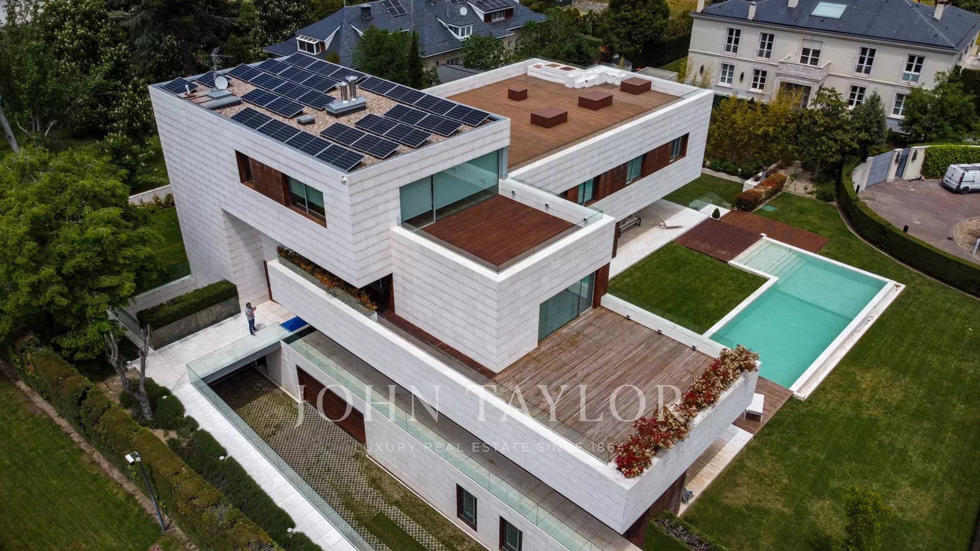 Для активного отдыха и релаксации в вашем распоряжении бассейн, фитнес-зал, сауна и спа. На прилегающей территории, окружённой зелеными насаждениями, находится игровая зона, барбекю и зона отдыха, освещённая декоративными светильниками. Блага включают также электроприводные маркизы, солнечные панели и ирригационную систему для поддержания сада в идеальном состоянии. Дополнительный комфорт обеспечивают подземный паркинг, домик для обслуживающего персонала и лифт для удобного доступа на любые этажи.