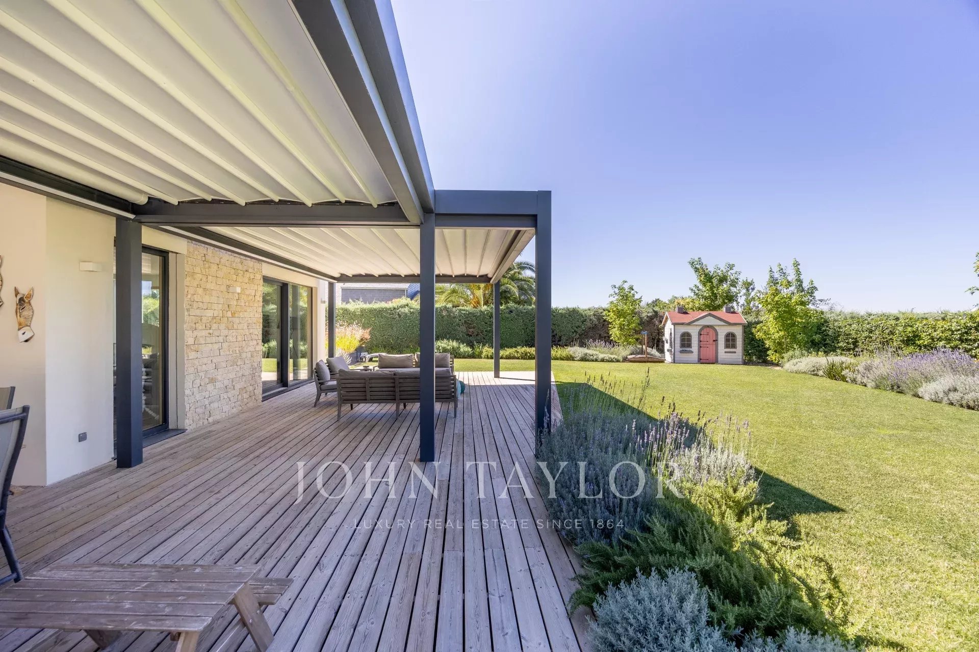 Внешняя отделка сопоставима, сад, спроектированный известным ландшафтным дизайнером, также отвечает требованиям низкого потребления воды и воссоздает несколько различных сред, бассейн с соленой водой, веранда с беседкой итальянской конструкции с выдвижной крышей и полом из сосновой древесины, обработанной в печи, садовое освещение, колонки...