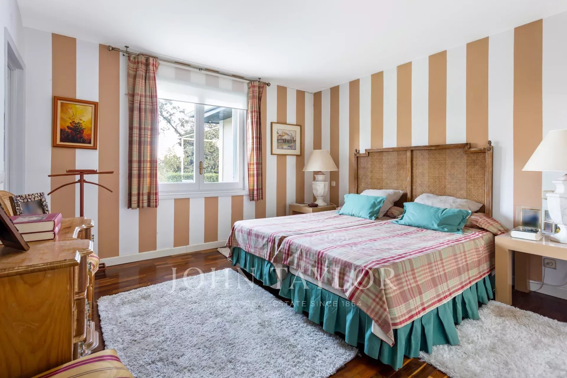 На этом же этаже находятся три спальни, каждая с ванной комнатой (главная спальня очень большая). Рядом с кухней находится большая прачечная, комната для прислуги с собственной ванной комнатой и кабинет. С этого уровня есть доступ к отдельной квартире с двумя спальнями, большой кухней и ванной комнатой.