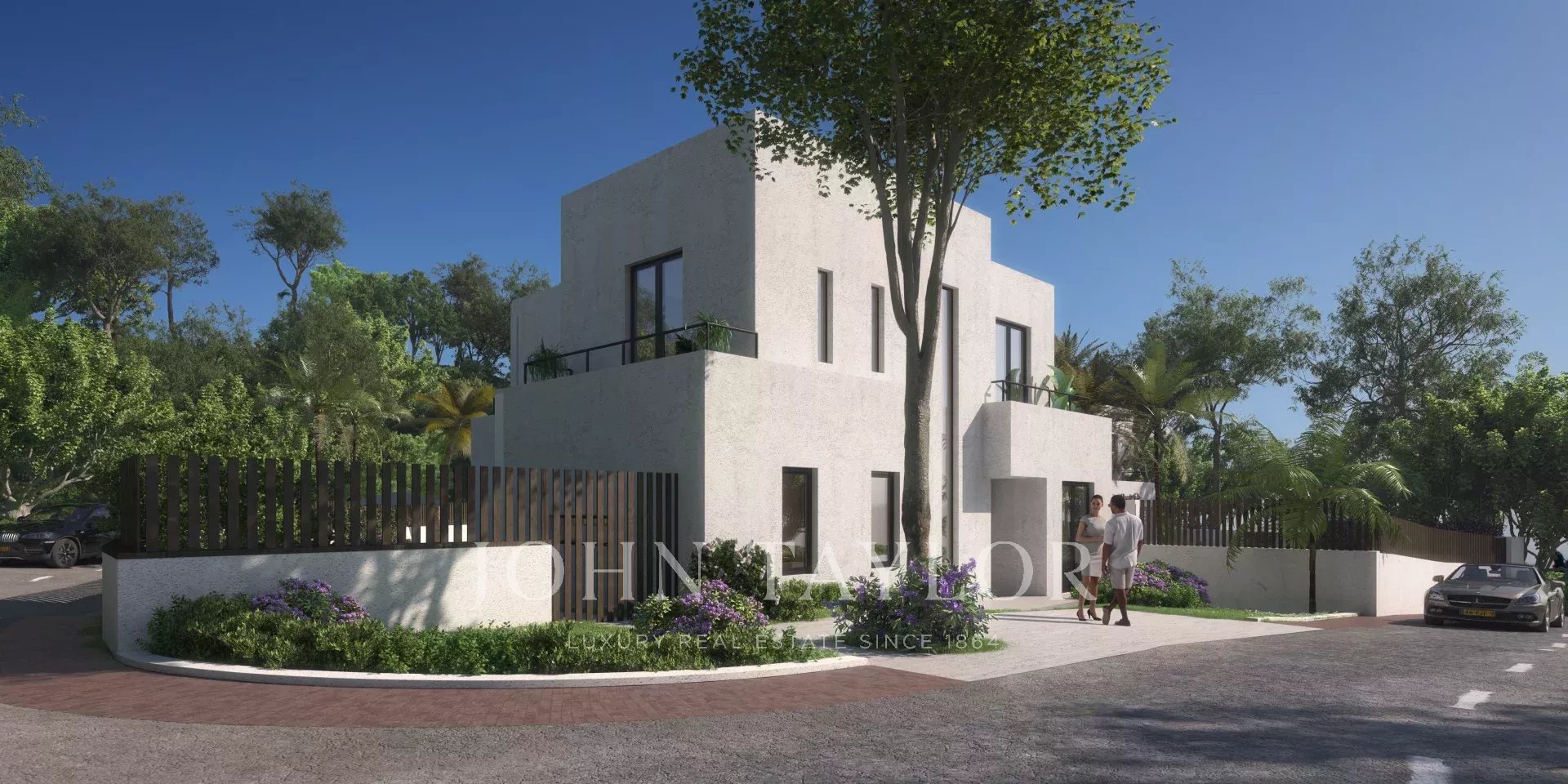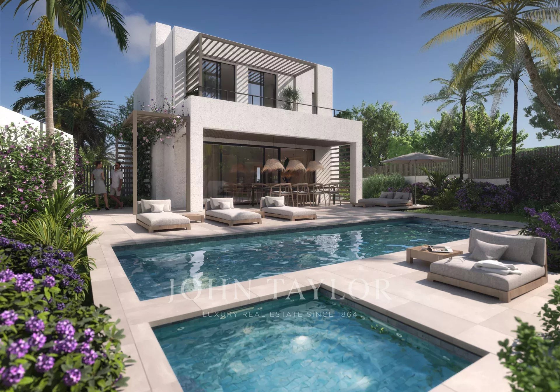 Пространство на участке спроектировано как частный оазис с террасой, бассейном, джакузи и зелёными насаждениями. Возможна установка летней кухни, барбекю или лаунж-зоны. Предусмотрены три парковочных места.