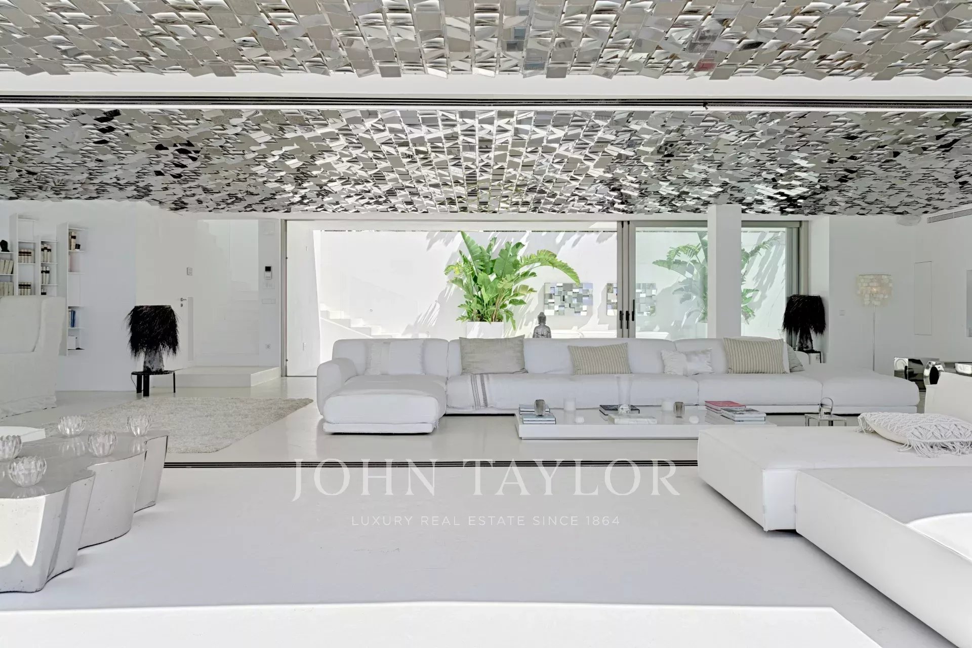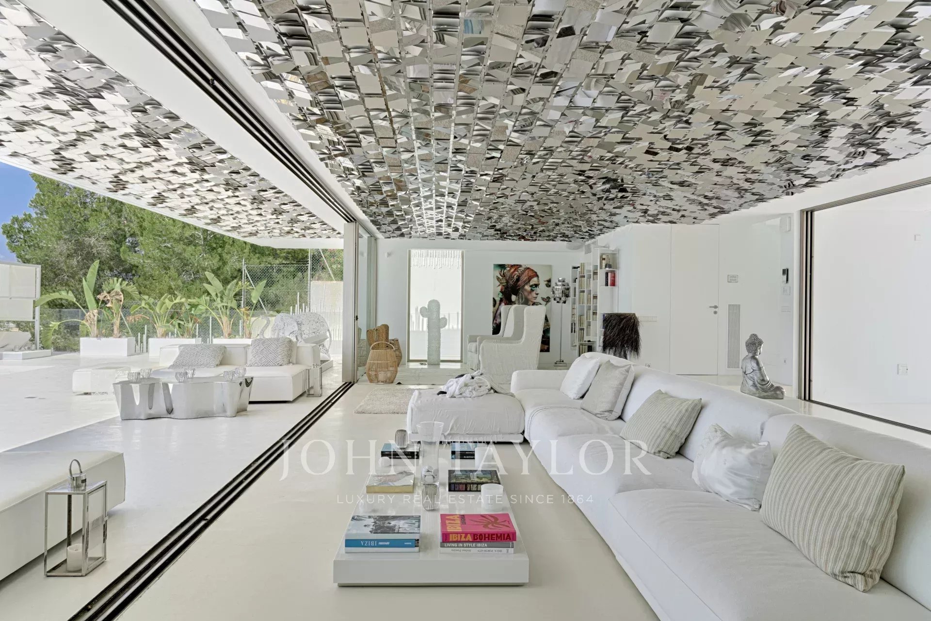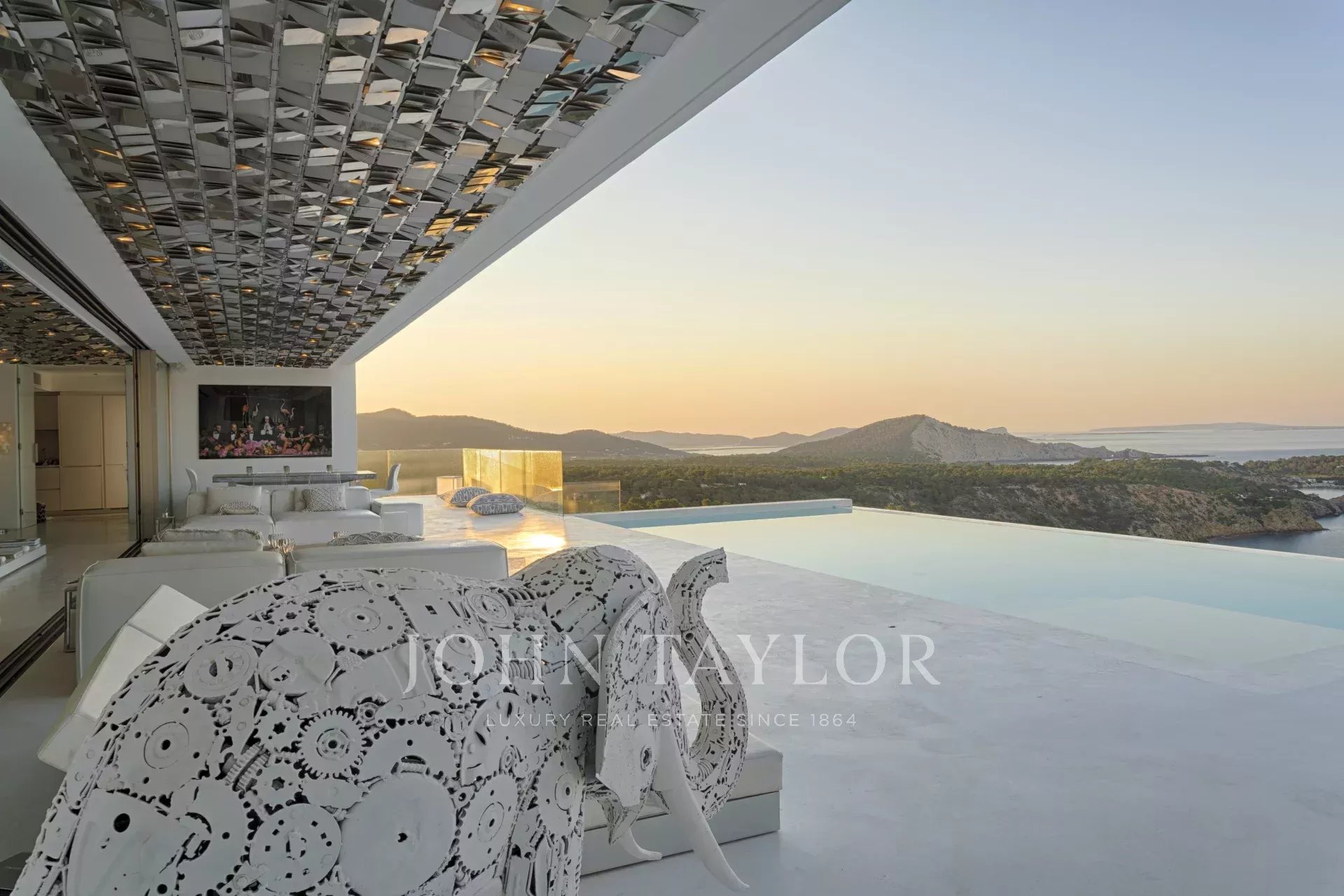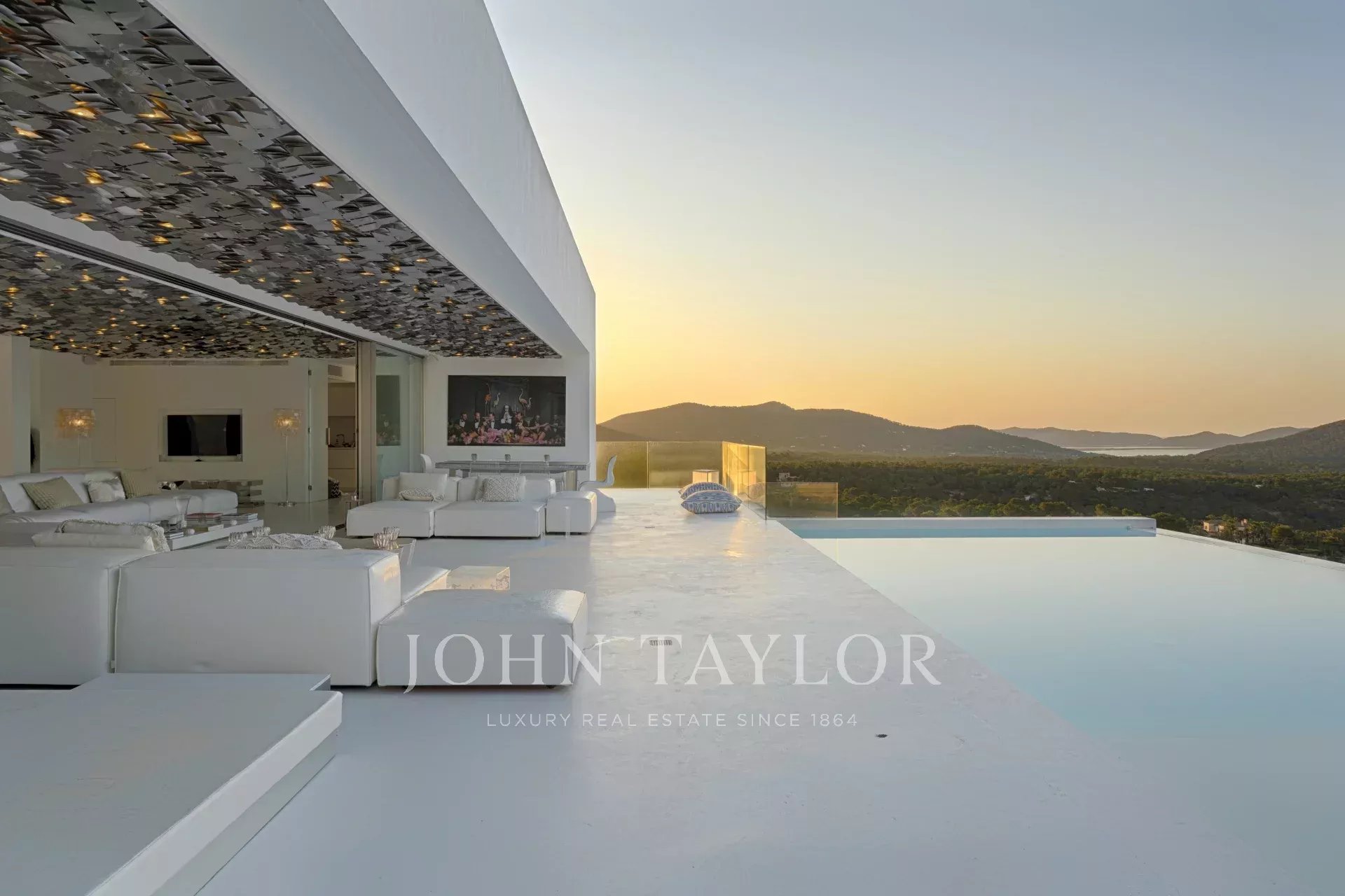 Элегантная резиденция, расположенная в престижном кондоминиуме Vista Alegre, одном из самых престижных закрытых сообществ на Ибице, известном своей круглосуточной охраной и наблюдением. Стратегически расположенная на вершине горы, эта недвижимость предлагает непревзойденные панорамные виды на мерцающее Средиземное море, а также очаровательные пейзажи Форментеры и живописные города Эс-Кубельс, Салинас и Порройг.
