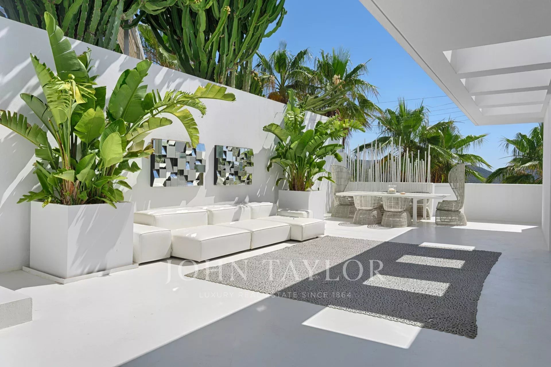 Пиèce de résistance этой резиденции находится на верхнем этаже, где расположена просторная спальня с ванной комнатой, а также эксклюзивная зона отдыха на открытом воздухе, дополненная джакузи, которая располагает к безмятежности при созерцании величественного горизонта Средиземного моря.