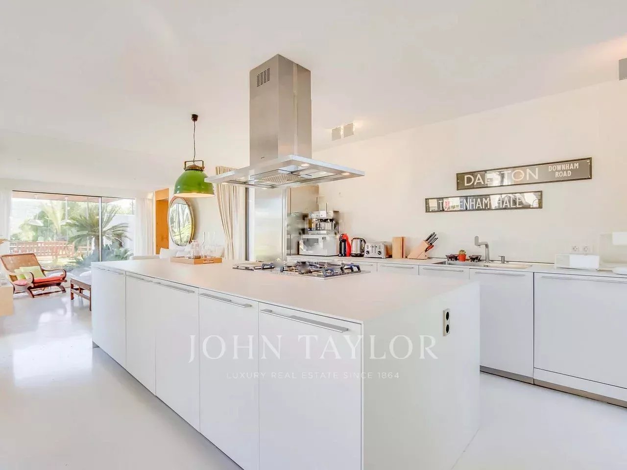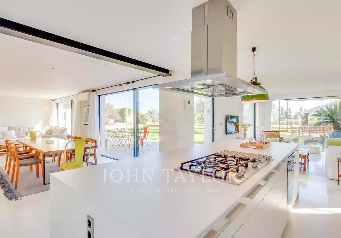 Окруженная ровным садом с натуральной травой и бассейном с изумрудной плиткой, эта светлая и спокойная недвижимость излучает элегантность.