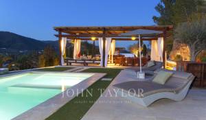 Эта вилла сочетает традиционную архитектуру Ибицы с балийскими мотивами и современным дизайном. Бассейн с панорамным видом, шезлонги, балийская кровать с балдахином и беседка с обеденной зоной и летней кухней создают идеальные условия для незабываемого отдыха.