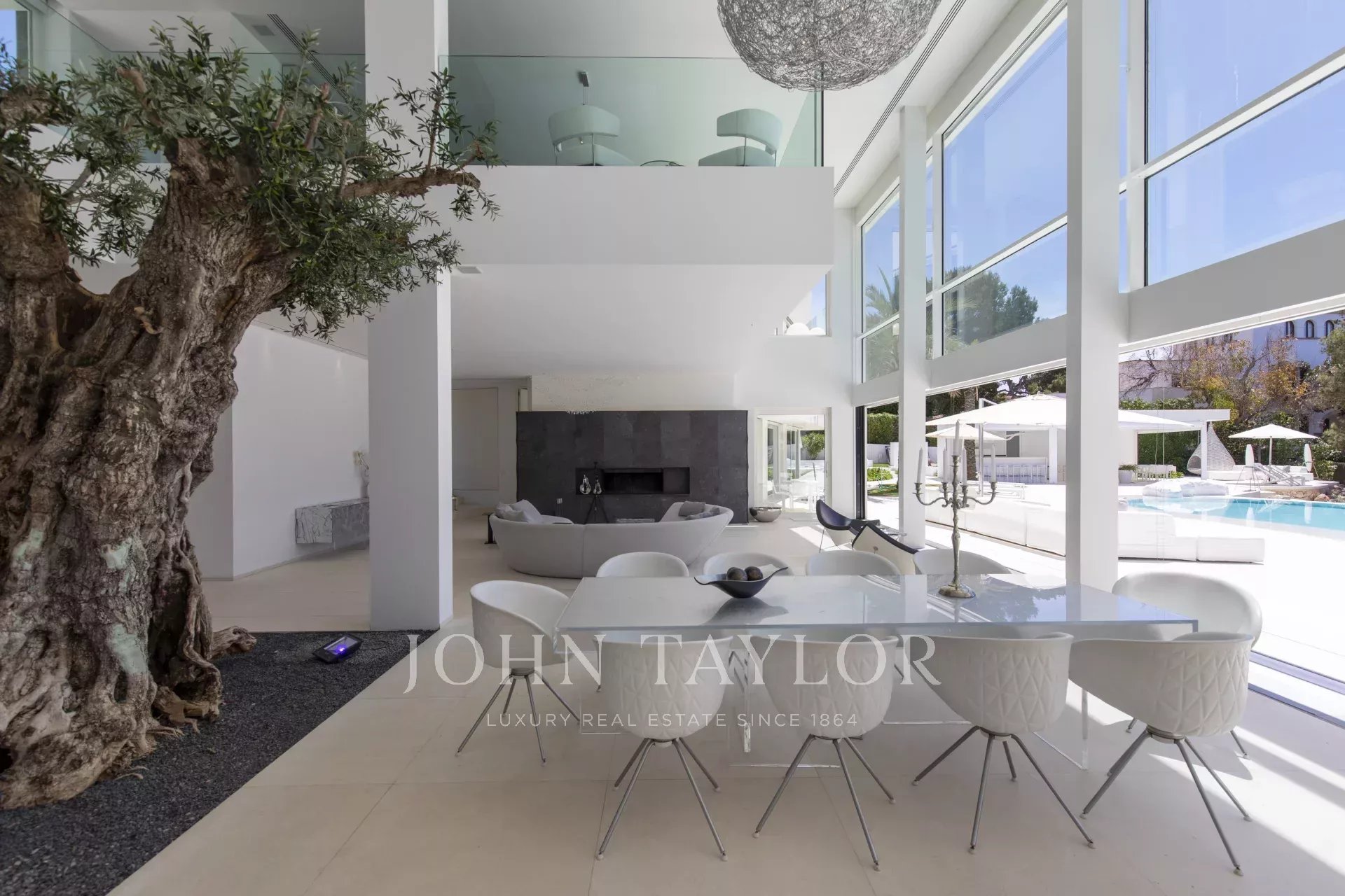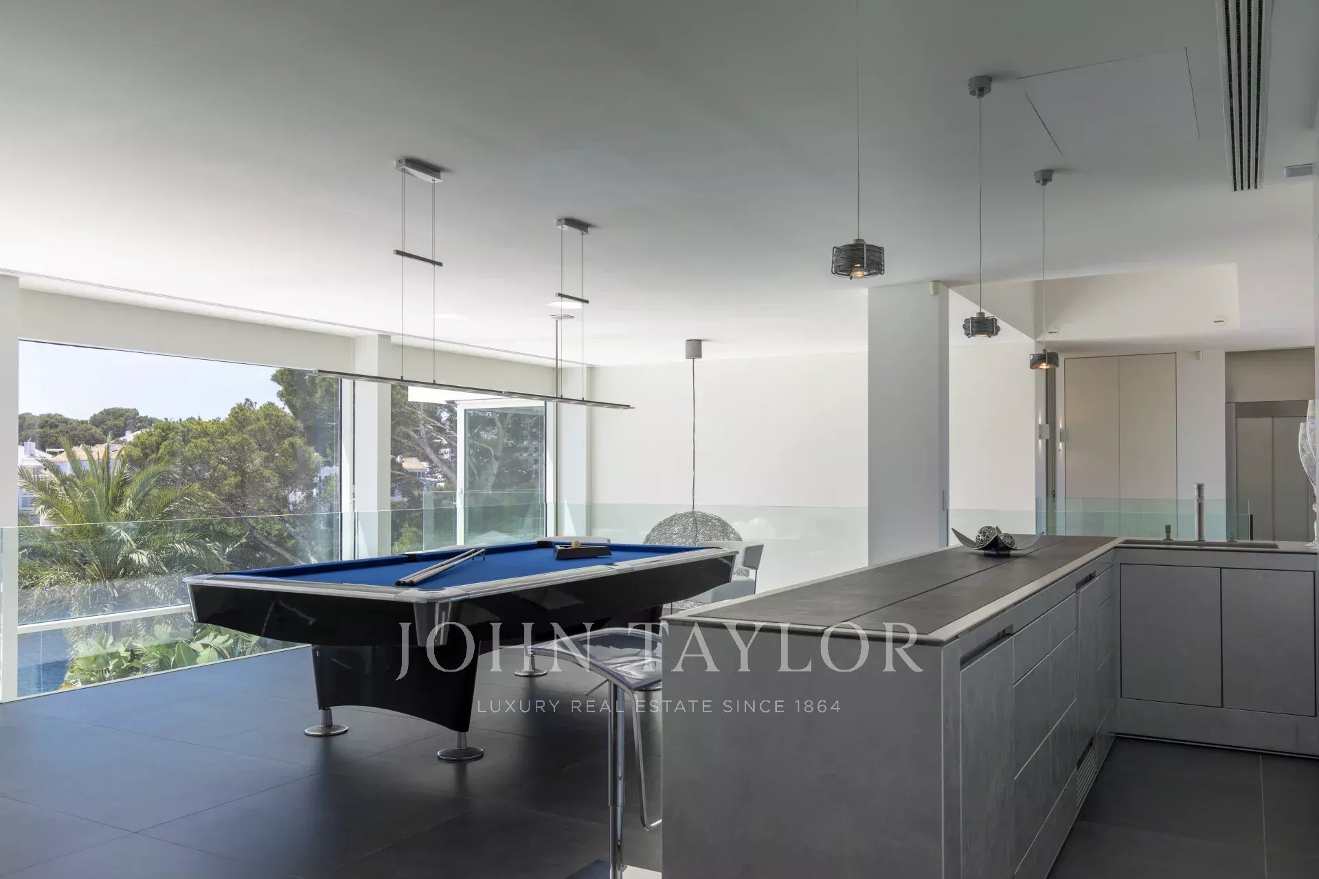 Эта вилла расположена в Кала Д'Ор и поражает своей уникальной эксклюзивностью. Интерьер Casa Roel был разработан самим владельцем и превращает виллу в футуристический шедевр. Построенная в 2013 году, вилла возвышается над заливом Кала Д'Ор и предлагает захватывающий панорамный вид на залив. Лагунный бассейн длиной более 25 метров, скальный водопад, а также джакузи являются дополнительными удобствами дома. На участке площадью 4500 м2 есть несколько зон отдыха с площадками для принятия солнечных ванн и крытая открытая гостиная с баром и барбекю. Частный выход к морю и частный причал для яхт длиной до 25 метров также входят в число преимуществ. 100-летнее оливковое дерево, встроенное в прихожую, намекает на уникальность этого дома, как только вы входите в него. Во всем доме установлены кондиционеры и полы с подогревом. Гостиная, терраса на крыше, а также главная спальня оборудованы звуковой системой Sonos. Полностью оборудованная дизайнерская кухня с винными холодильниками не оставляет желать лучшего. В Casa Roel 5 спален с двуспальными кроватями и главная спальня. В главной спальне, а также в 3 спальнях с двуспальными кроватями есть собственные ванные комнаты. Две из 6 спален имеют общую ванную комнату. Среди других удобств дома - фитнес-зал с высококачественным оборудованием и видом на море, бильярдная и собственная медиа-комната с 3D-экраном и настольным футболом. Благодаря исключительному освещению вилла предлагает особую атмосферу в вечернее время, являясь идеальным местом для эксклюзивного отдыха.