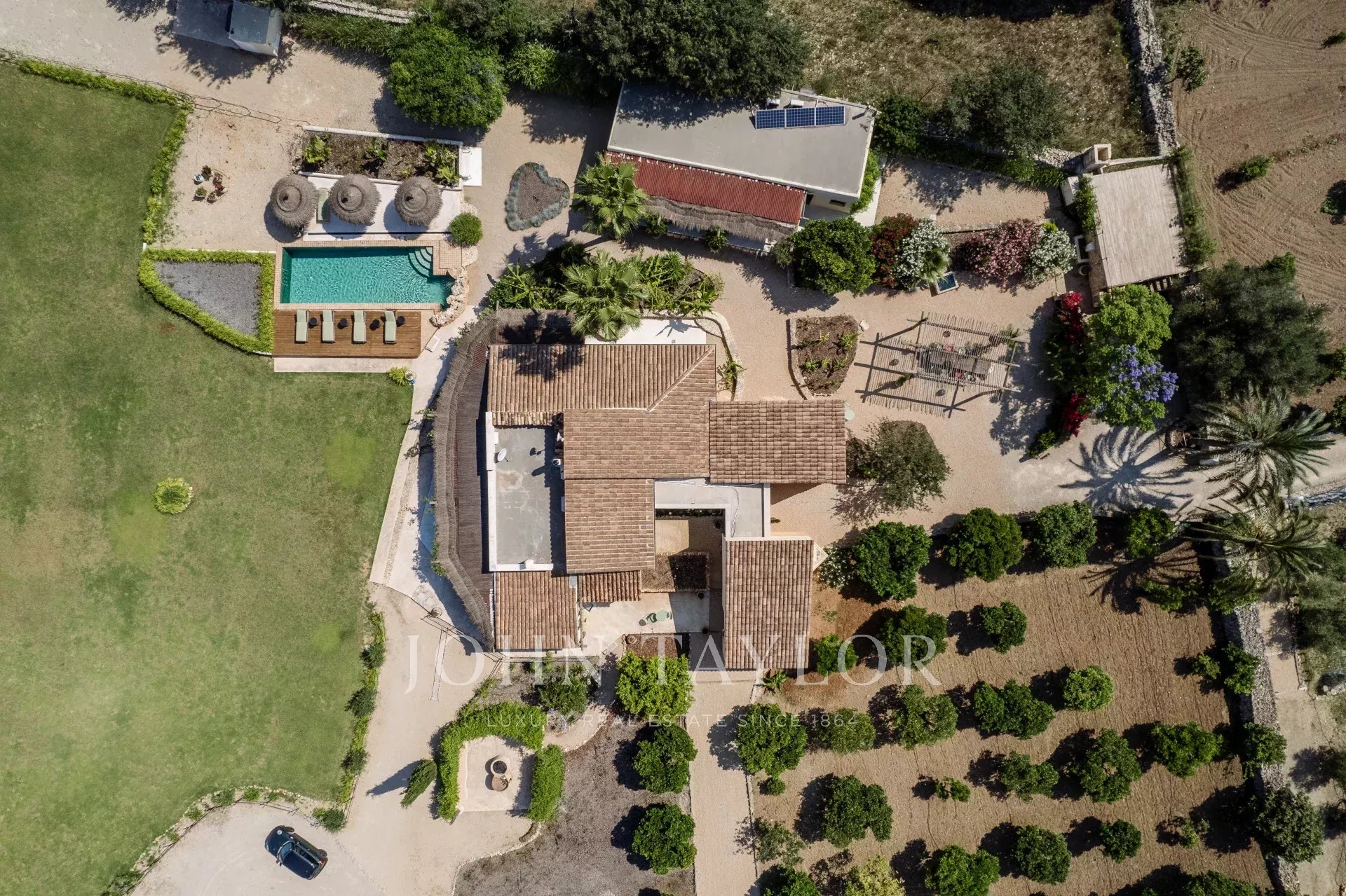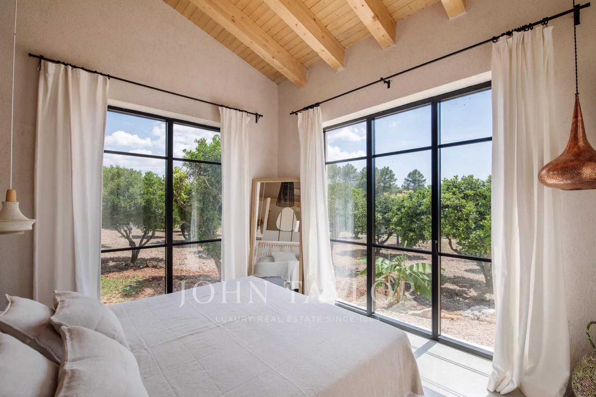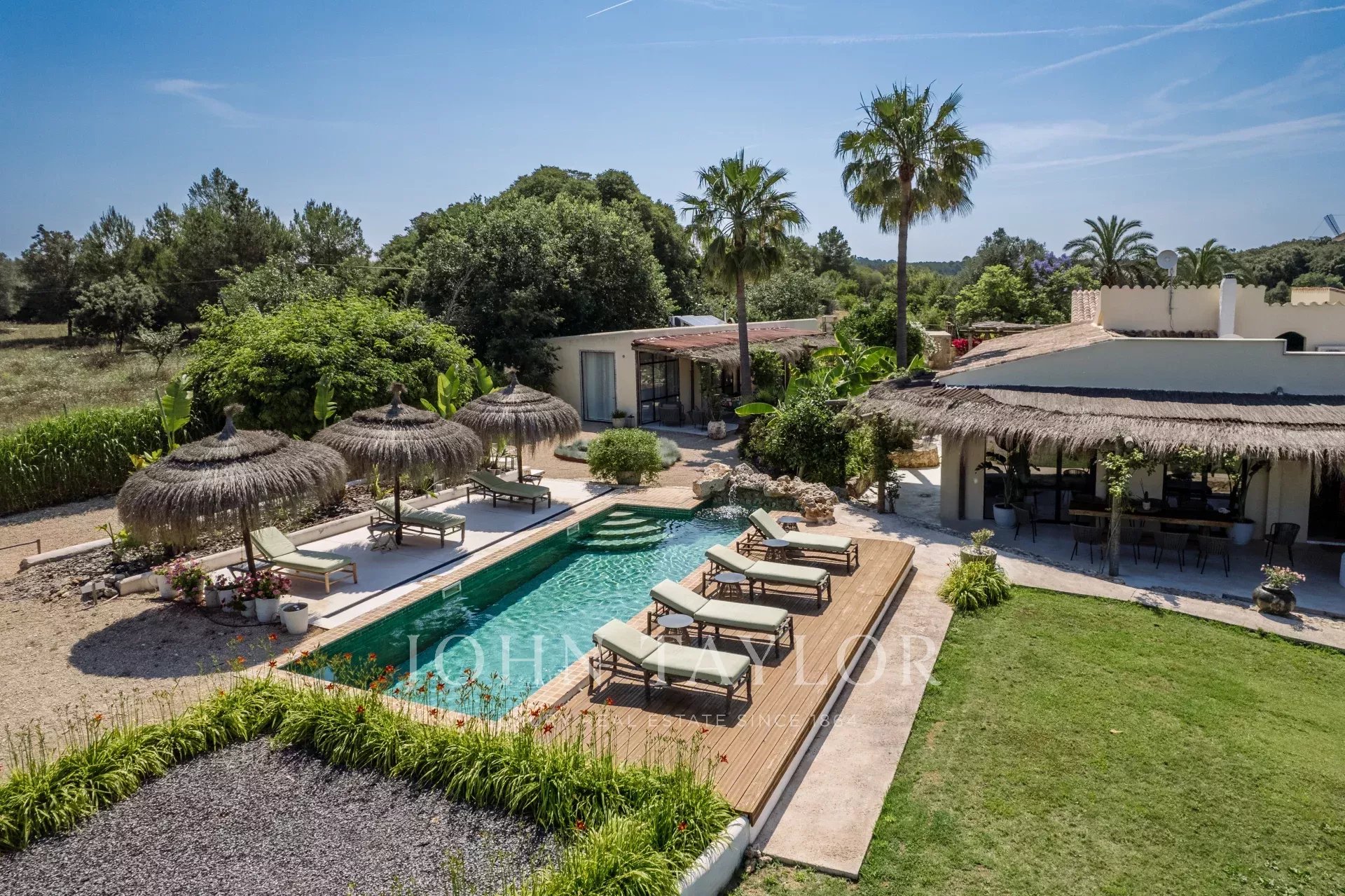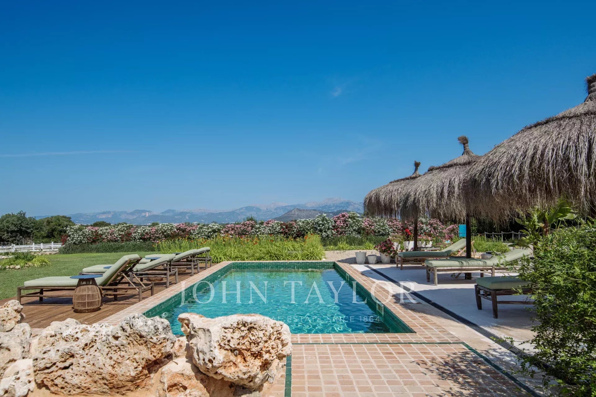 Красивая финка Only Summer была полностью отремонтирована в 2020 году и очаровывает своим необычным дизайном. Связь с природой здесь на первом плане. Теплые текстуры и цвета в сочетании с современным дизайном создают особую атмосферу, располагающую к отдыху. Экзотический уголок для релаксации. В финке могут разместиться до 10 человек в 5 спальнях с двуспальными кроватями. 3 спальни находятся в главном доме, 2 - во флигеле. Во всех спальнях есть ванная комната с душем, кондиционер и подогрев полов. Кухня открытой планировки светлая, а прилегающая к ней гостиная залита светом благодаря большому окну на фасаде. В доме есть спутниковое телевидение, Wifi и музыкальная система Sonos. Большой бассейн на открытой площадке (подогреваемый за дополнительную плату) позволяет освежиться в жаркие дни. На участке в самом сердце Майорки, окруженном красивым ландшафтом с видом на горы Трамунтана, растут многочисленные фруктовые деревья и органический огород. На территории Finca Only Summer есть загон площадью более 10 000 м2 с величественно выглядящими лошадьми. Близлежащая деревня Ллуби находится всего в нескольких минутах езды, а столица острова Пальма - примерно в 45 минутах езды на автомобиле.