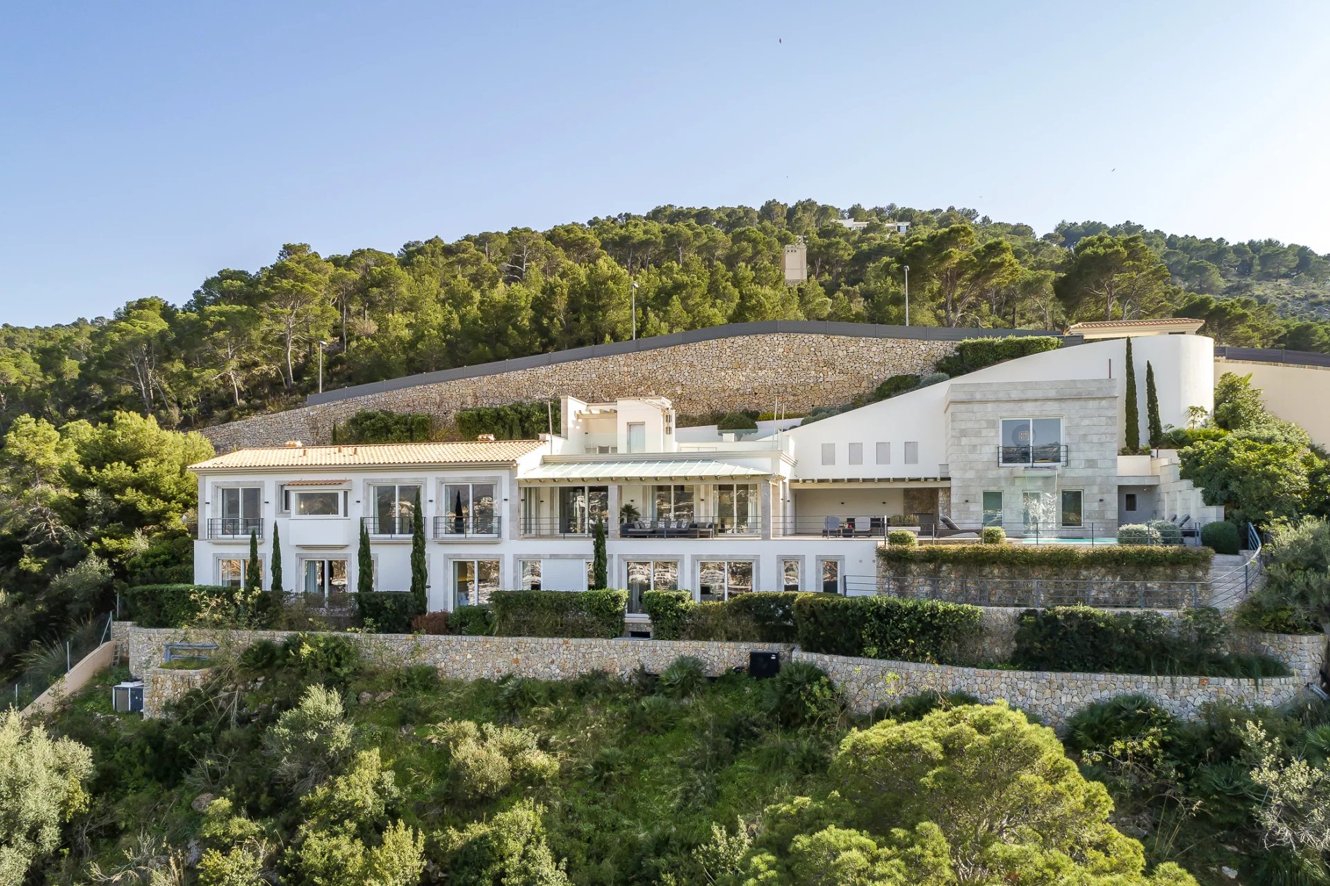 На вилле установлена собственная система domotic, которой можно управлять из любого места с помощью iPad. До гавани и набережной Пуэрто-де-Андрач с ее многочисленными бутиками, художественными галереями и первоклассными ресторанами можно дойти пешком всего за несколько минут. Любителям гольфа понравится расположенное неподалеку поле для гольфа в Камп-де-Мар - одно из многочисленных полей для гольфа на Майорке. Столица острова, Пальма, находится примерно в 20 минутах езды на автомобиле, а до аэропорта можно добраться примерно за 25 минут на машине.