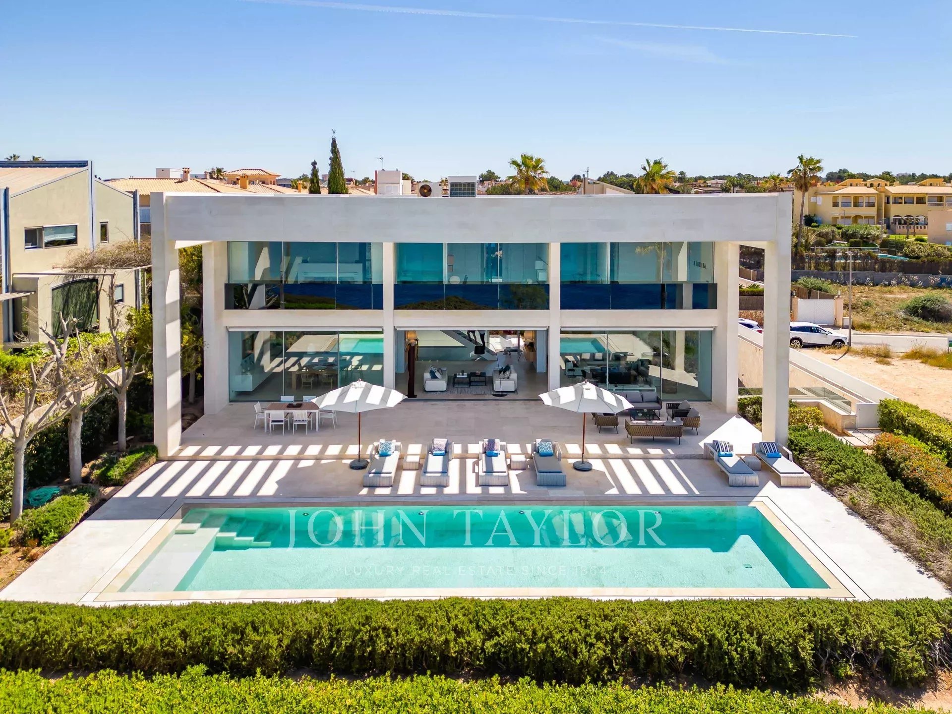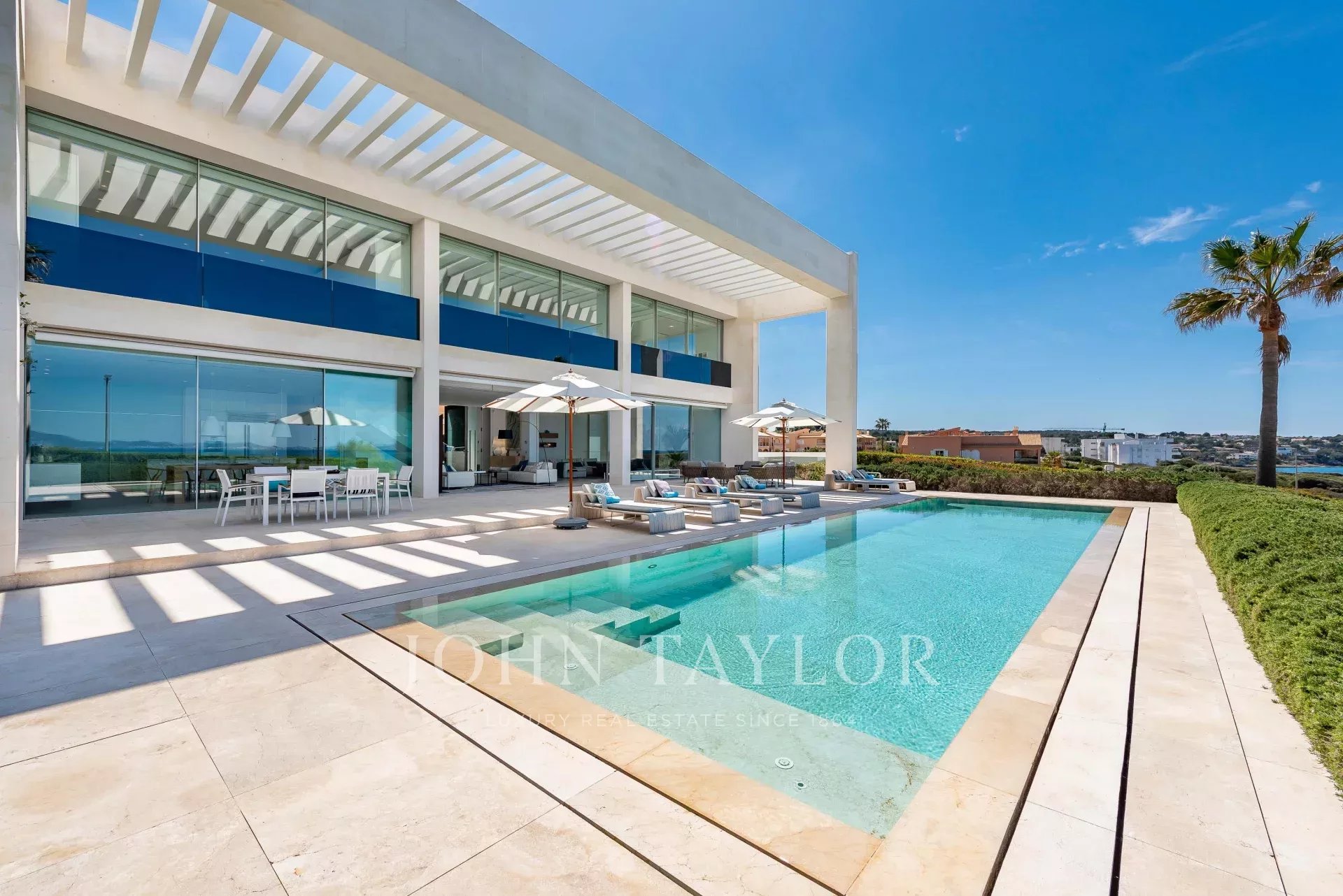 Эта фантастическая вилла на берегу моря в Сон Вери, расположенном на юге острова Майорка. Размер, комфорт и современный дизайн - вот особенности этой захватывающей дух виллы, которая характеризуется большими окнами и пространством, что интегрирует пейзаж и свет в роскошную виллу. Вилла очень высокого качества имеет 4 большие спальни с возможностью установки пятой спальни. Из каждой спальни открывается невероятный вид на море, и в них есть собственные ванные комнаты. Гостиная и столовая идеально сочетаются с открытой полностью оборудованной кухней. Снаружи находится сказочный бассейн с зоной чилл-аут, где вы можете наслаждаться роскошным образом жизни и прекрасными закатами. На участке разбит красивый средиземноморский сад и построен гараж на шесть автомобилей.