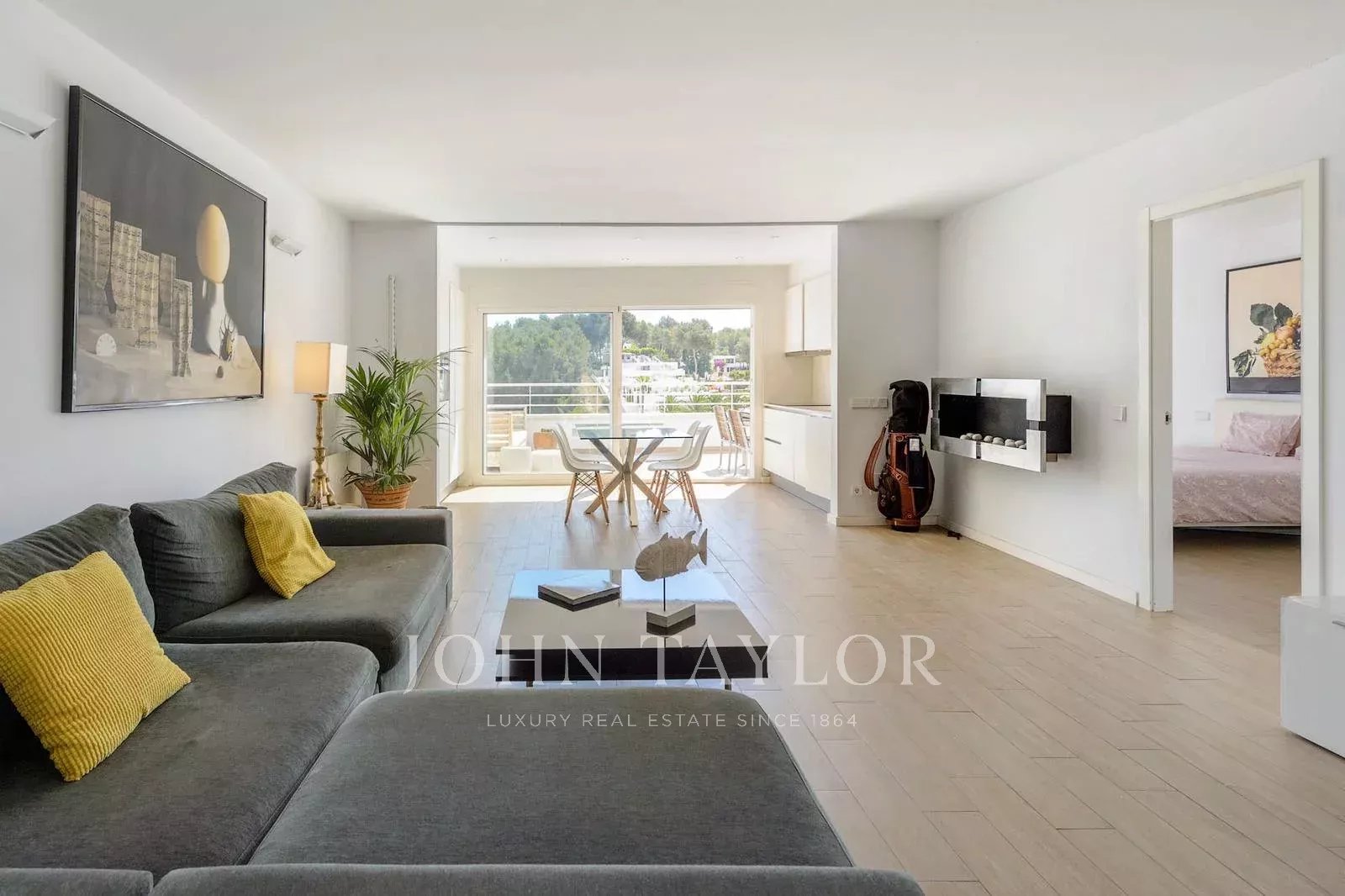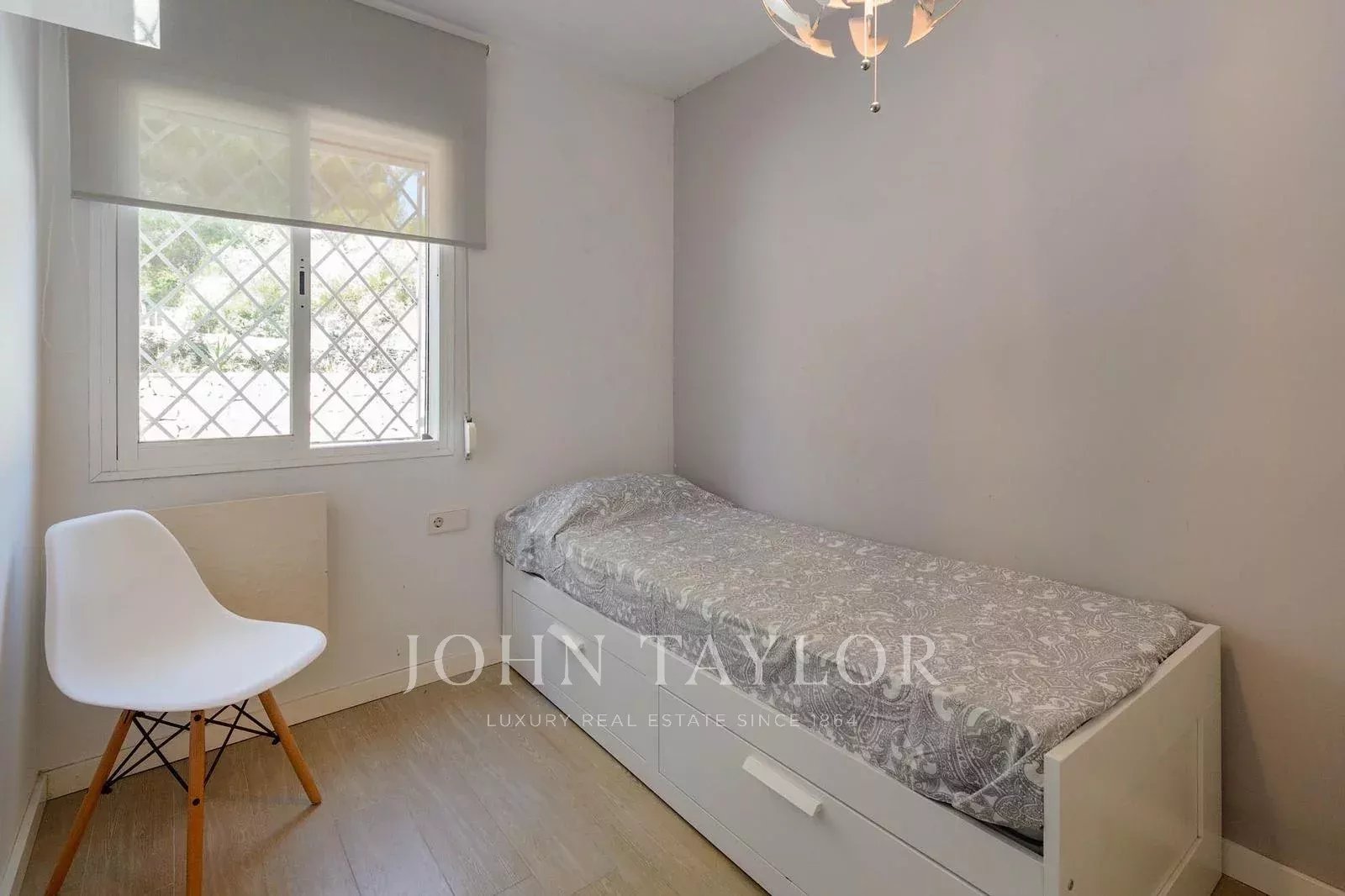 Большая главная спальня располагает ванной комнатой и вместительным шкафом. Из нее есть прямой выход на террасу с захватывающим видом на поле для гольфа, что позволит вам начинать день с освежающего вида. Вторая просторная двухместная комната отделена от главной спальни коридором, что обеспечивает приватность. Третья отдельная комната располагает односпальной кроватью, которая может трансформироваться в двуспальную, что делает ее универсальной для различных потребностей. Эти две спальни делят общую ванную комнату, удобно расположенную между ними.