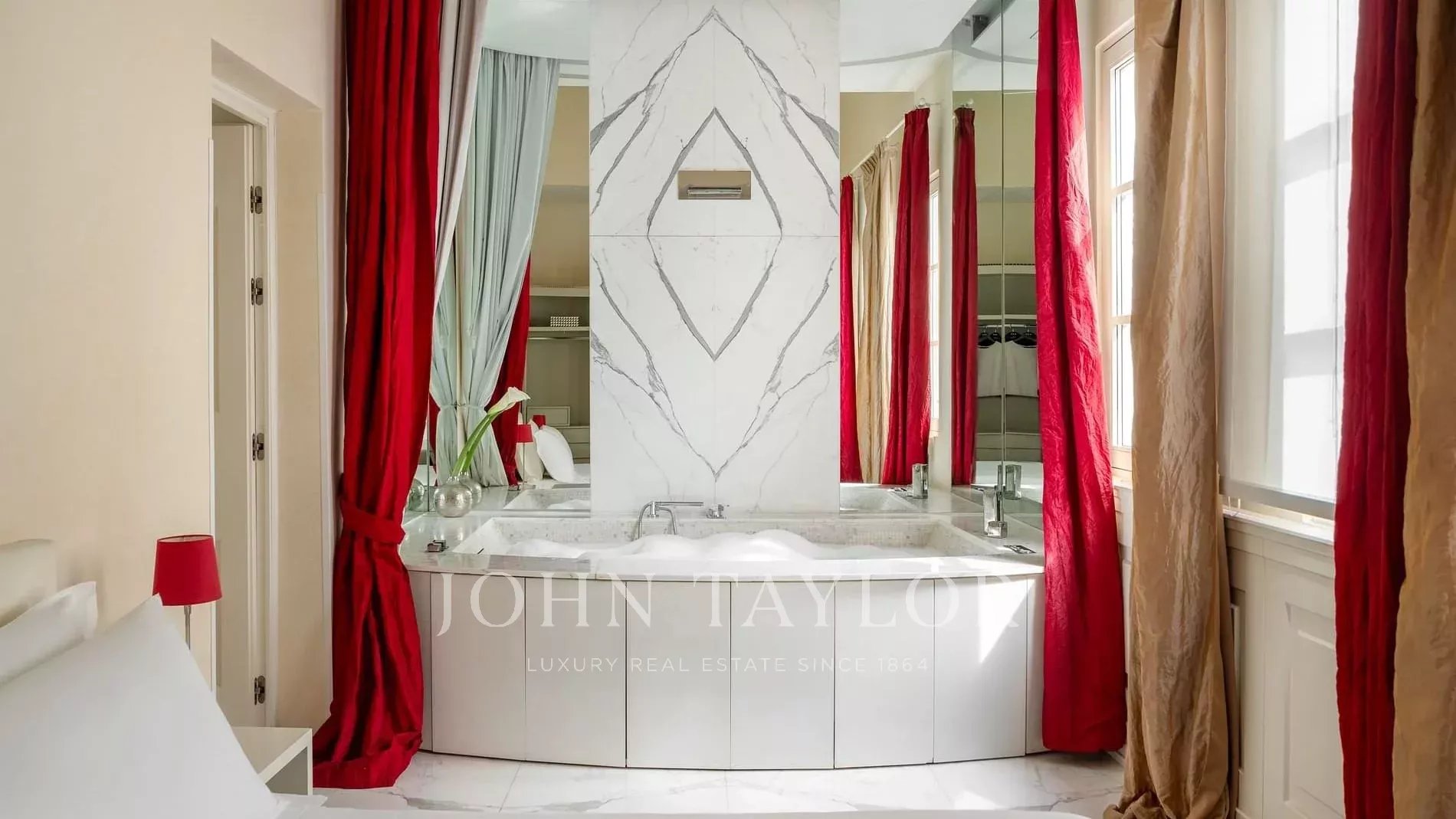 В двух отделанных белым мрамором ванных комнатах, одна из которых с мини-джакузи, а другая с душем, есть набор туалетных принадлежностей, халат, полотенца и фен. В номере есть телевизор с плоским экраном и DVD-плеером, кондиционер, отопление, холодильник и бесплатный Wi-Fi.