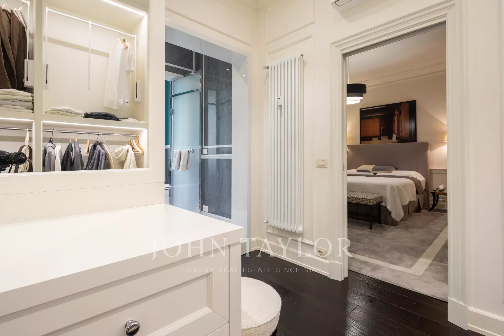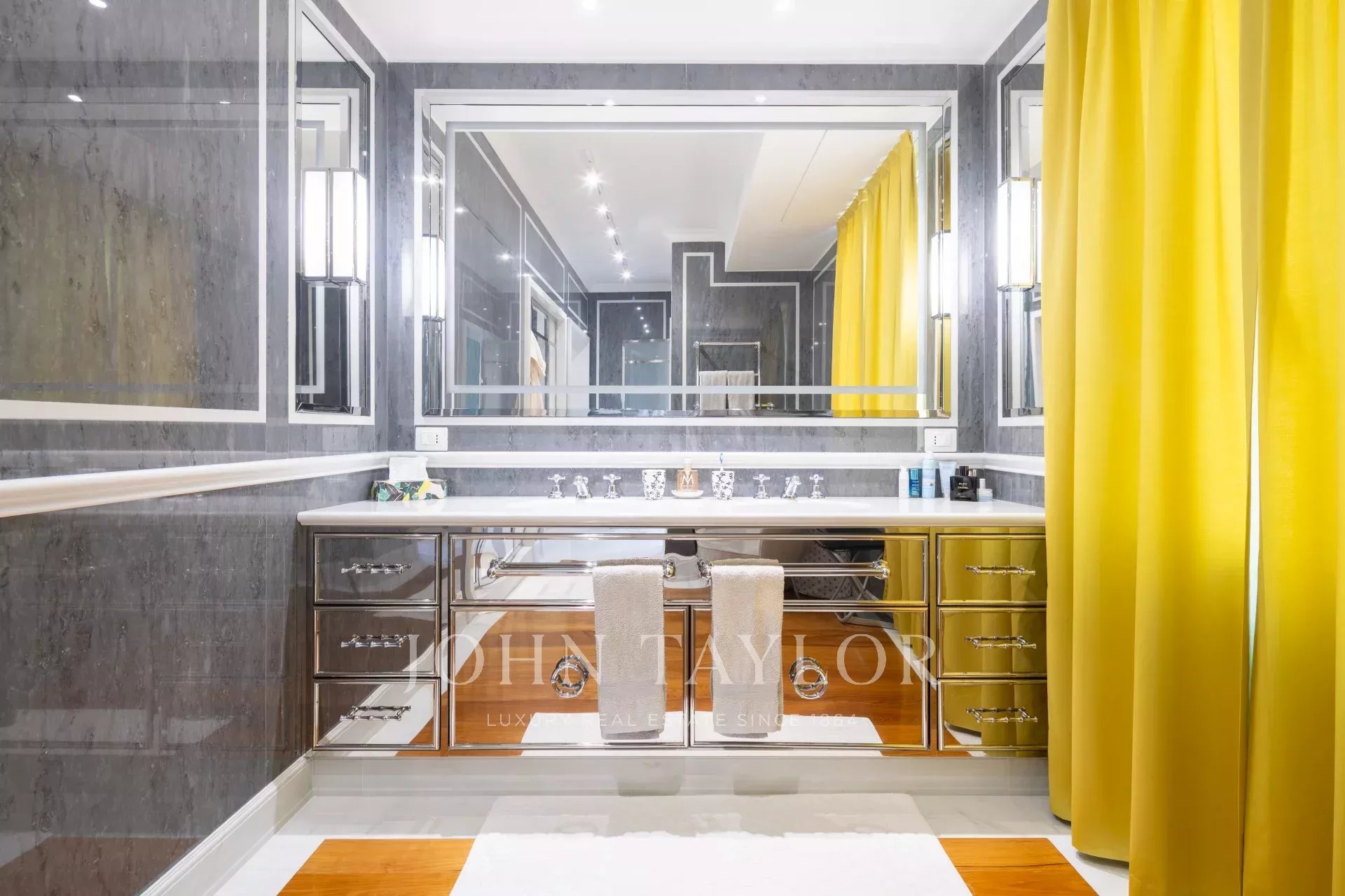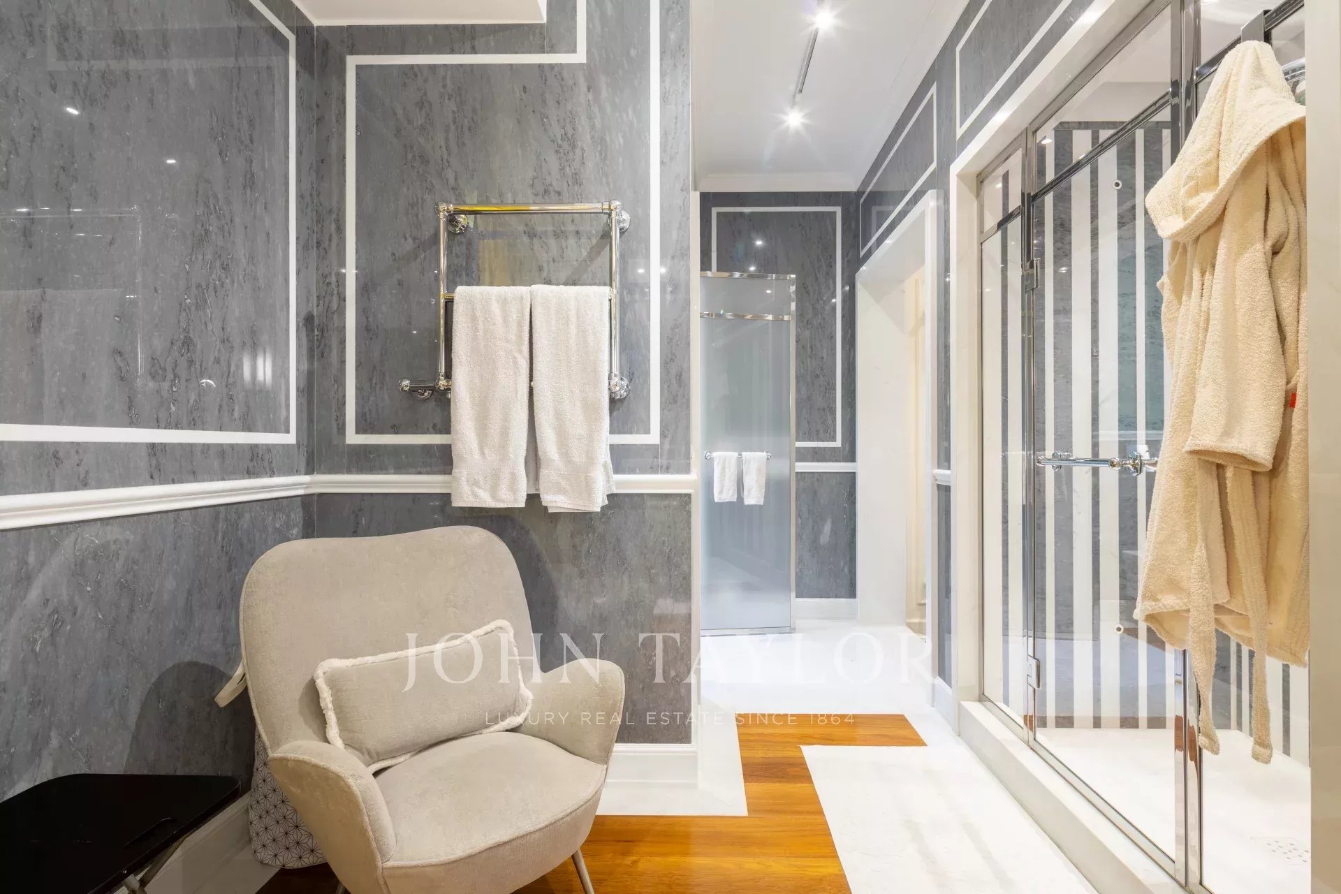 Спальная зона состоит из большой спальни, дополненной просторной гардеробной и очаровательной ванной комнатой, отделанной красивой игрой зеркал, которая делает комнату еще более изысканной и светлой. Вторая спальня, идеально подходящая для гостей или детей, и вторая ванная комната дополняют интерьер.