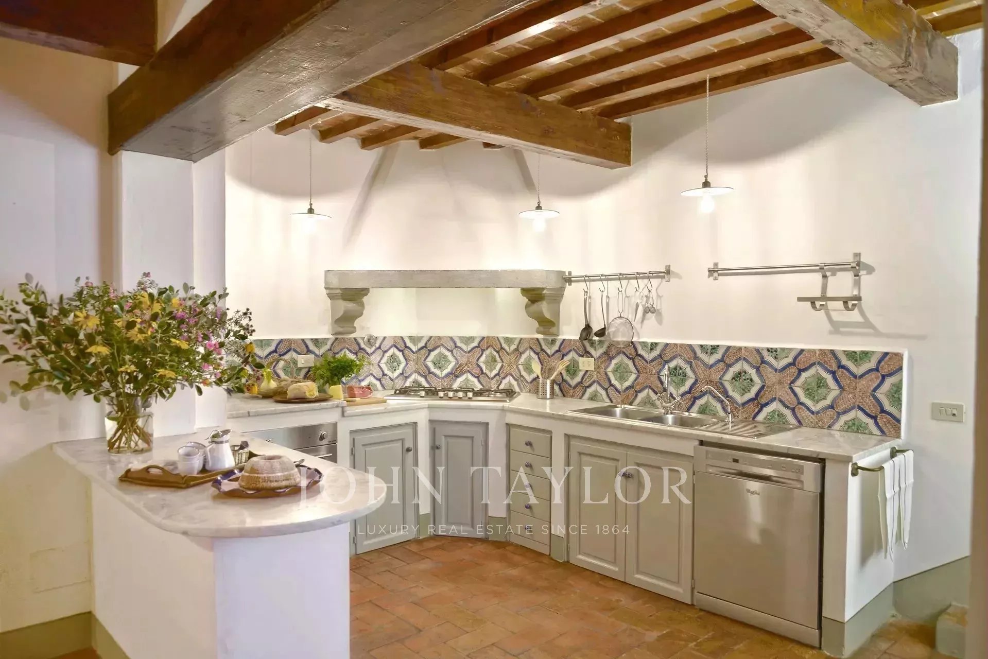 Снаружи виллы есть частный бассейн, окруженный шезлонгами, откуда открывается потрясающий вид на тосканскую сельскую местность. Для вашего спокойствия на территории виллы работает смотритель, а электрические ворота гарантируют максимальную безопасность. Воспользуйтесь современными удобствами, такими как посудомоечная машина и холодильник, для беззаботного отдыха.