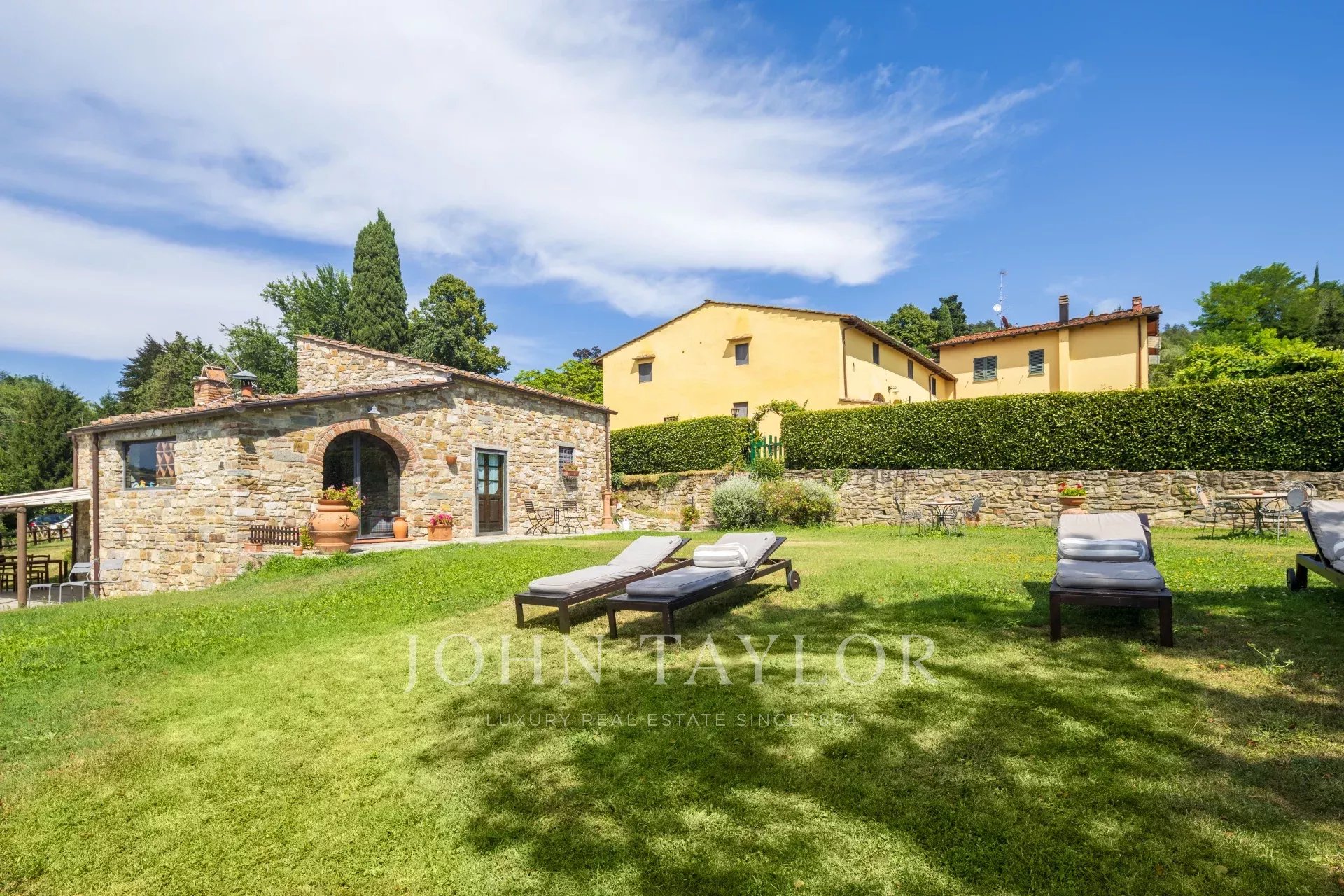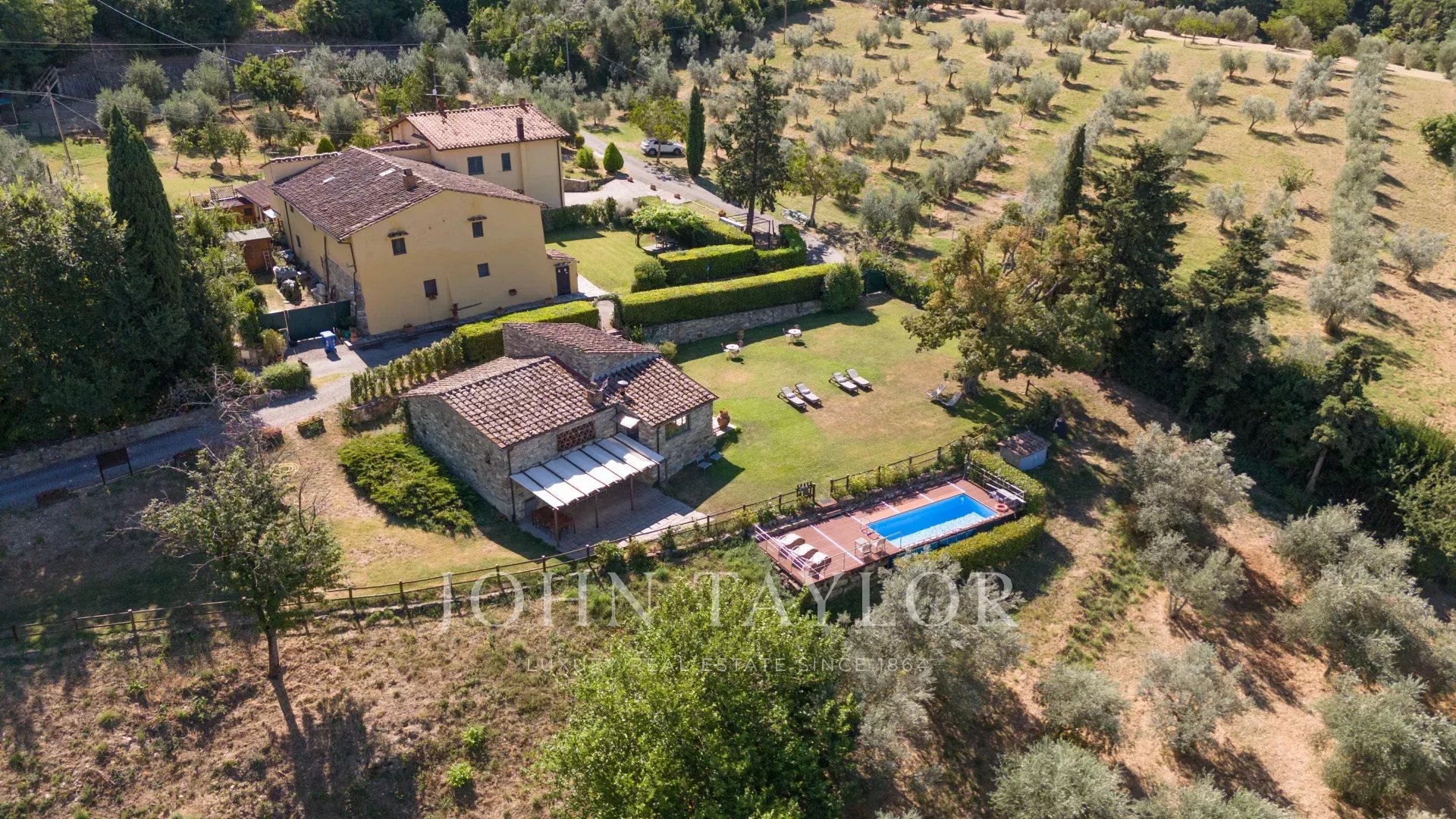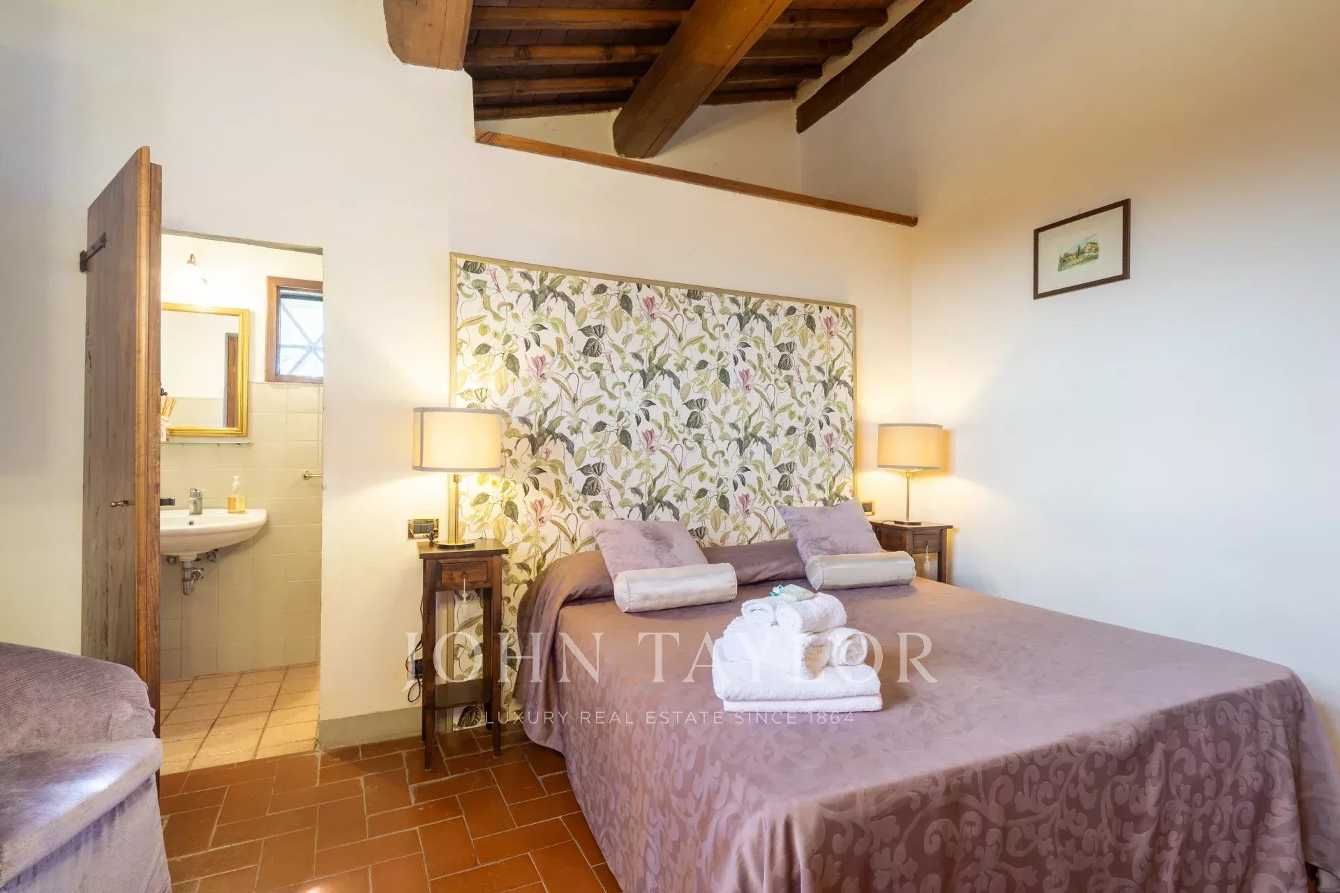 В поместье есть часть фермерского дома площадью 290 кв. м и амбарный дом площадью 160 кв. м. Из обоих открывается захватывающий вид на окружающие флорентийские холмы.