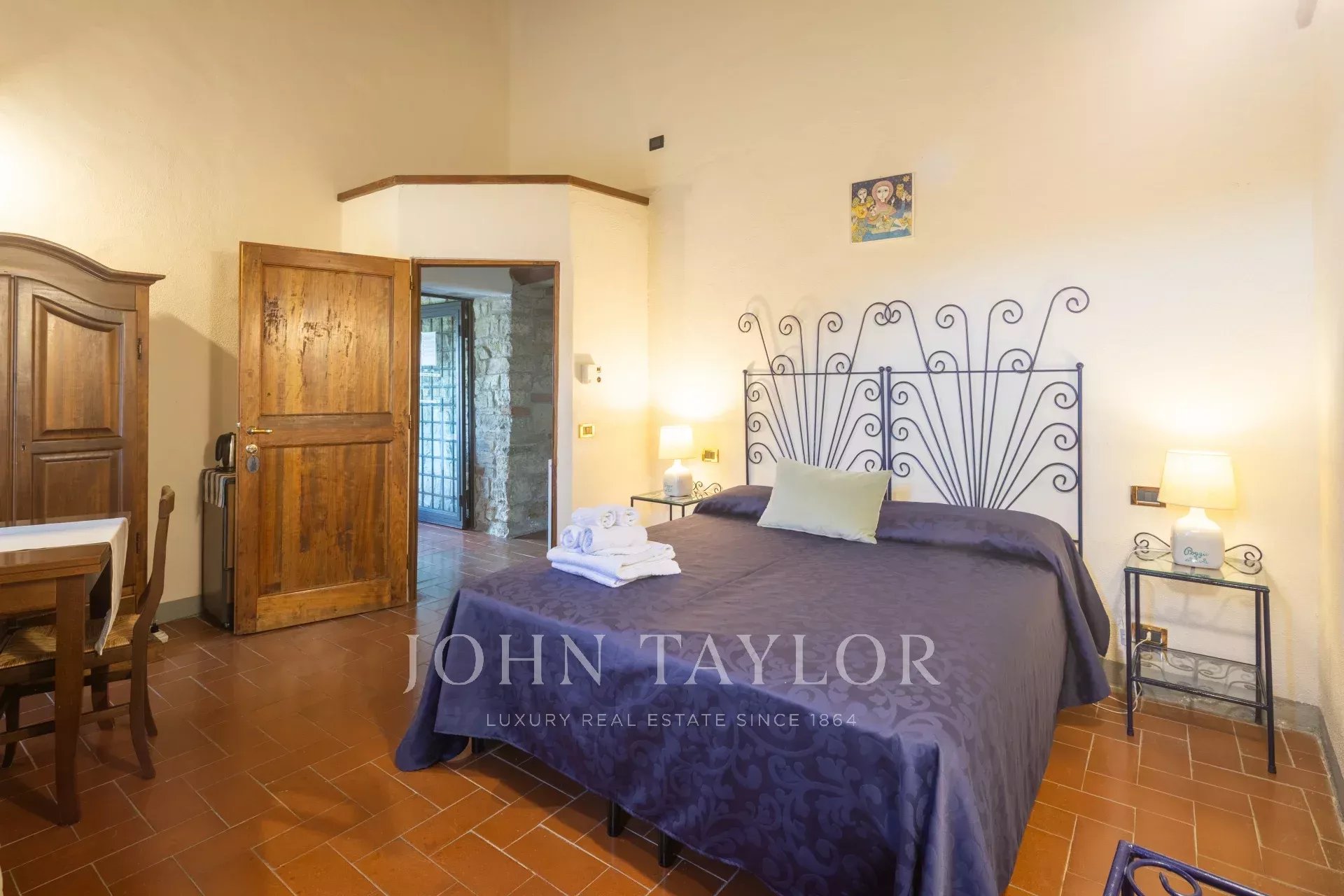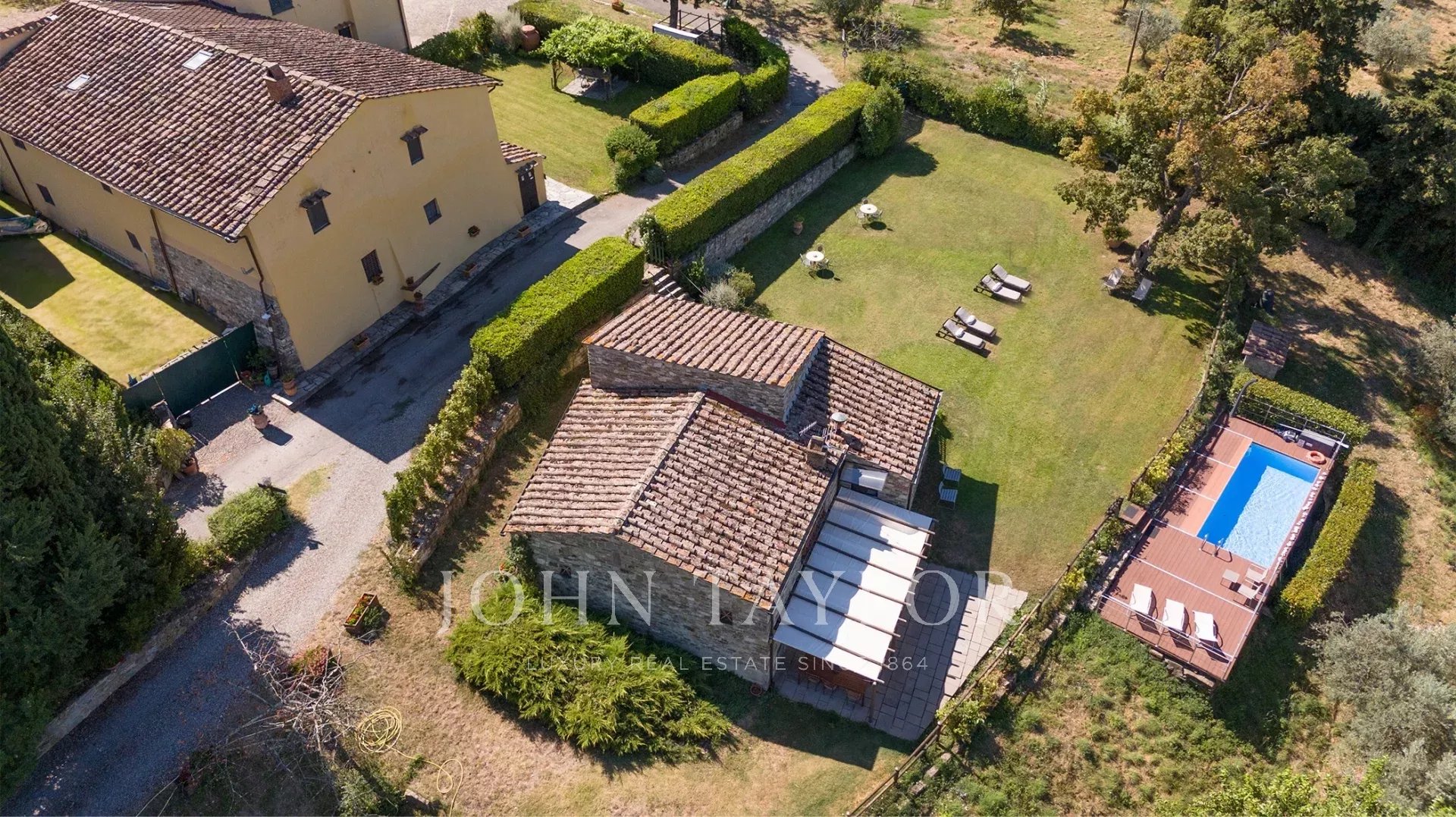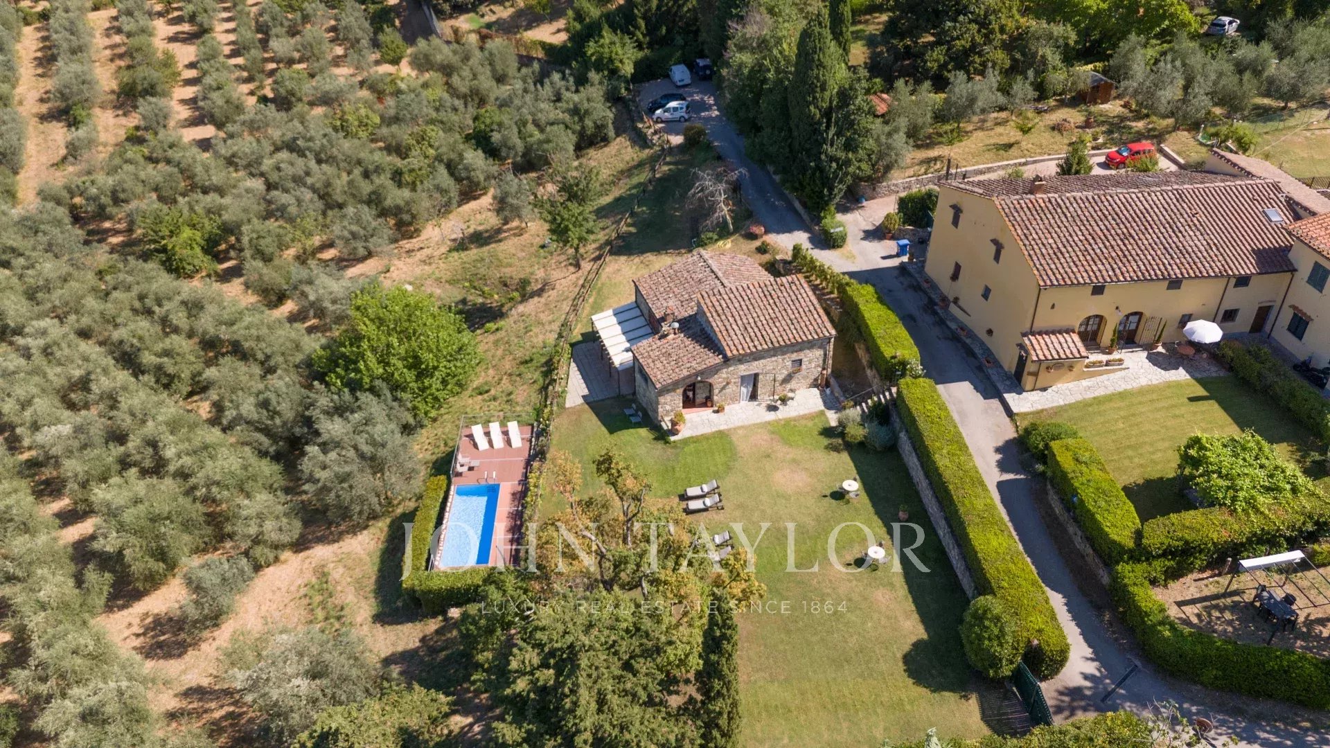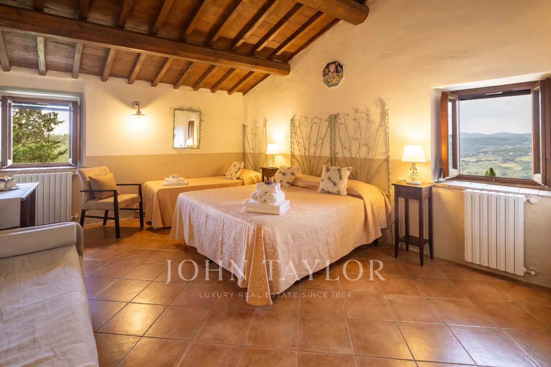В поместье есть часть фермерского дома площадью 290 кв. м и амбарный дом площадью 160 кв. м. Из обоих открывается захватывающий вид на окружающие флорентийские холмы.
