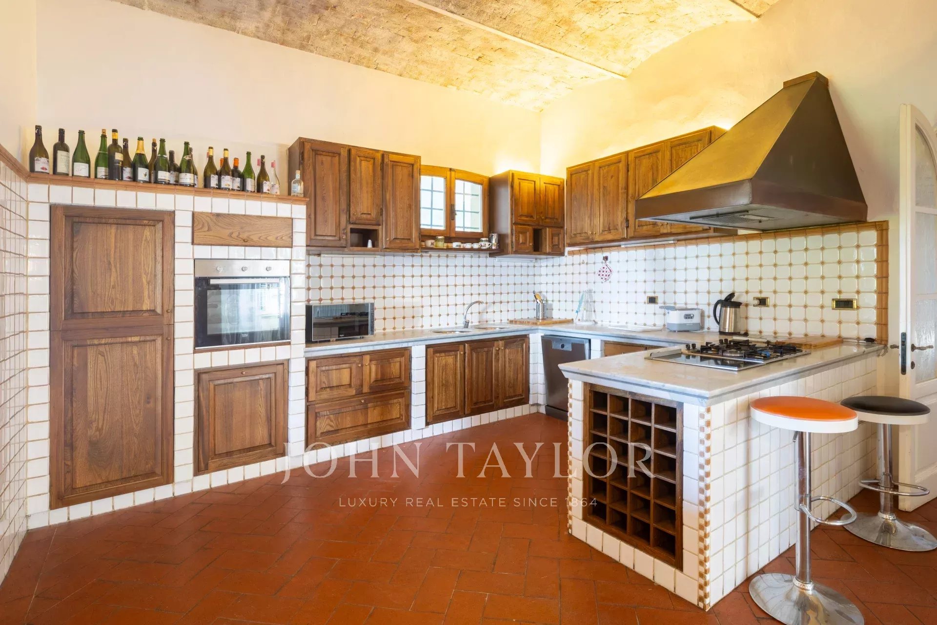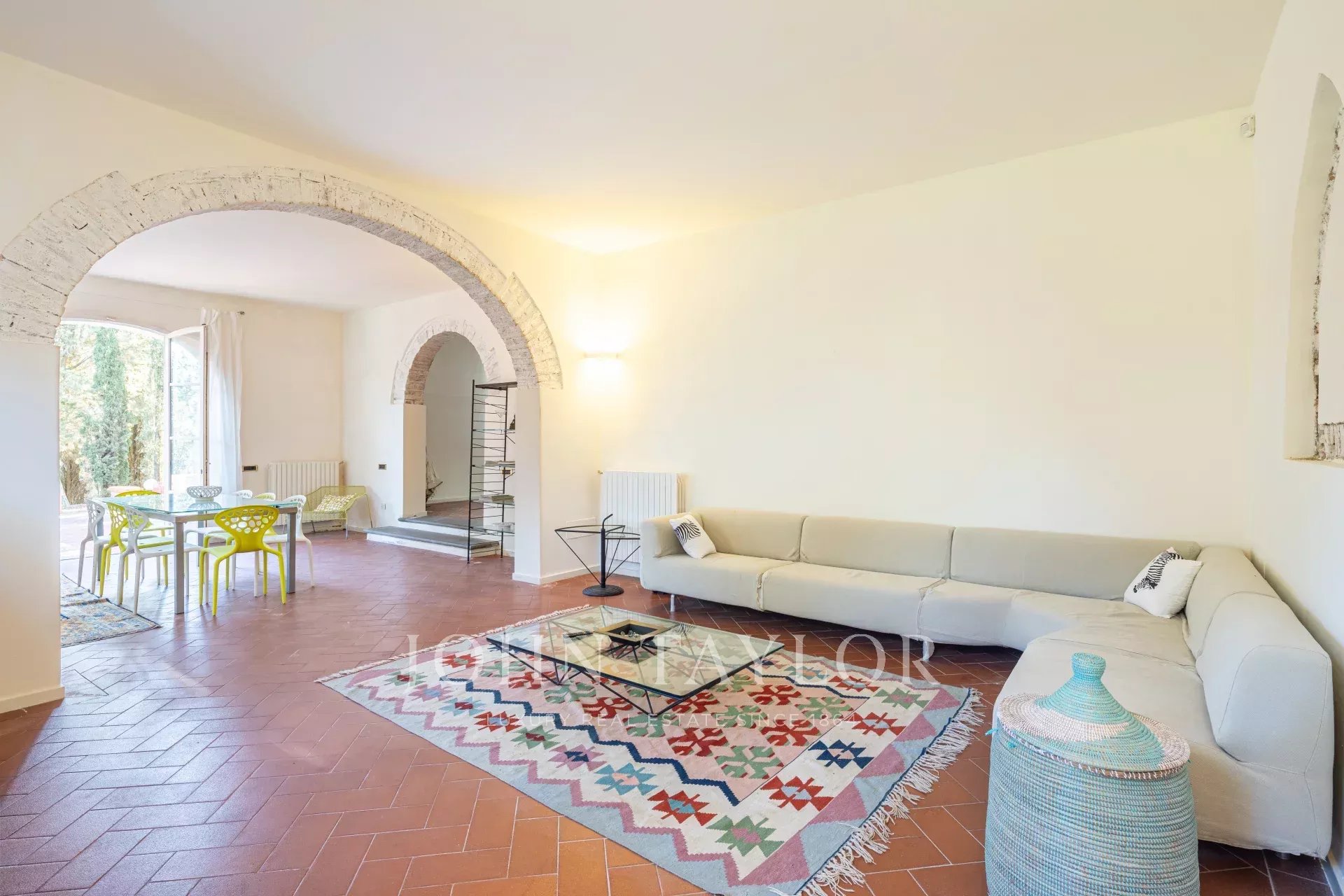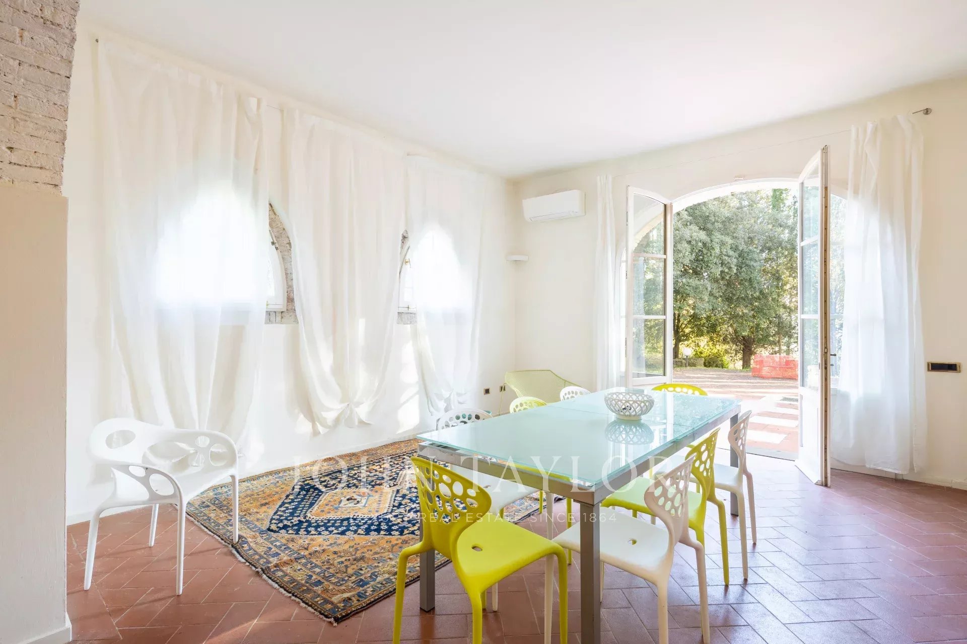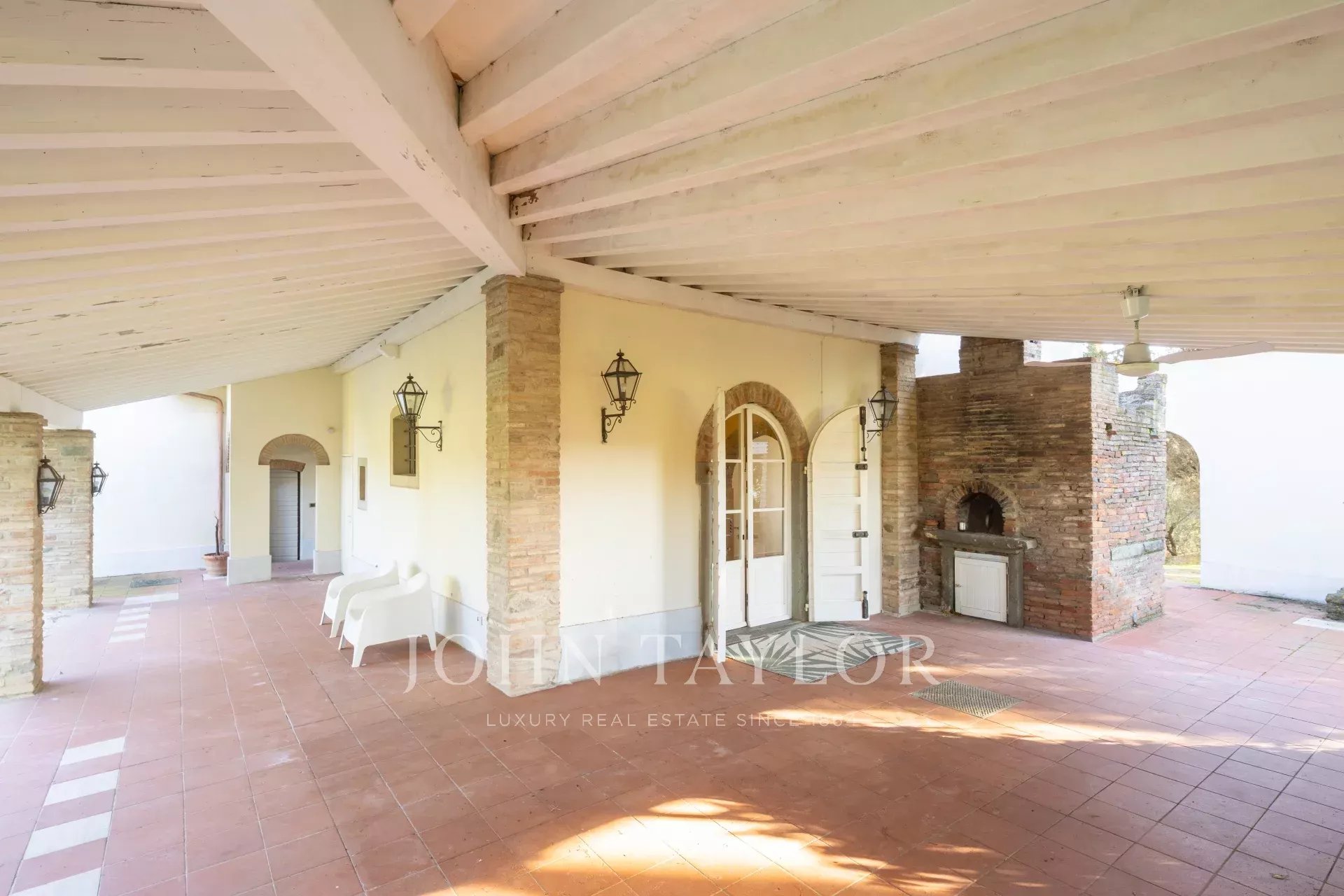 Вилла располагает великолепным парком, восхитительным бассейном с панорамным видом на виноградники и оливковые рощи, а также частным любительским теннисным кортом.