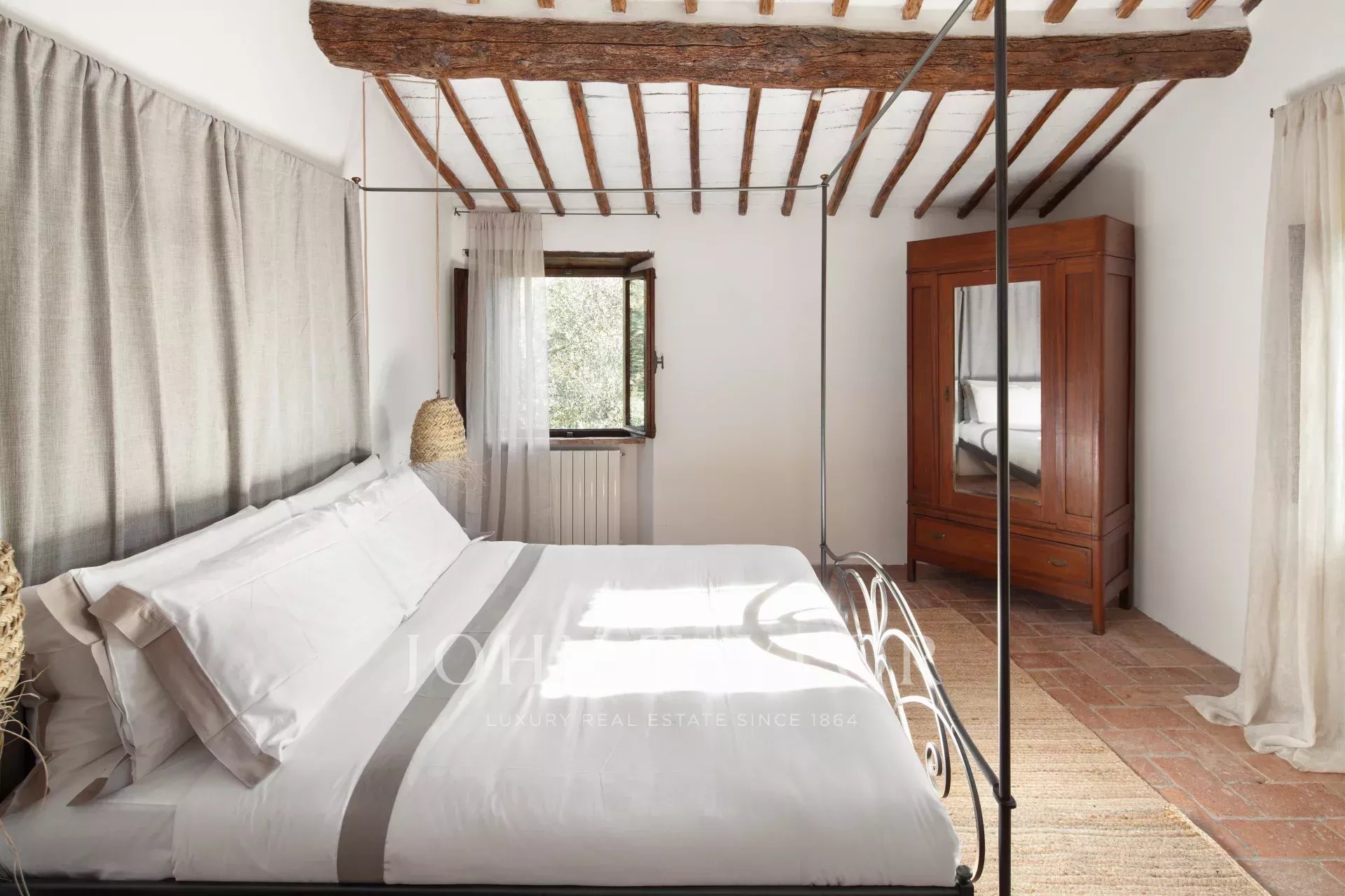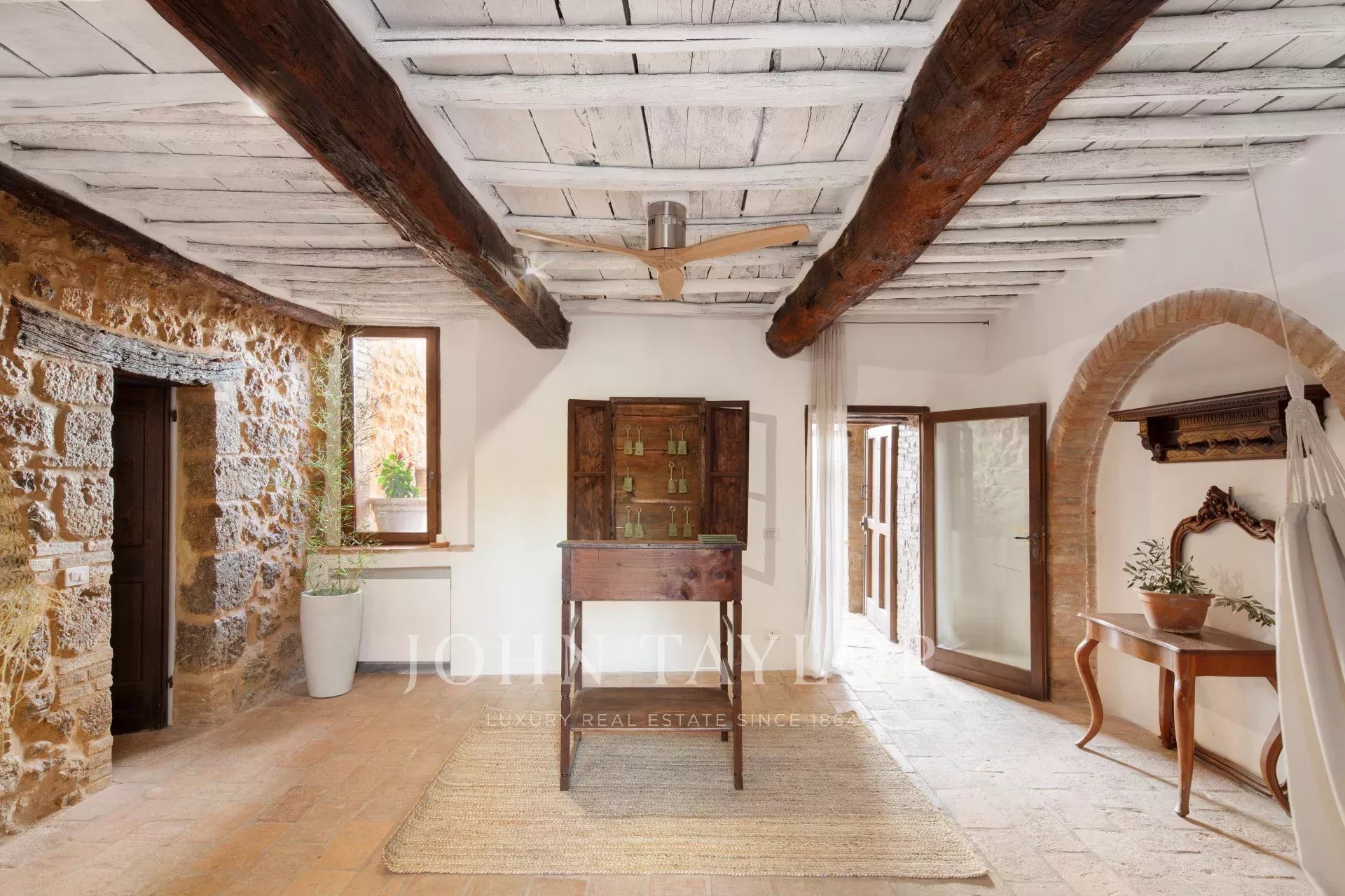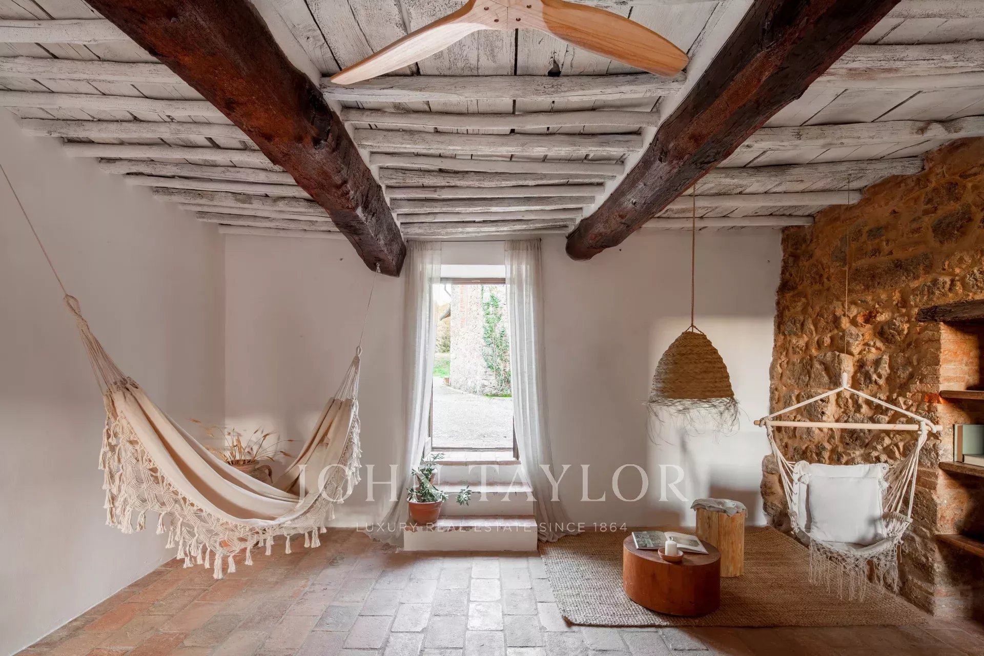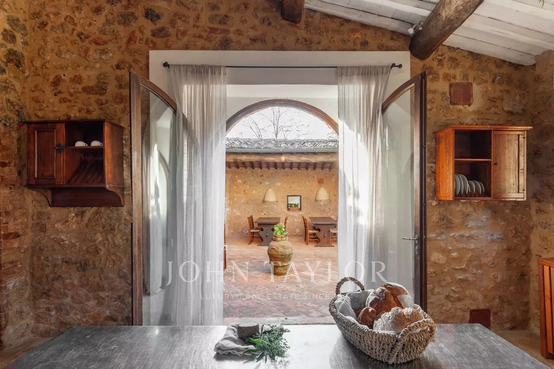 Из этого поместья, расположенного в самом сердце Тосканы, открывается панорамный вид на сельскую местность Кьянти Колли Сенези, всего в 15 минутах езды от Сиены. Усадьба, датируемая XII веком, была со вкусом отреставрирована, сохранив свой первоначальный характер с использованием натуральных материалов, таких как камень, терракота и деревянные балки.