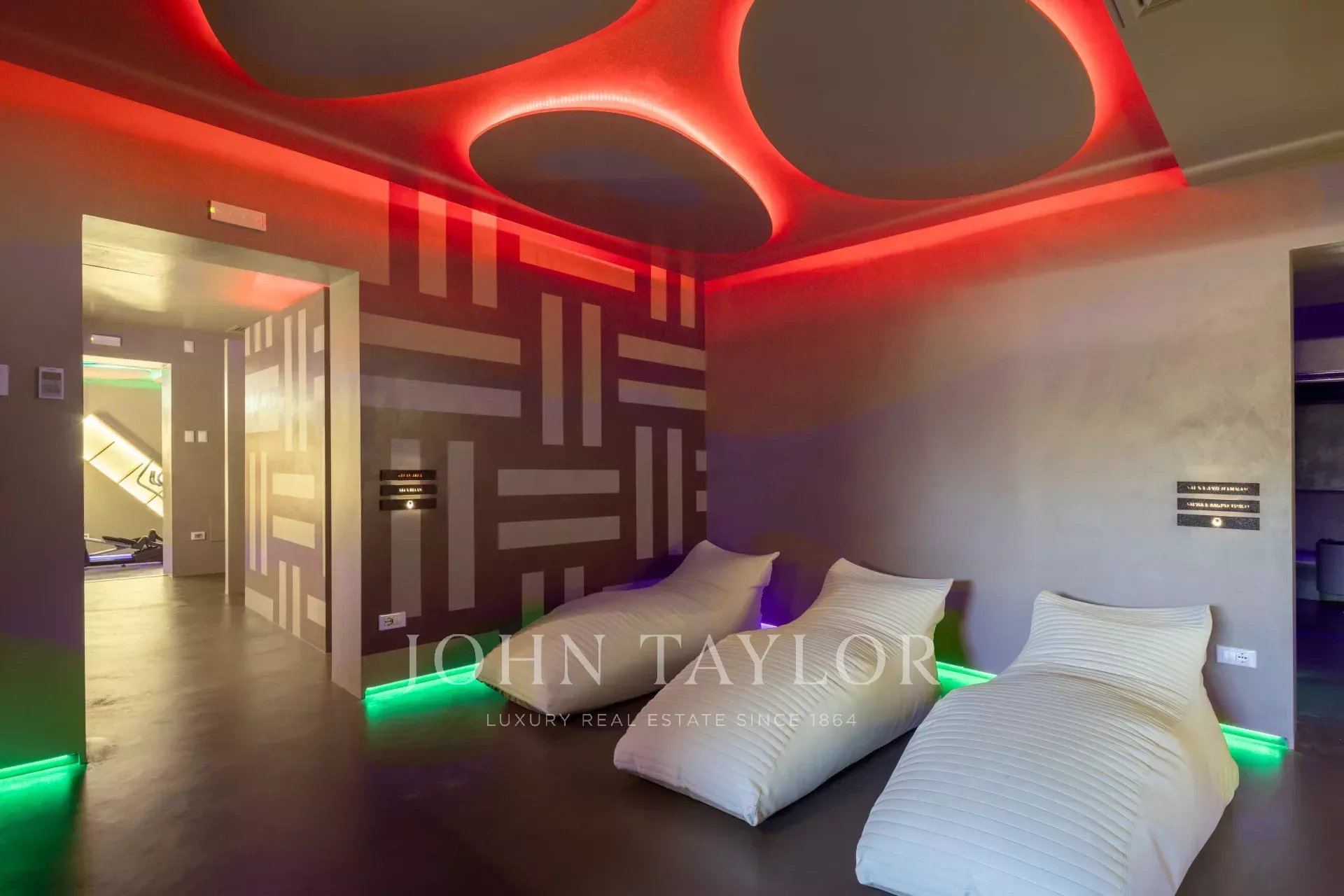 Главное поместье - полностью отреставрированная вилла с несколькими гостиными, кухней, 8 комнатами для гостей и 2 дополнительными комнатами для внутреннего использования, площадью 667 кв. м. В отдельной пристройке находятся еще 5 гостевых комнат площадью 150 кв. м.