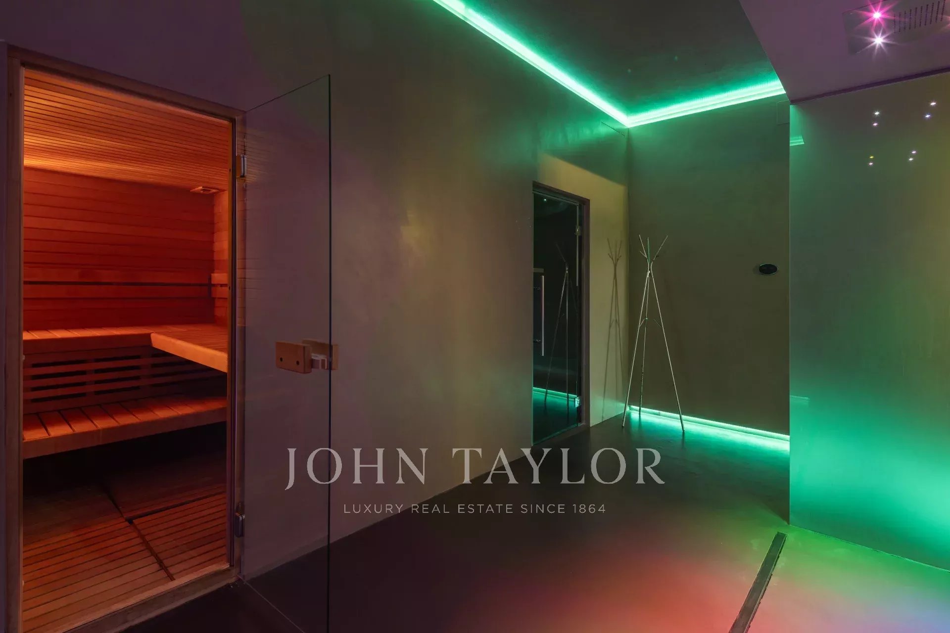 Полностью отремонтированная частная спа-зона площадью 457 кв. м, предназначенная для оздоровления, включая сауну и джакузи.