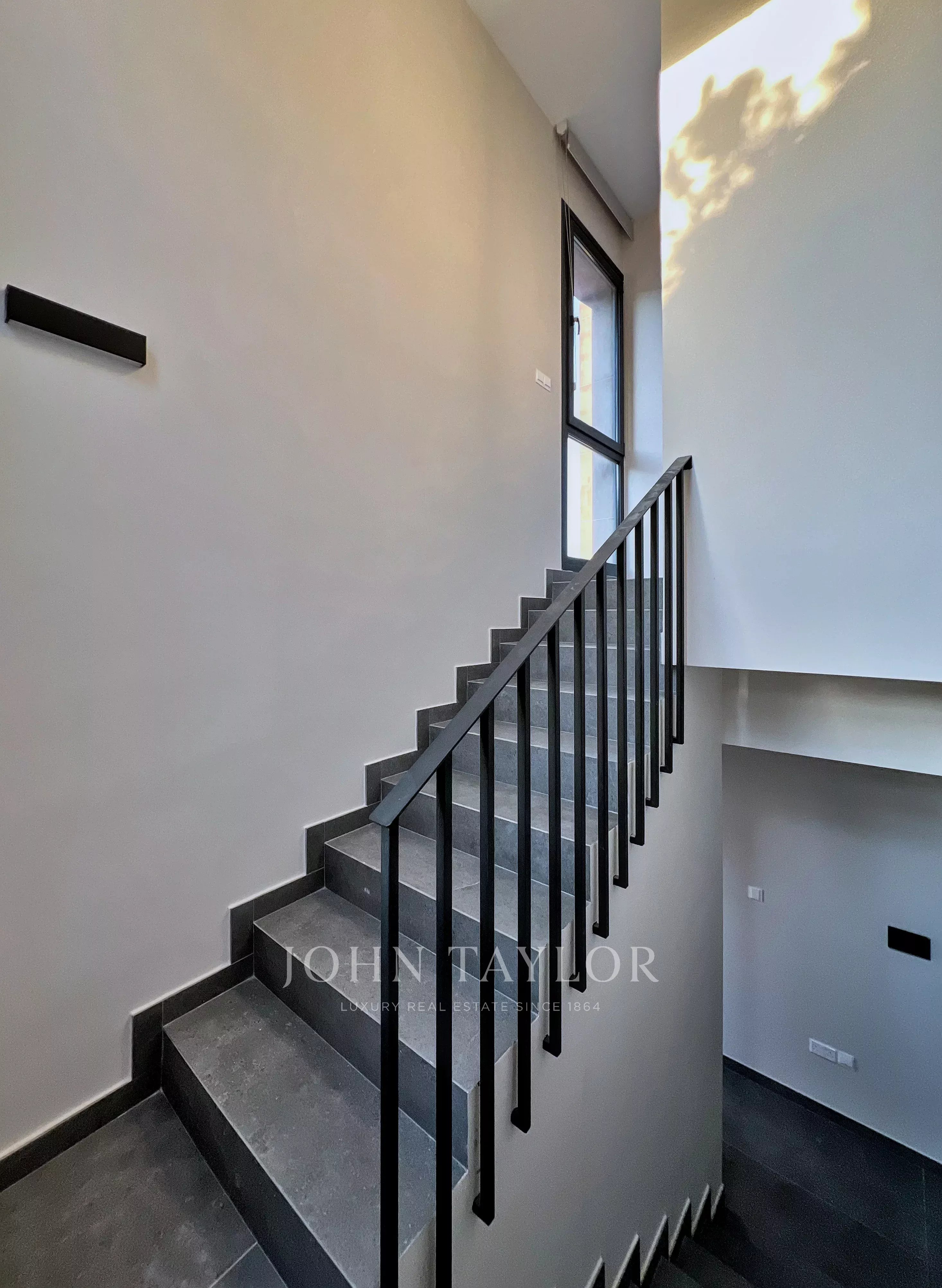 Вилла полностью меблирована, имеет светлые интерьеры, большую открытую площадку и крытую парковку.