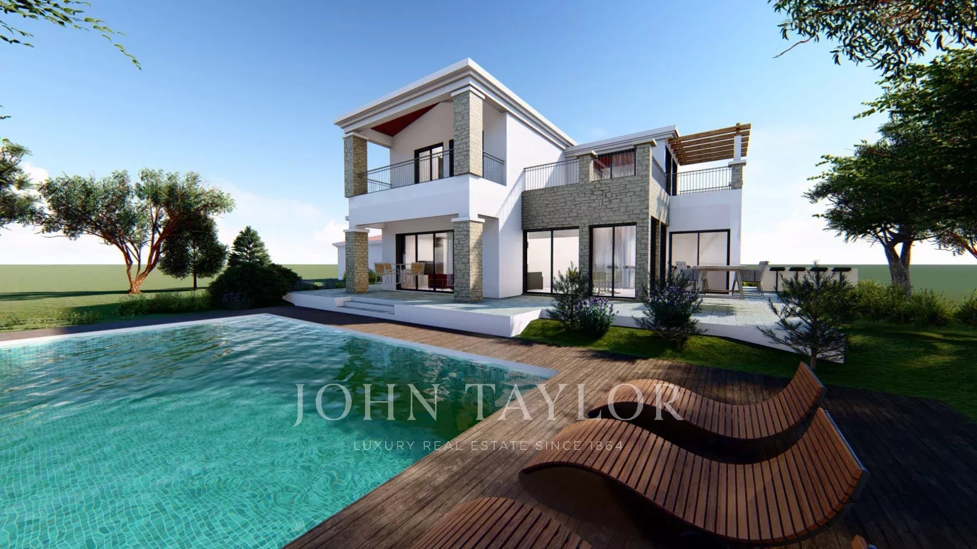 Двухэтажная вилла площадью более 500 м² отличается смелым, но изысканным дизайном, в котором современные архитектурные линии сочетаются с отделкой из натурального камня и теплого дерева. Большие окна заливают интерьеры солнечным светом, создавая плавную связь между внутренней и внешней жизнью. Открытая планировка предлагает просторные гостиную и столовую, кухню, оборудованную по последнему слову техники, и просторные спальни, каждая из которых оснащена ванной комнатой для максимального комфорта и уединения.
