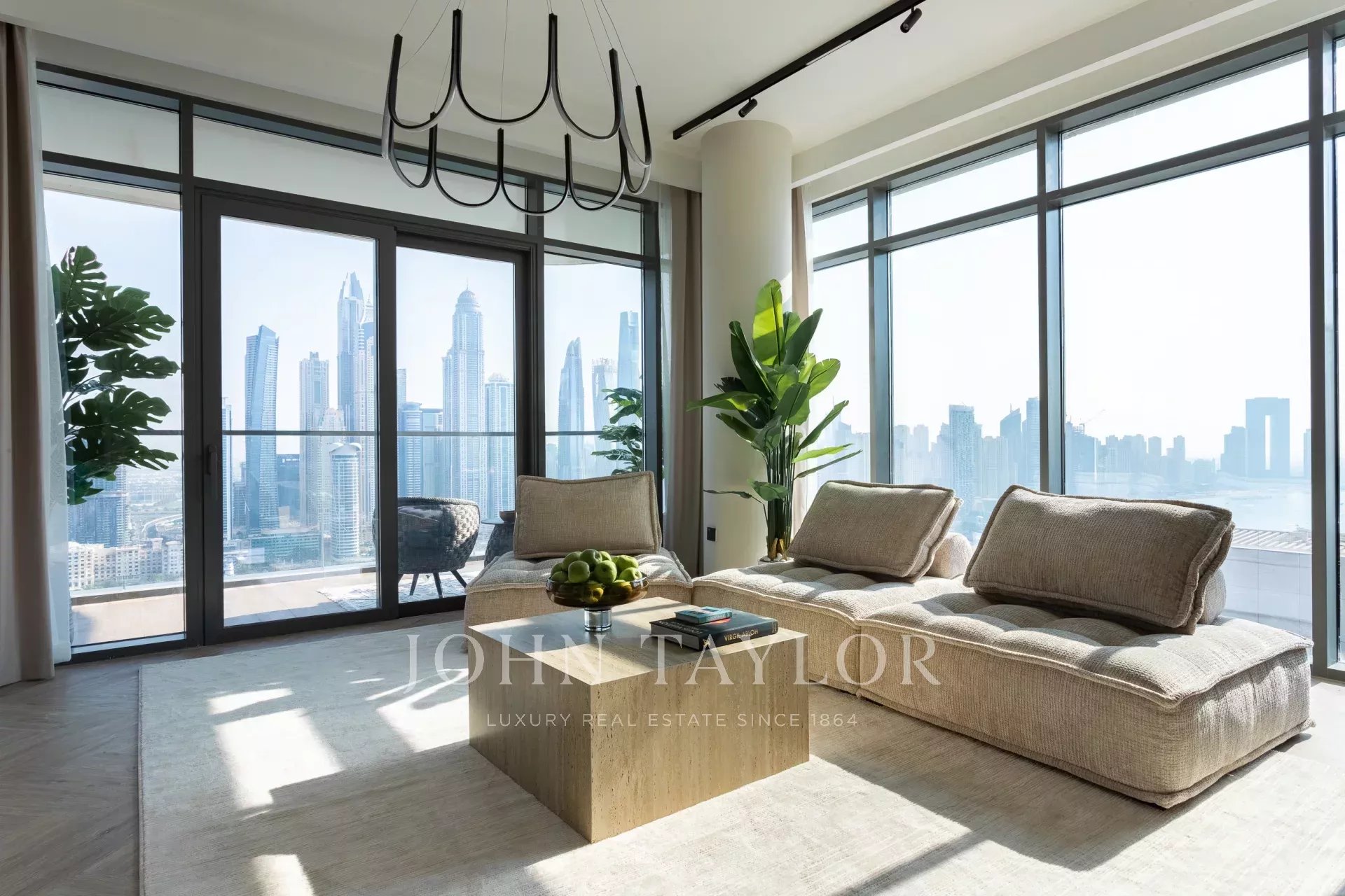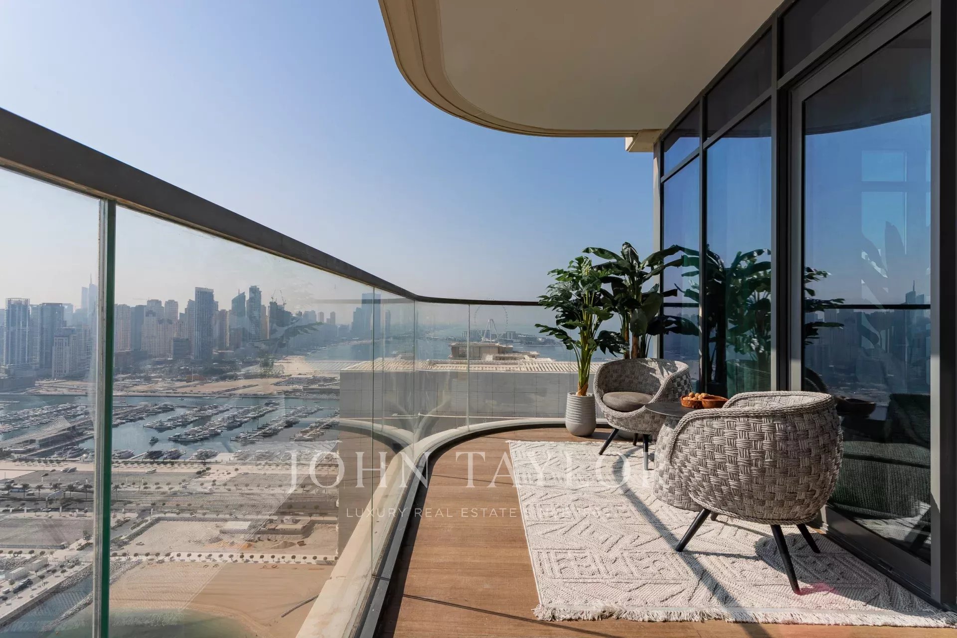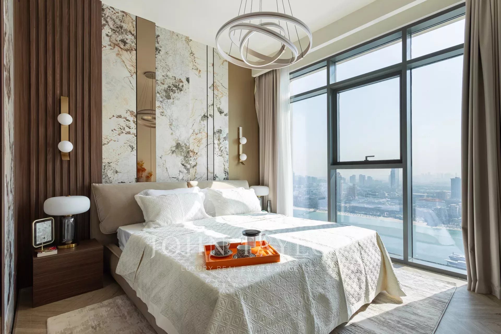 Откройте для себя роскошную жизнь в ее лучшем проявлении с этой совершенно новой, полностью меблированной квартирой с 3 спальнями + прислуга в престижной башне Marina Vista Tower 2. Расположенная в самом сердце Emaar Beachfront, эта квартира на высоком этаже предлагает беспрецедентные виды, современный дизайн и образ жизни чистой элегантности.
