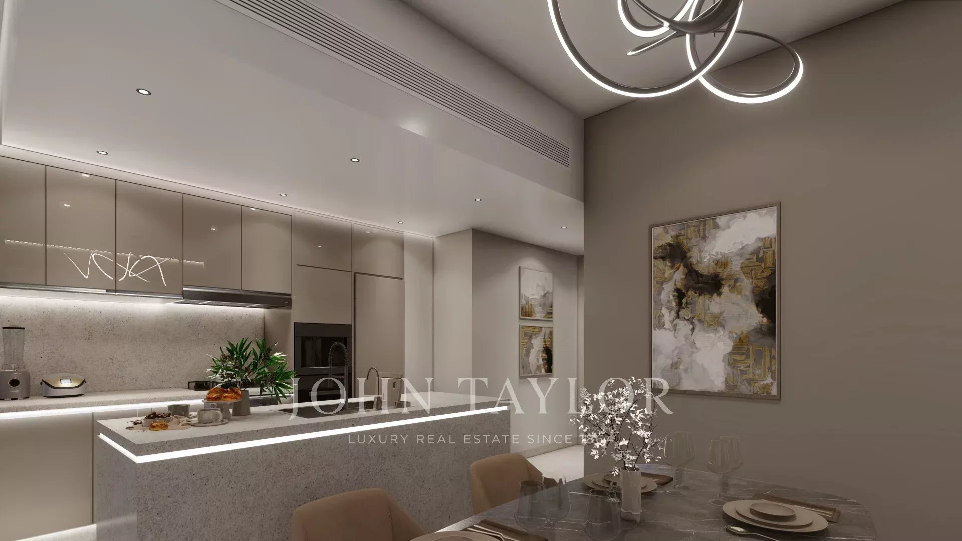 Кухня для гурманов: Полностью оборудованная современная кухня оснащена самой современной техникой, элегантными шкафами и большим количеством столешниц - идеальное место для приготовления пищи и развлечений.