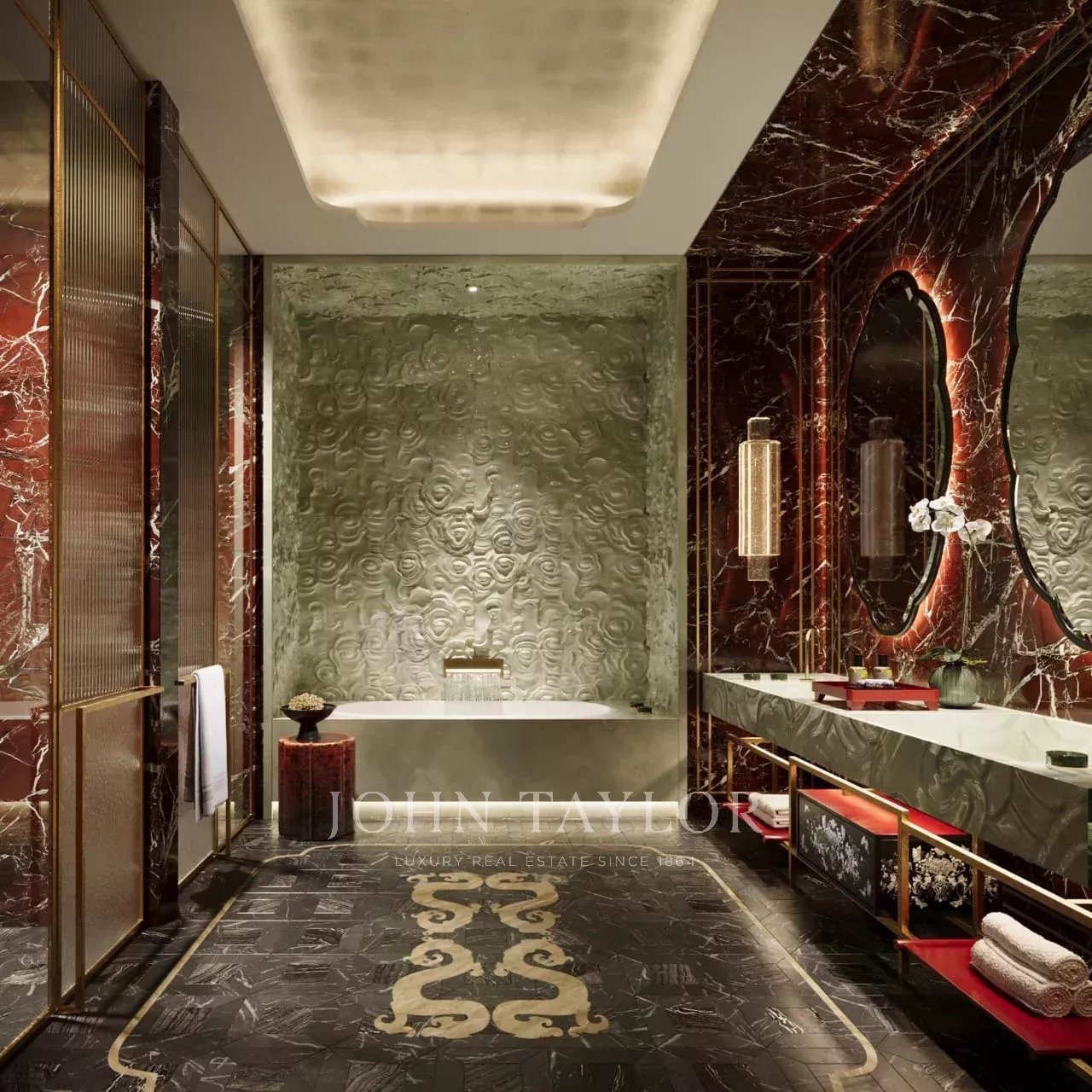 Отделка премиум-класса: Высококачественные мраморные полы, дизайнерские светильники и окна от пола до потолка, наполняющие пространство естественным светом.