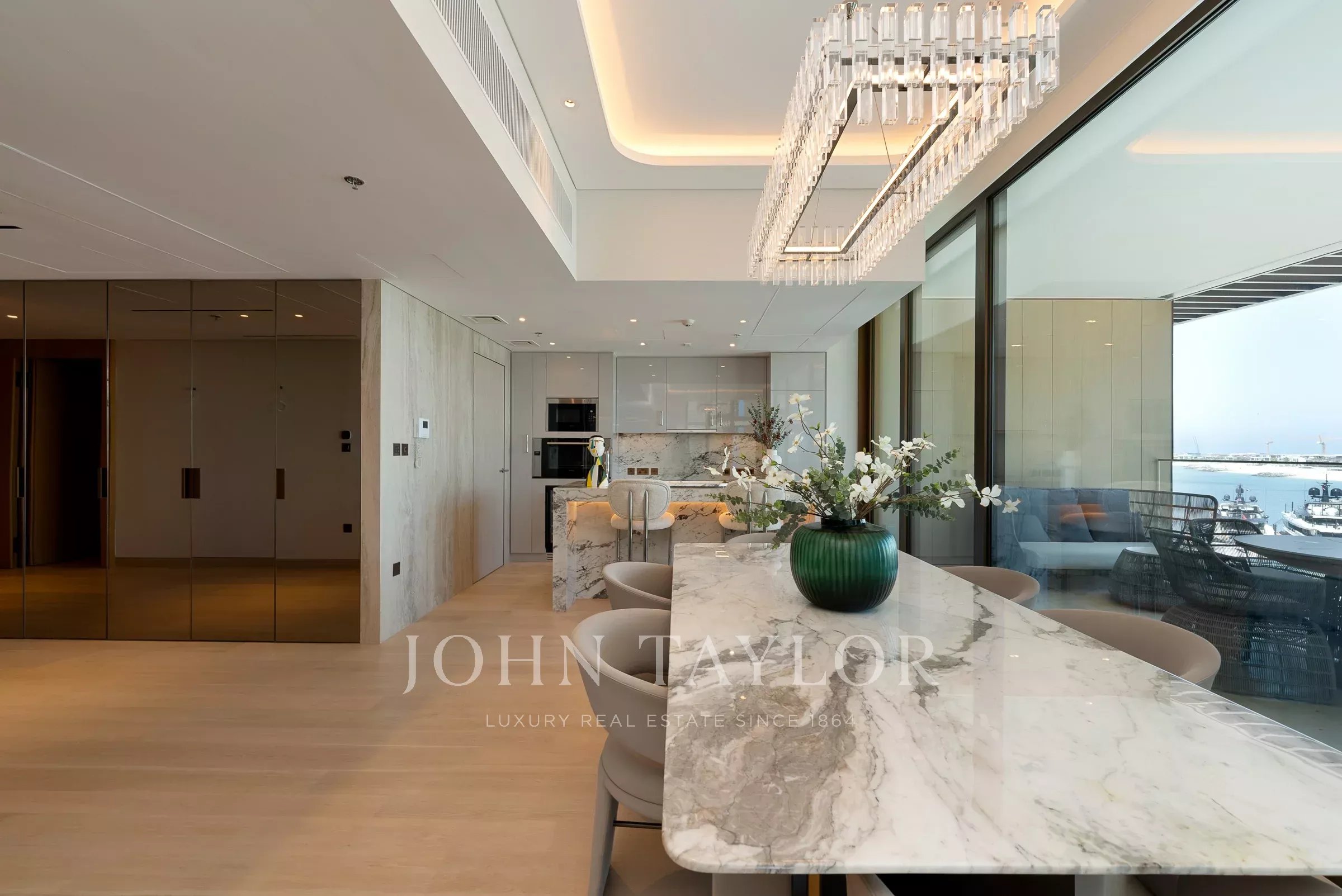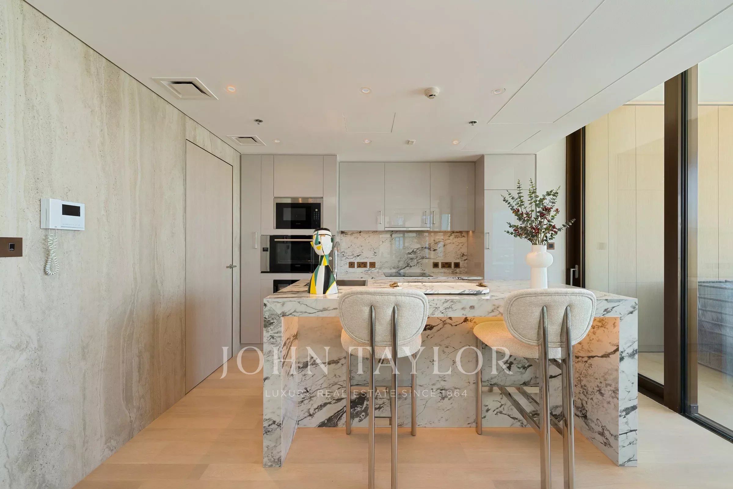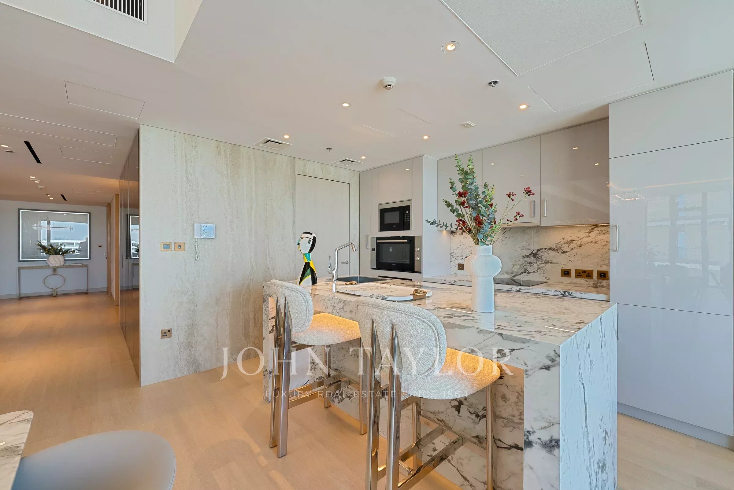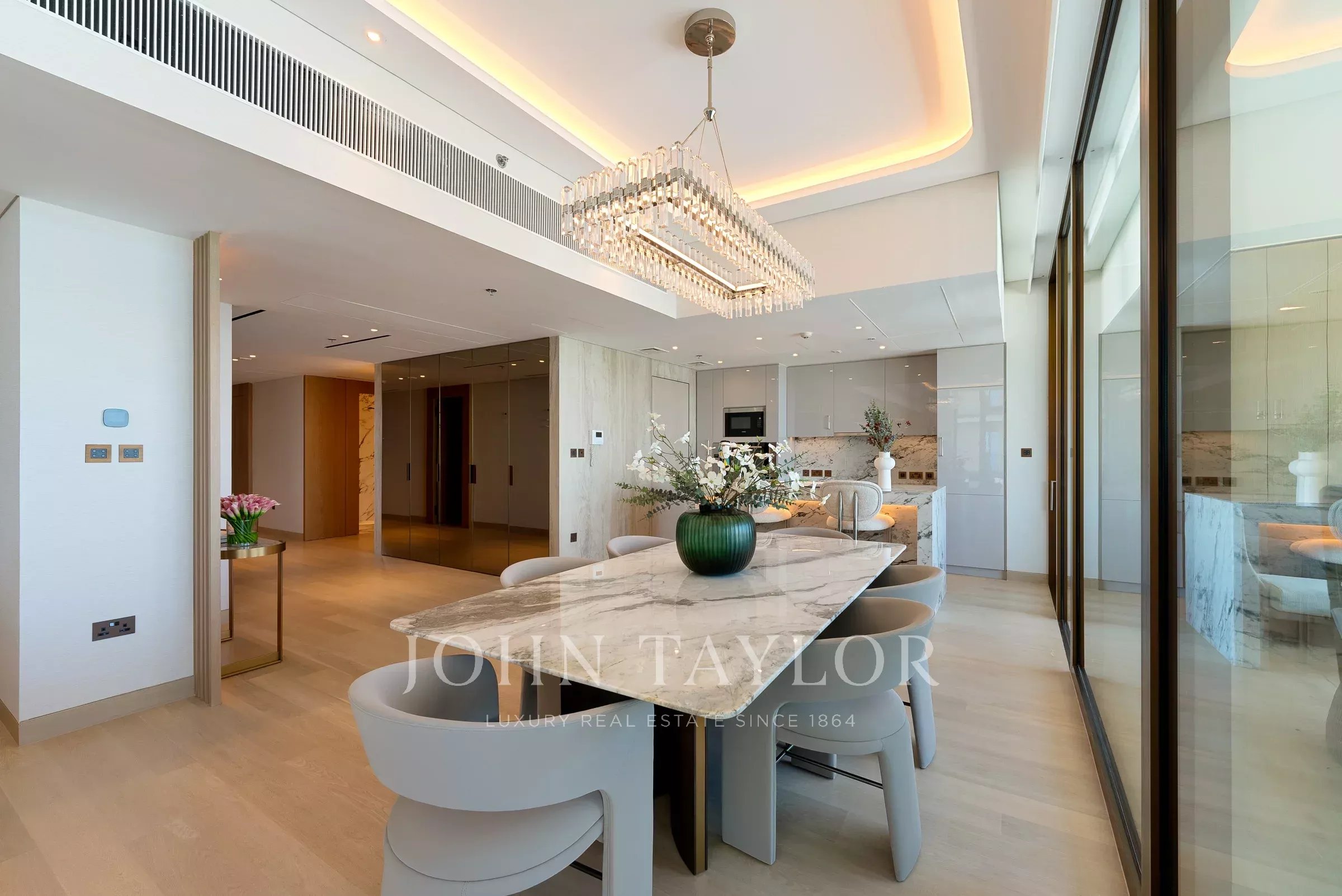 Возможно, один из лучших планировок для трехкомнатных апартаментов, этот дом раскрывается от входа в прихожую, которая служит гостеприимным пространством. Тихий служебный вход расположен поблизости, идеально подходит для персонала и обеспечивает беспрепятственную интеграцию в жилое и обеденное пространство.