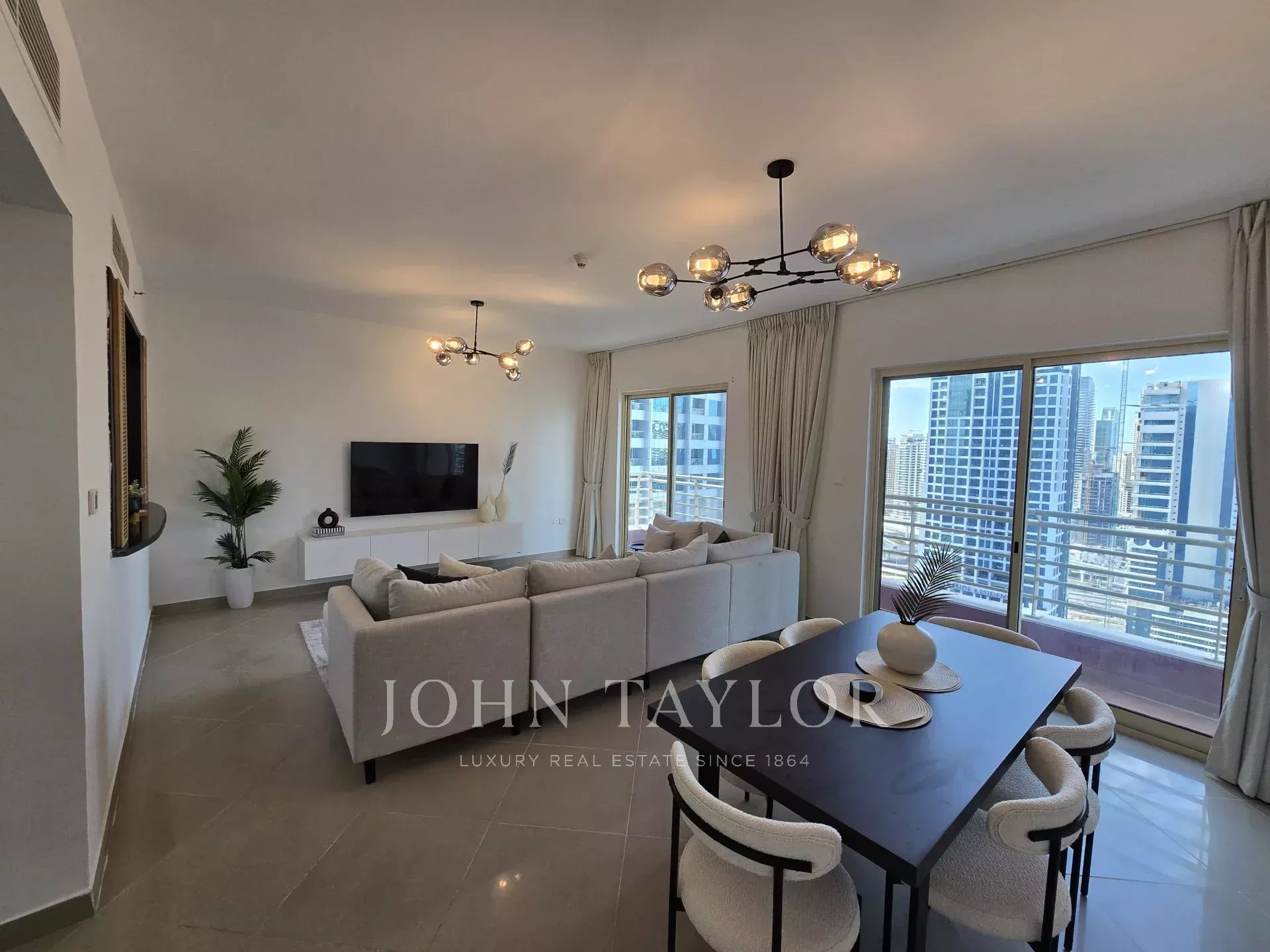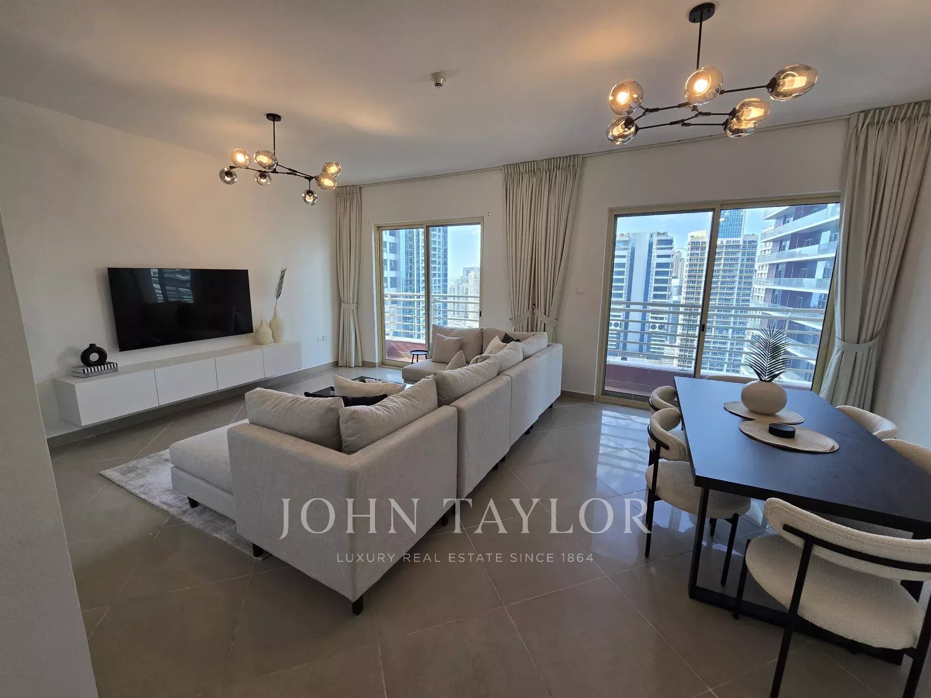 Компания John Taylor Real Estate рада предложить эту прекрасно меблированную квартиру с 2 спальнями и комнатой для прислуги в престижном комплексе Icon Tower 2, расположенном в самом сердце Jumeirah Lake Towers (JLT). Эта резиденция площадью 135,08 квадратных метров предлагает идеальное сочетание роскоши, пространства и удобства, идеально подходящее для семей или профессионалов.