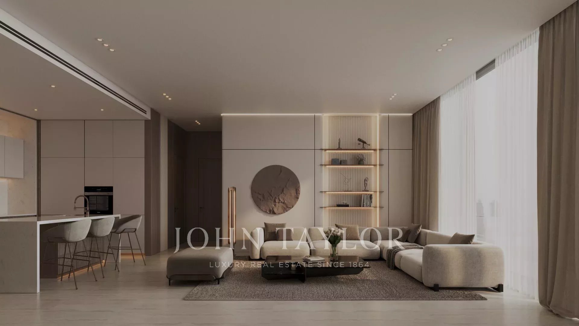 Как только вы войдете в эту светлую и просторную квартиру, вы сразу же заметите высококачественную отделку и внимание к деталям, которые определяют бренд Binghatti. В гостиной открытой планировки установлены большие окна, что позволяет заливать пространство большим количеством естественного света, создавая теплую и гостеприимную атмосферу. Планировка квартиры идеально подходит как для отдыха, так и для развлечений.