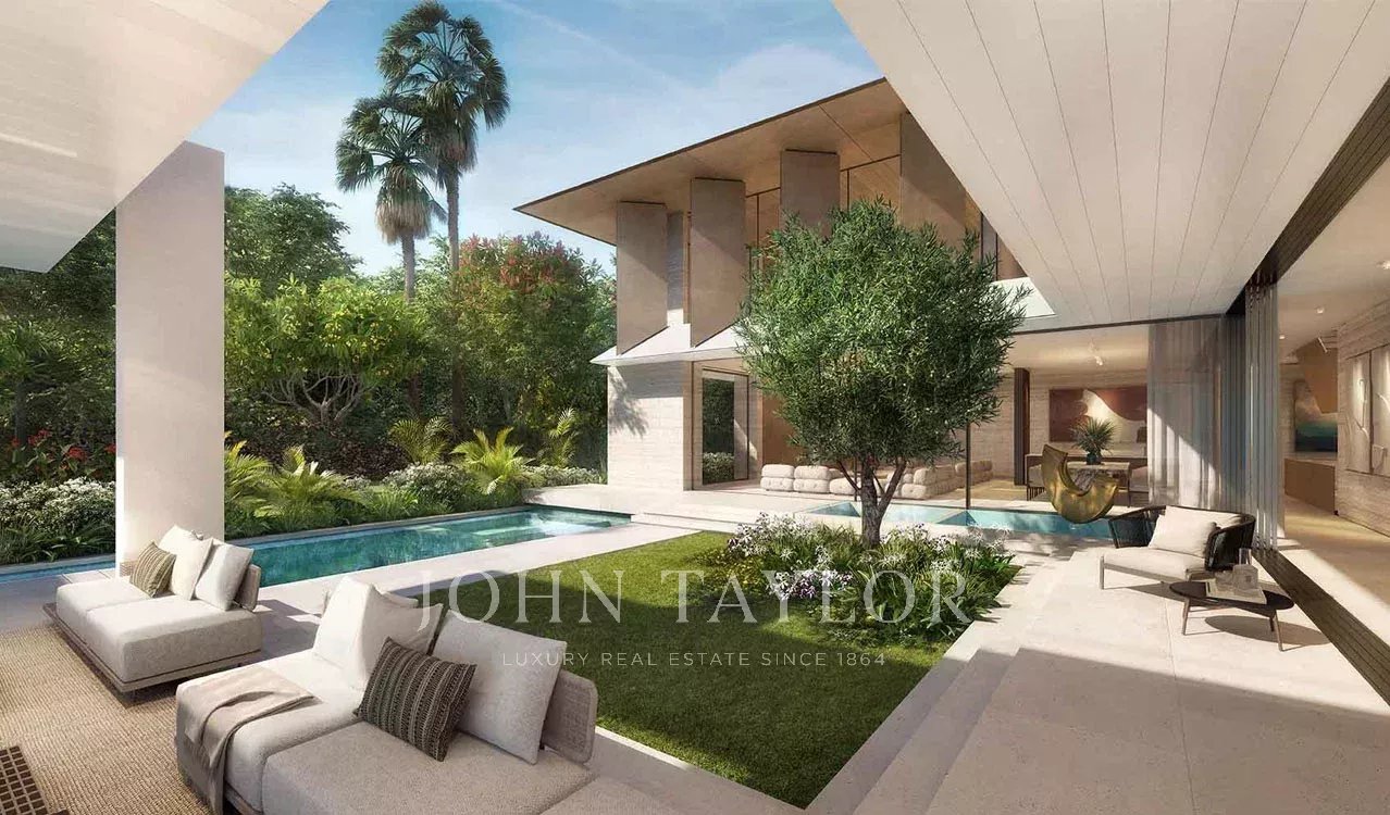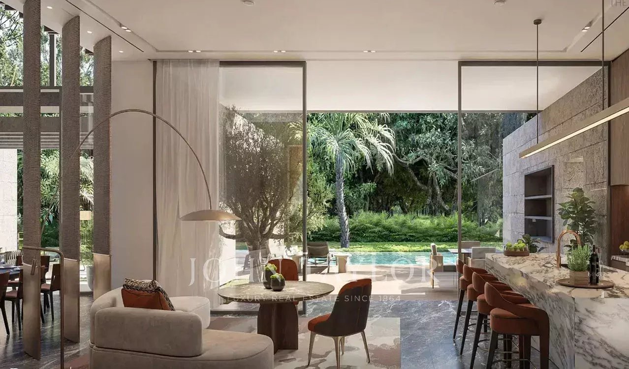* Seamless Indoor-Outdoor Living: Floor-to-ceiling sliding windows connect luxurious interiors to meticulously landscaped gardens and a private pool.