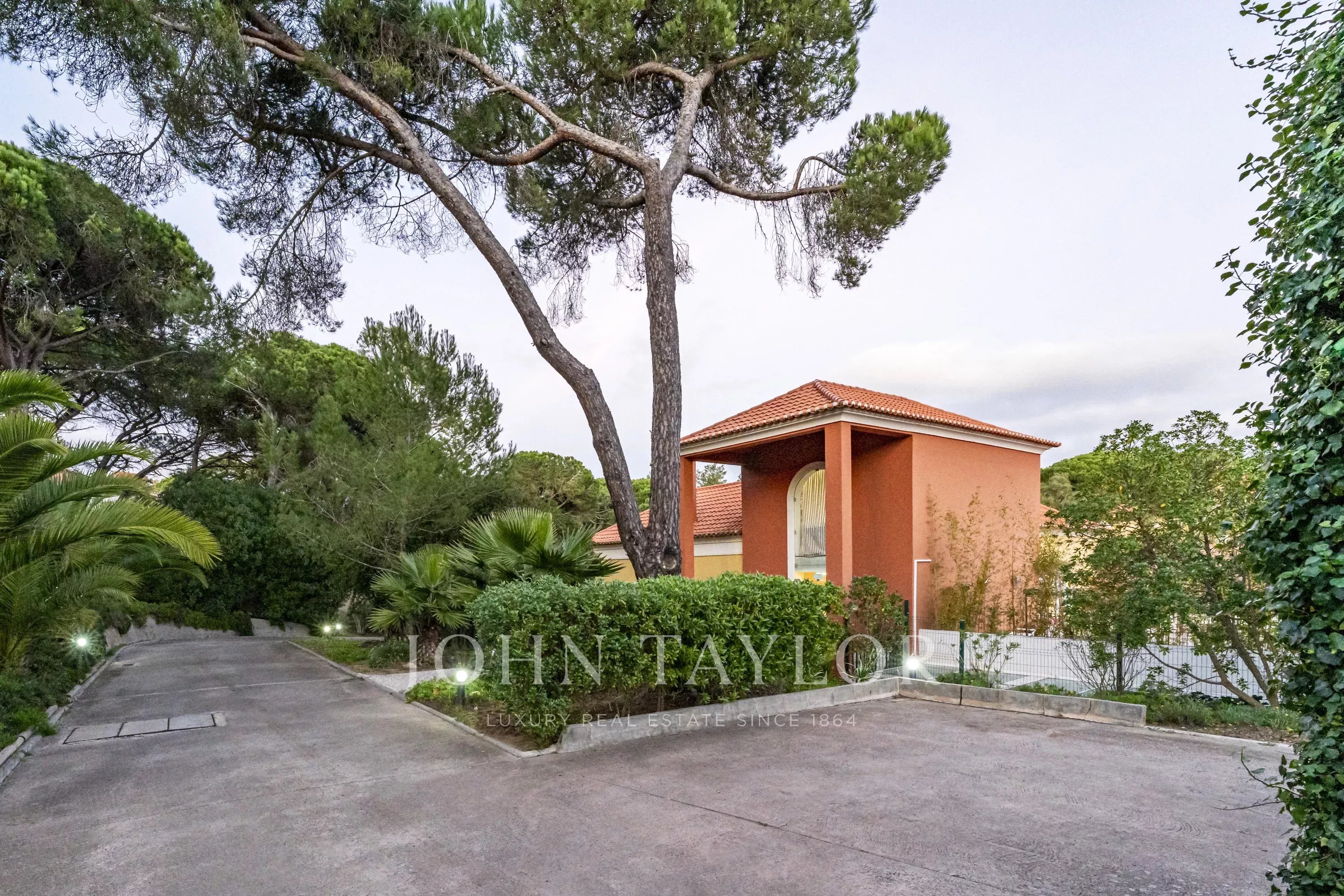 Главный этаж открывается элегантной входной зоной, которая ведет в два просторных салона, оба с прямым выходом на террасу — идеальное место для отдыха или приёма гостей. Полностью оборудованная кухня включает обеденную зону и выход на террасу, дополнительно предусмотрен гостевой туалет. На этом этаже также находятся четыре большие спальни с собственными ванными комнатами и встроенными шкафами, две из которых имеют прямой выход в частный сад, а в коридоре расположены дополнительные шкафы для хранения.