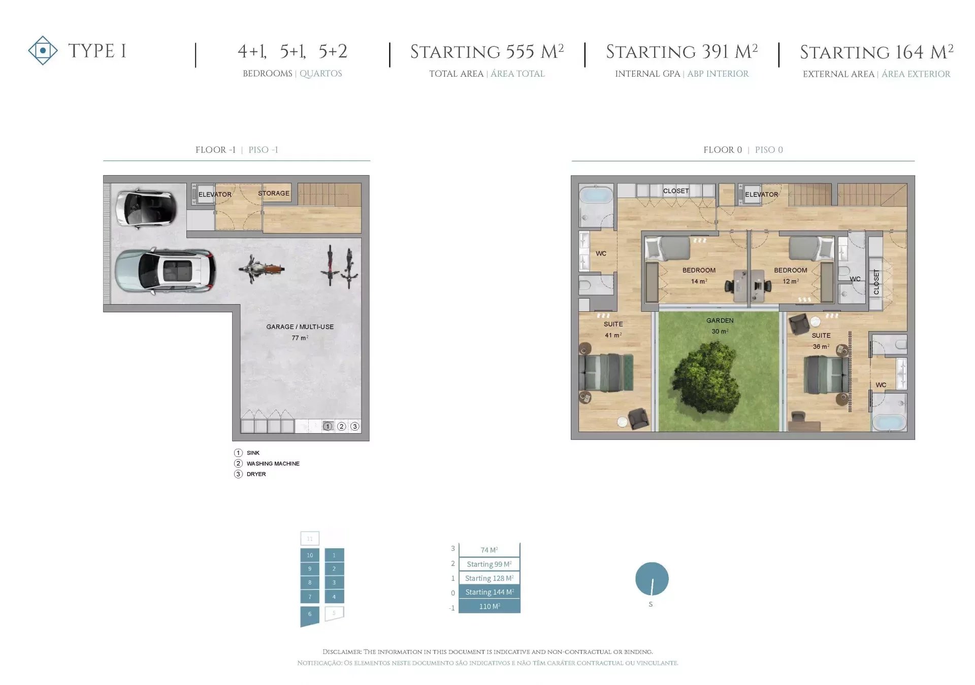 Каждая просторная вилла с 3-6 спальнями, частным бассейном, садами и подземной парковкой для многофункционального использования.