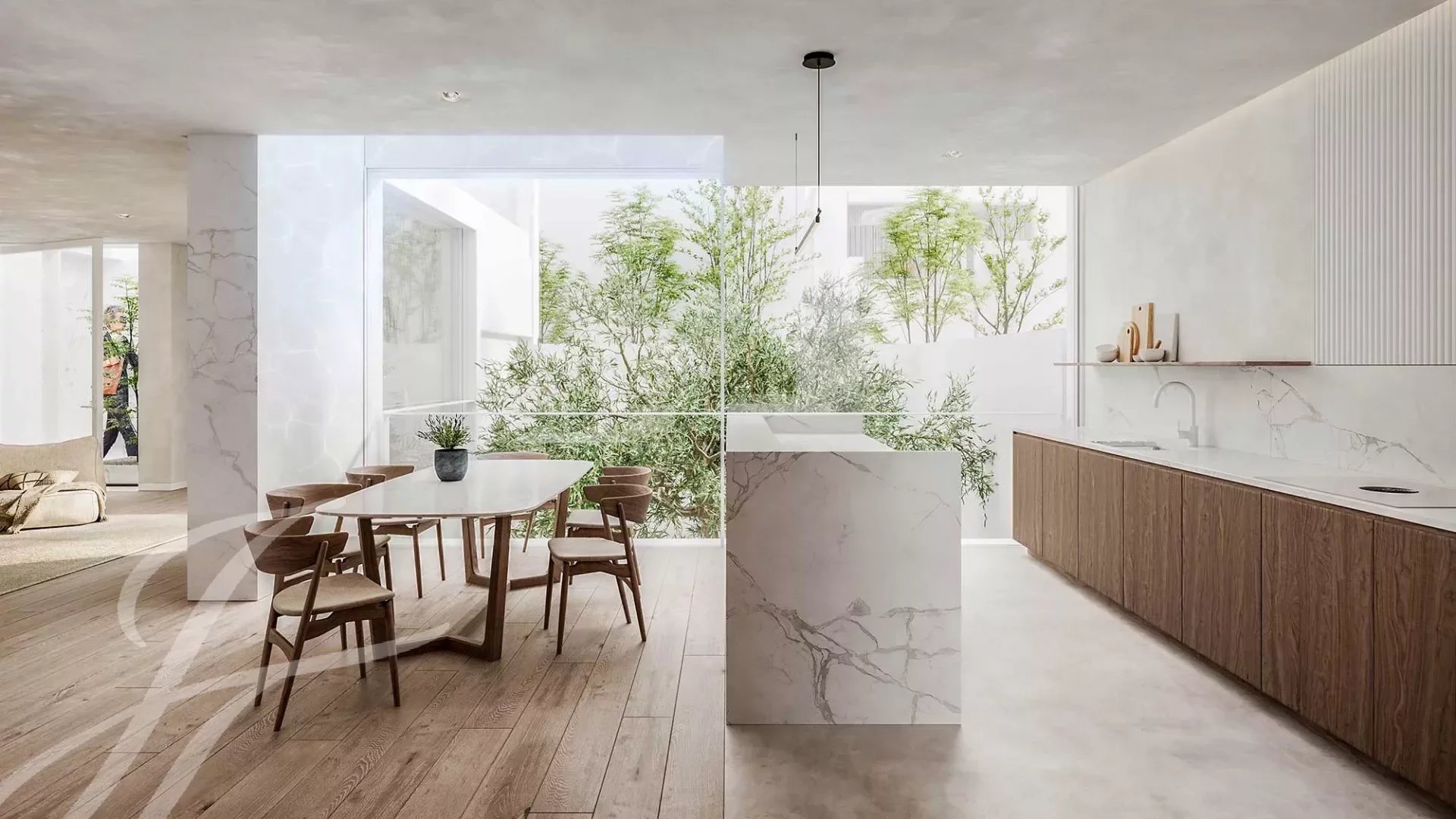 Внимание к деталям, использование высококлассных материалов и изысканных элементов дизайна создают атмосферу роскоши и утонченности, начиная с натурального высококачественного дерева на полу и заканчивая каменной отделкой кухни, ванных комнат и наружных элементов.