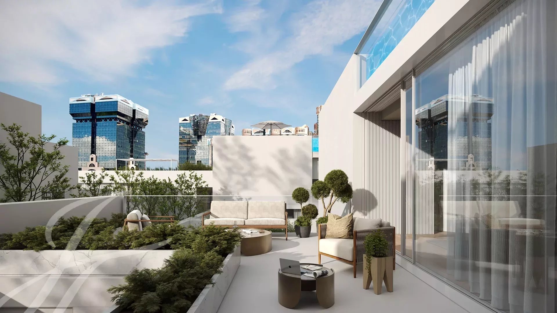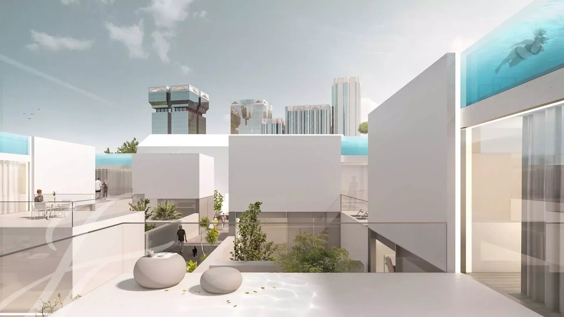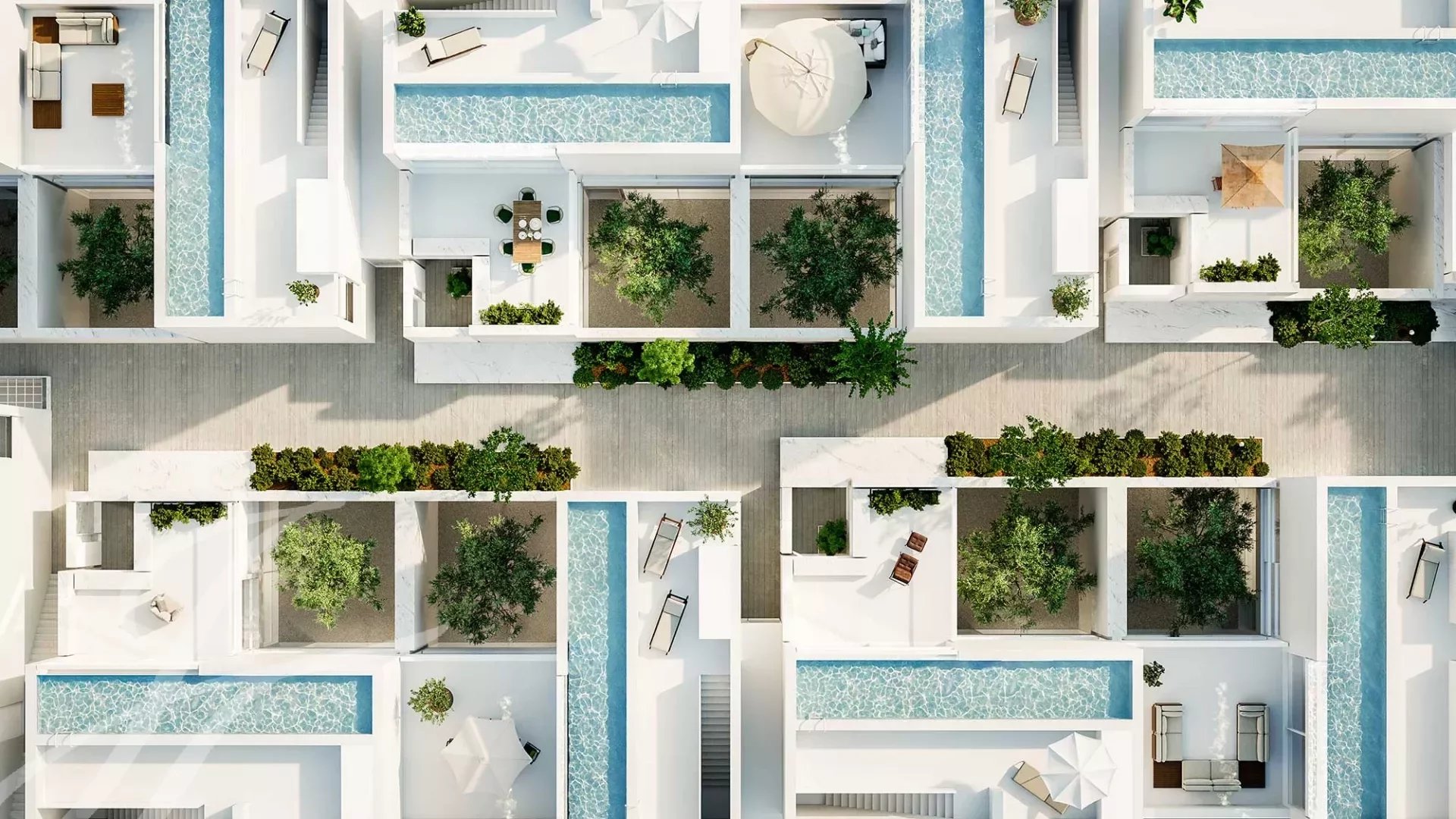В каждой резиденции создается ощущение света, земли и воды благодаря различным элементам, включая стеклянные стены от пола до потолка. На каждом уровне вилл будут патио и зеленые зоны для спокойной и приватной жизни.