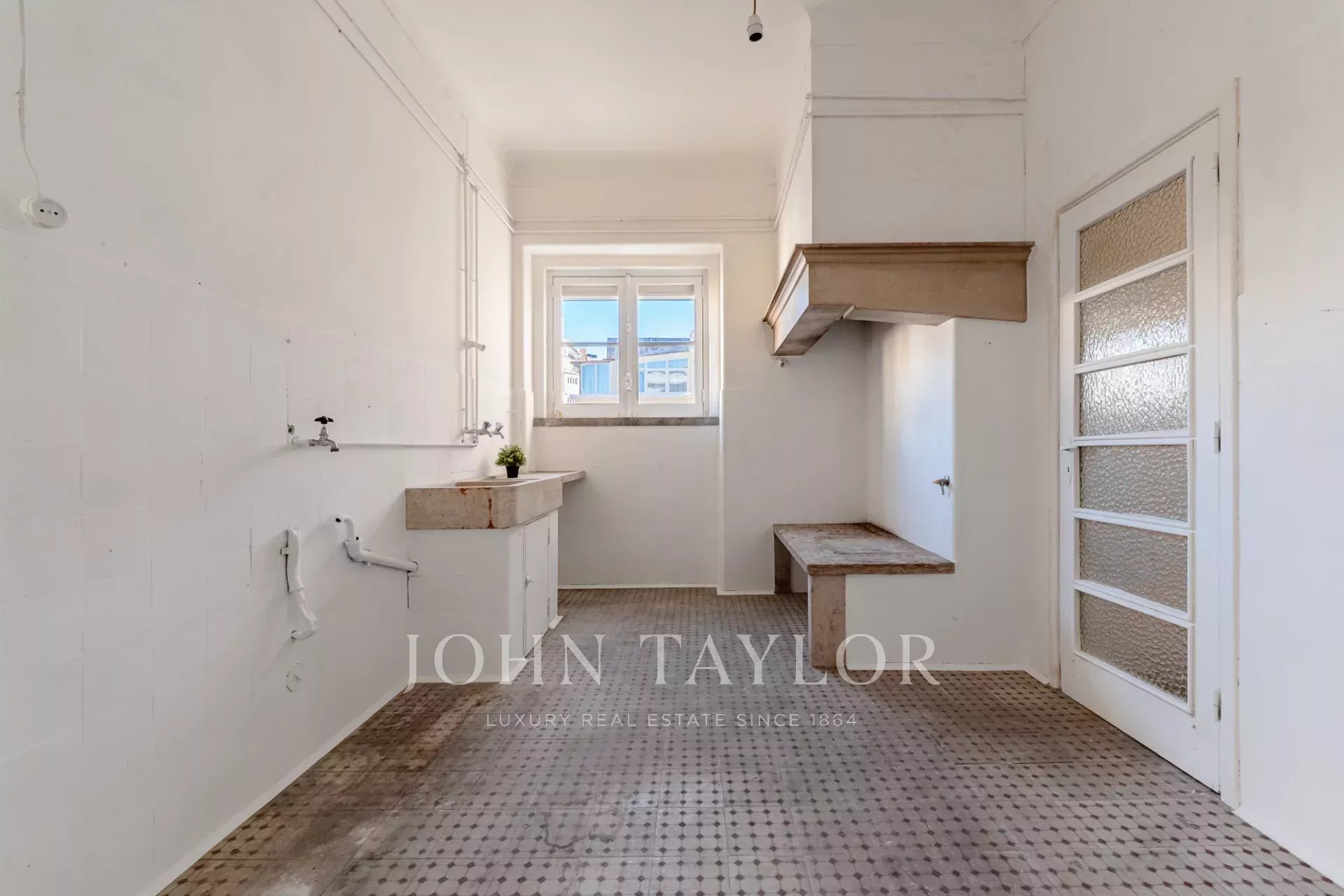 Интерьер включает в себя очень просторные помещения и кладовую площадью 8 м², предлагая отличный потенциал для персонализации: будь то современный ремонт с использованием современных линий или восстановление оригинального лиссабонского характера и очарования классических деталей.
