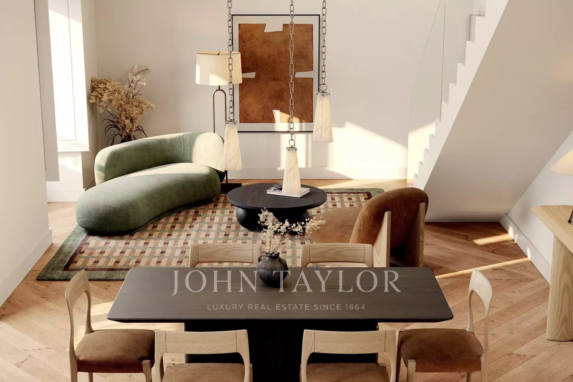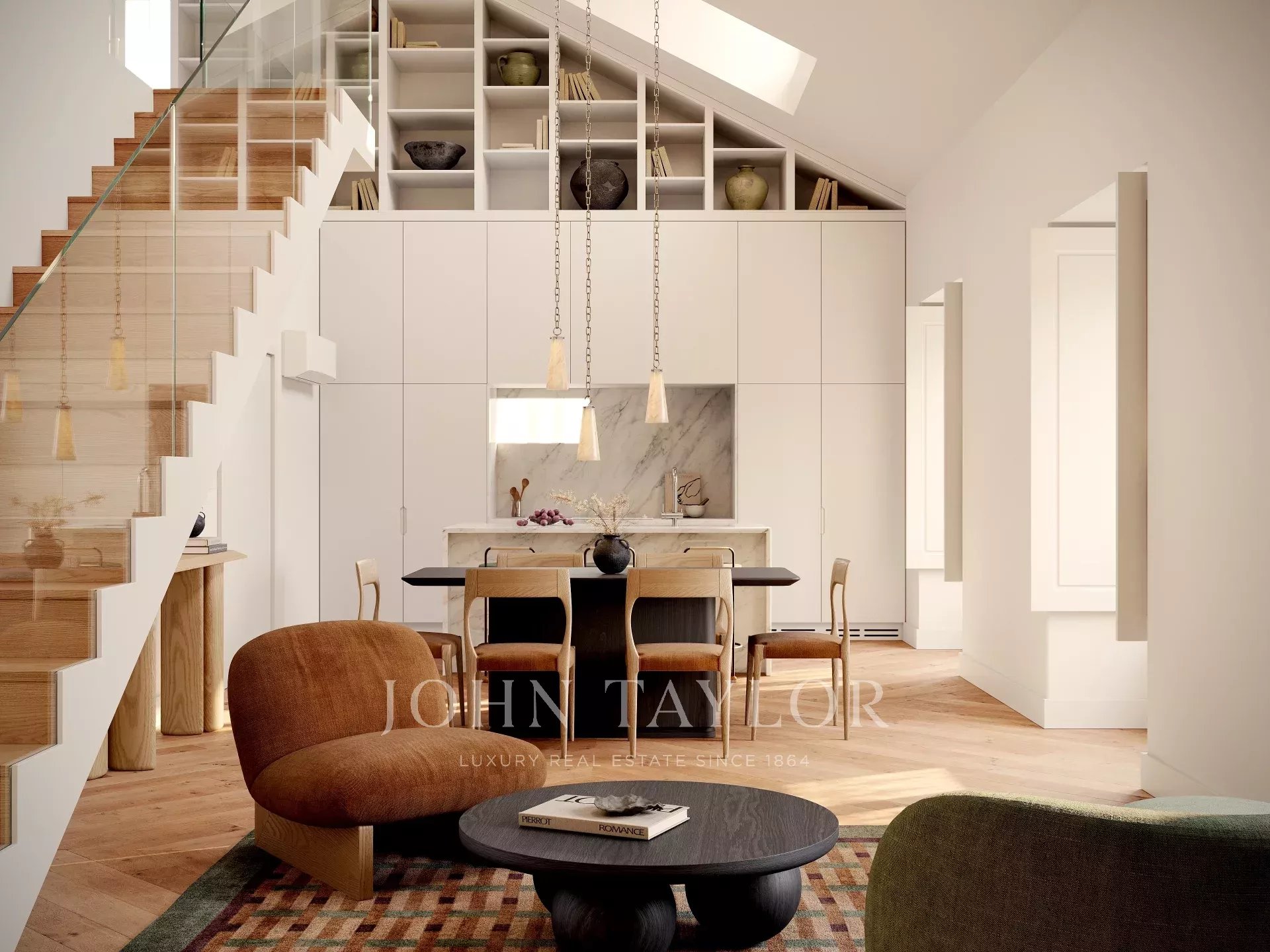 В квартире площадью около 187 кв. м есть светлая и открытая гостиная и столовая с высокими потолками и большими традиционными окнами. Кухня полностью оборудована и органично интегрирована в общественную зону, что делает ее одновременно функциональной и уютной. Две спальни и две ванные комнаты расположены на главном этаже, а на верхнем уровне находится просторная спальня с ванной комнатой, расположенная на возвышенности и идеально подходящая в качестве мастер-сьюта или гостевой зоны.