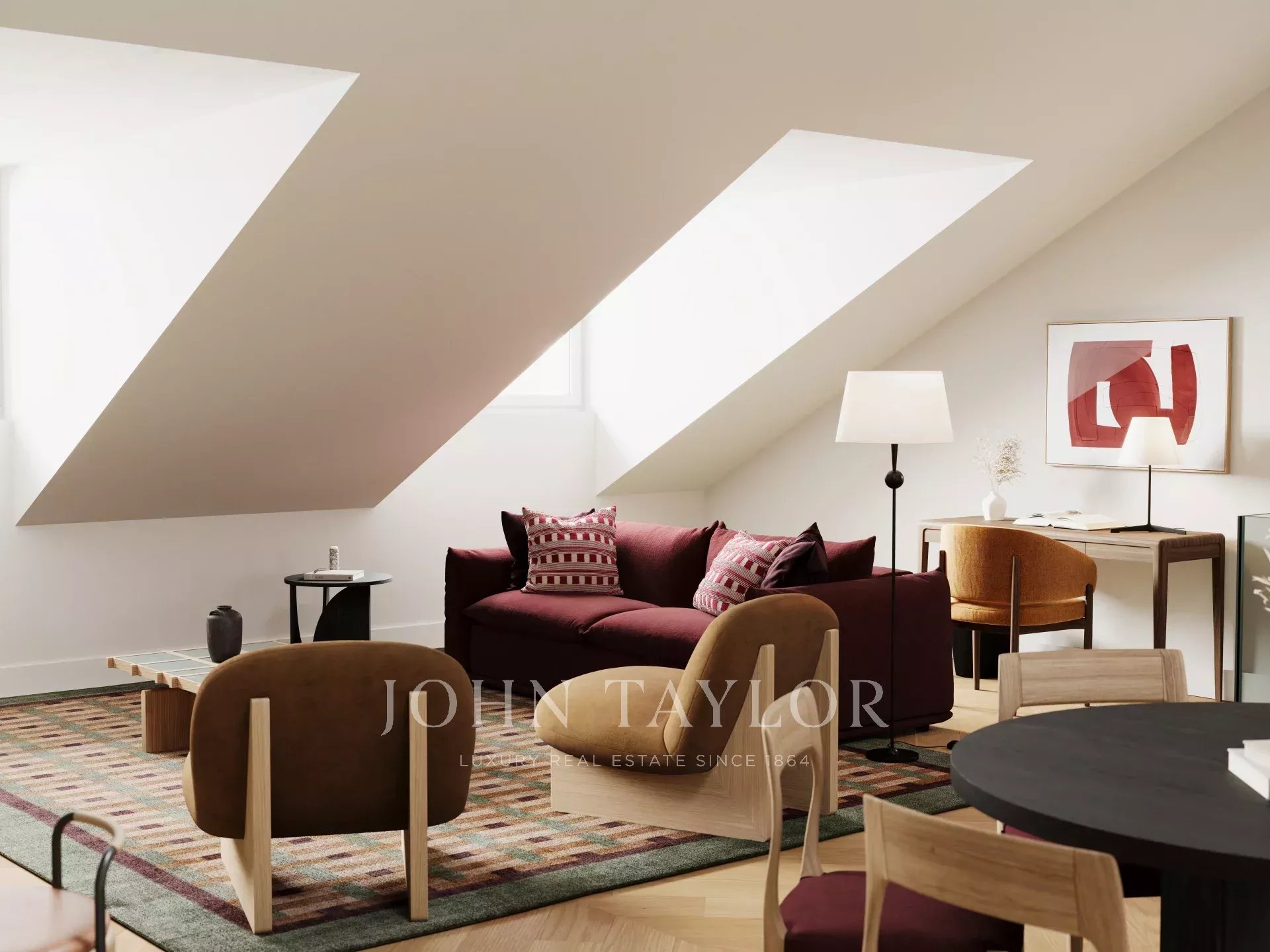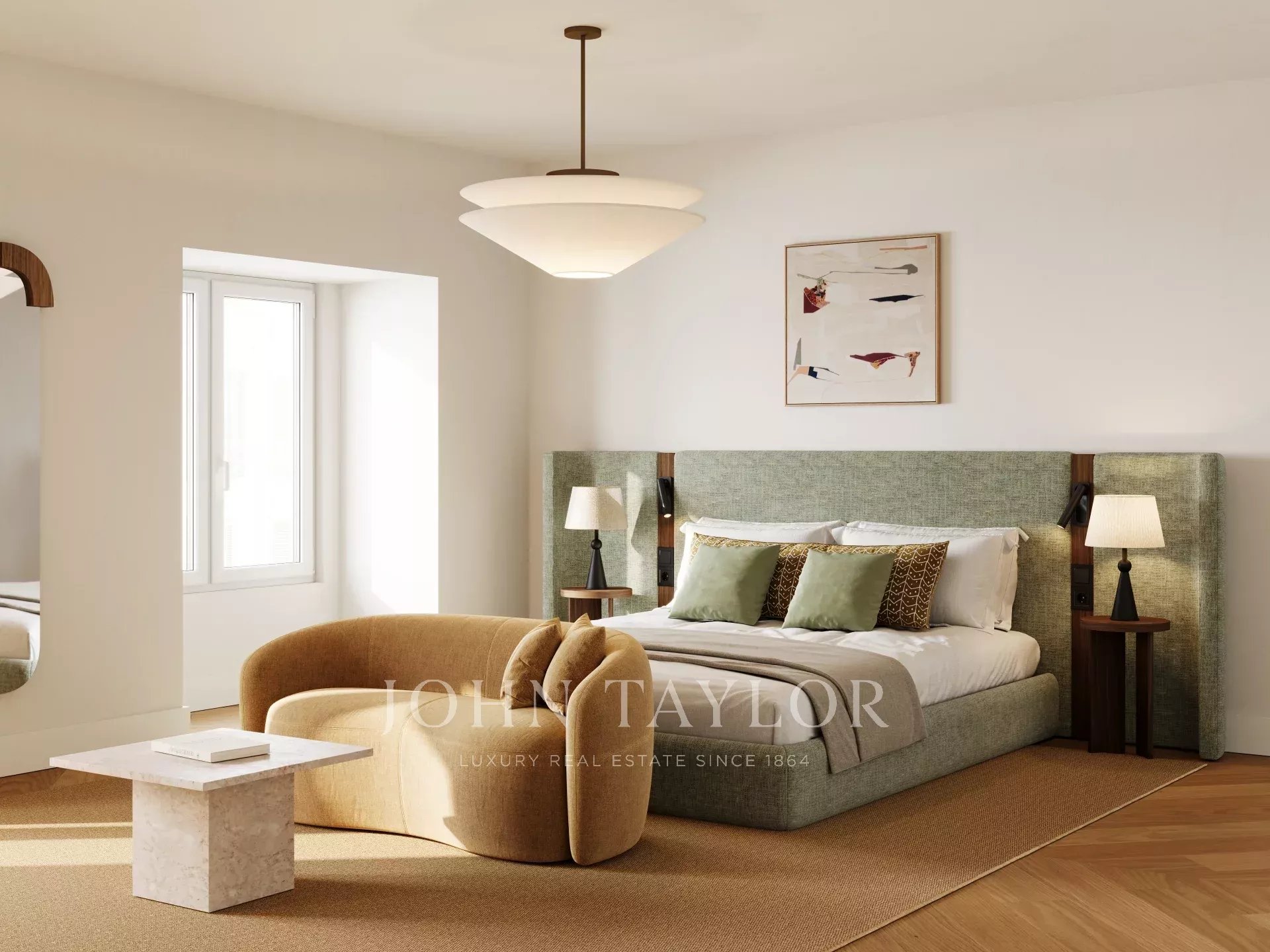 Расположенный на верхнем этаже дома Fanqueiros House, полностью отреставрированного здания XIX века в самом сердце лиссабонского района Байша, этот дуплекс с двумя спальнями предлагает просторное пространство, архитектурный характер и обилие естественного света на двух тщательно продуманных уровнях.