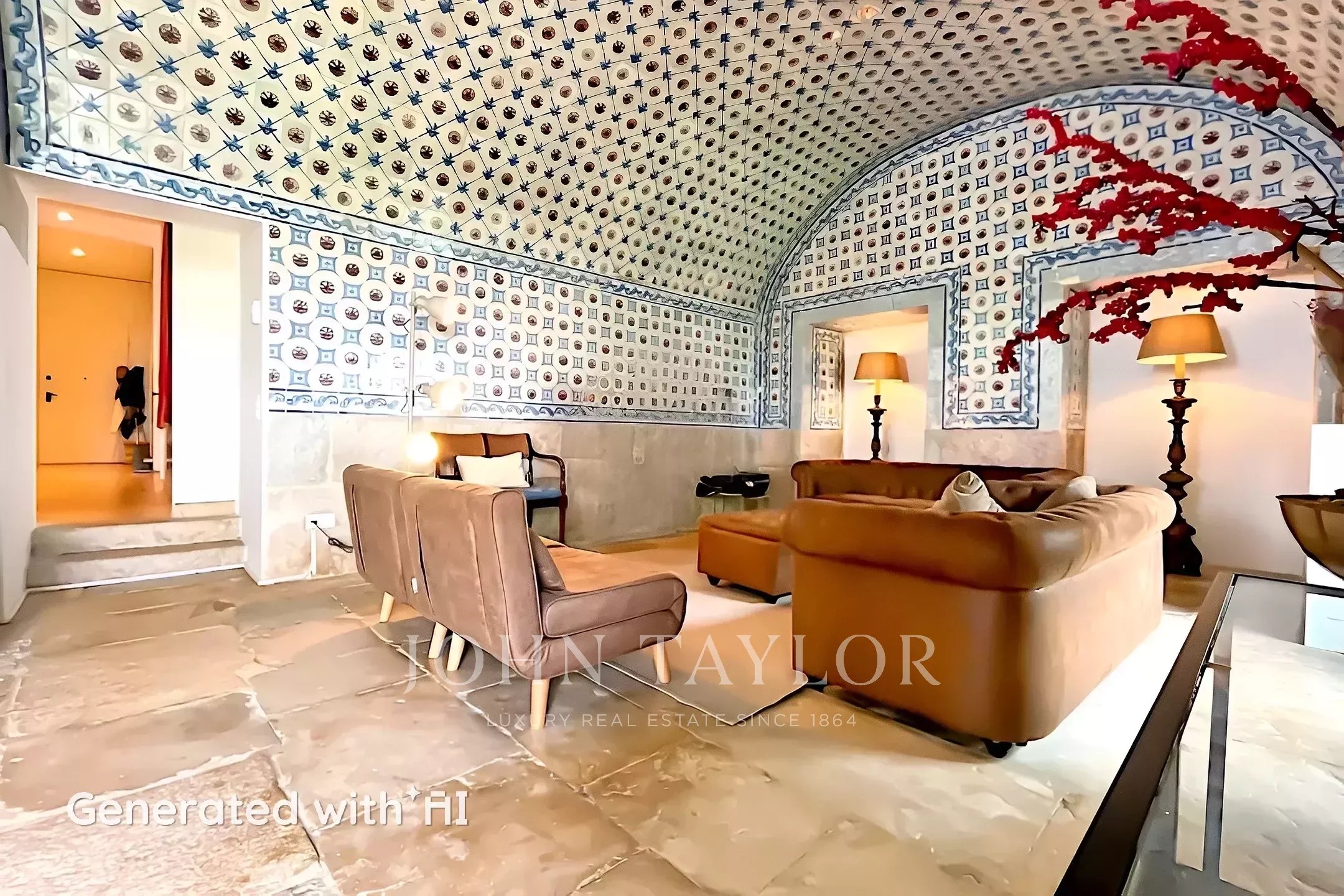 В этой квартире с четырьмя спальнями и четырьмя ванными комнатами есть гостиная площадью 100 м², украшенная азулехос XVIII века и выходящая в частный сад на южной стороне.