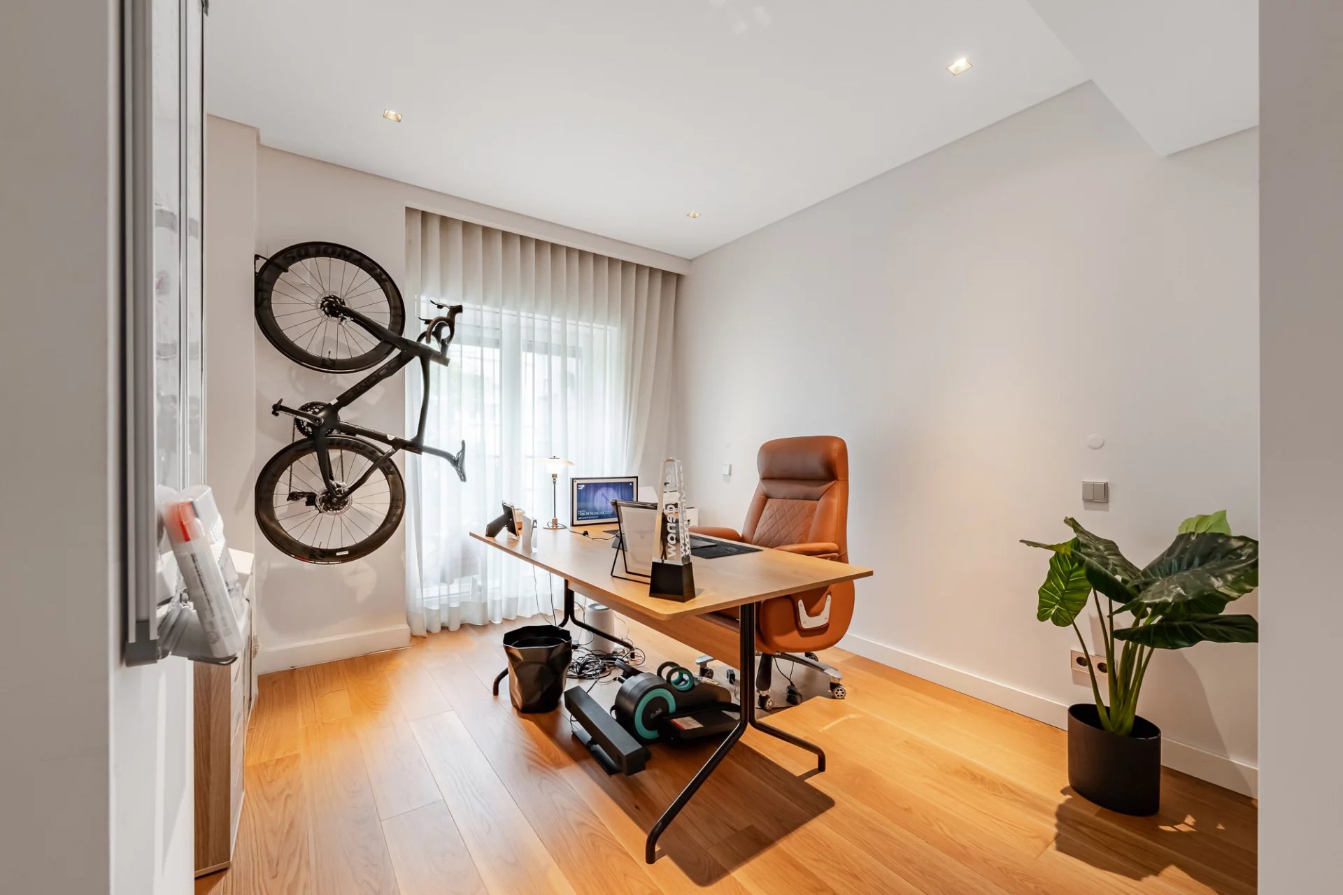 В доме пять спален с ванными комнатами, частный домашний кинотеатр с системой звукоизоляции и роскошная паровая баня. Изюминкой особняка является частный бассейн - эксклюзивное место для отдыха в самом центре Лиссабона.