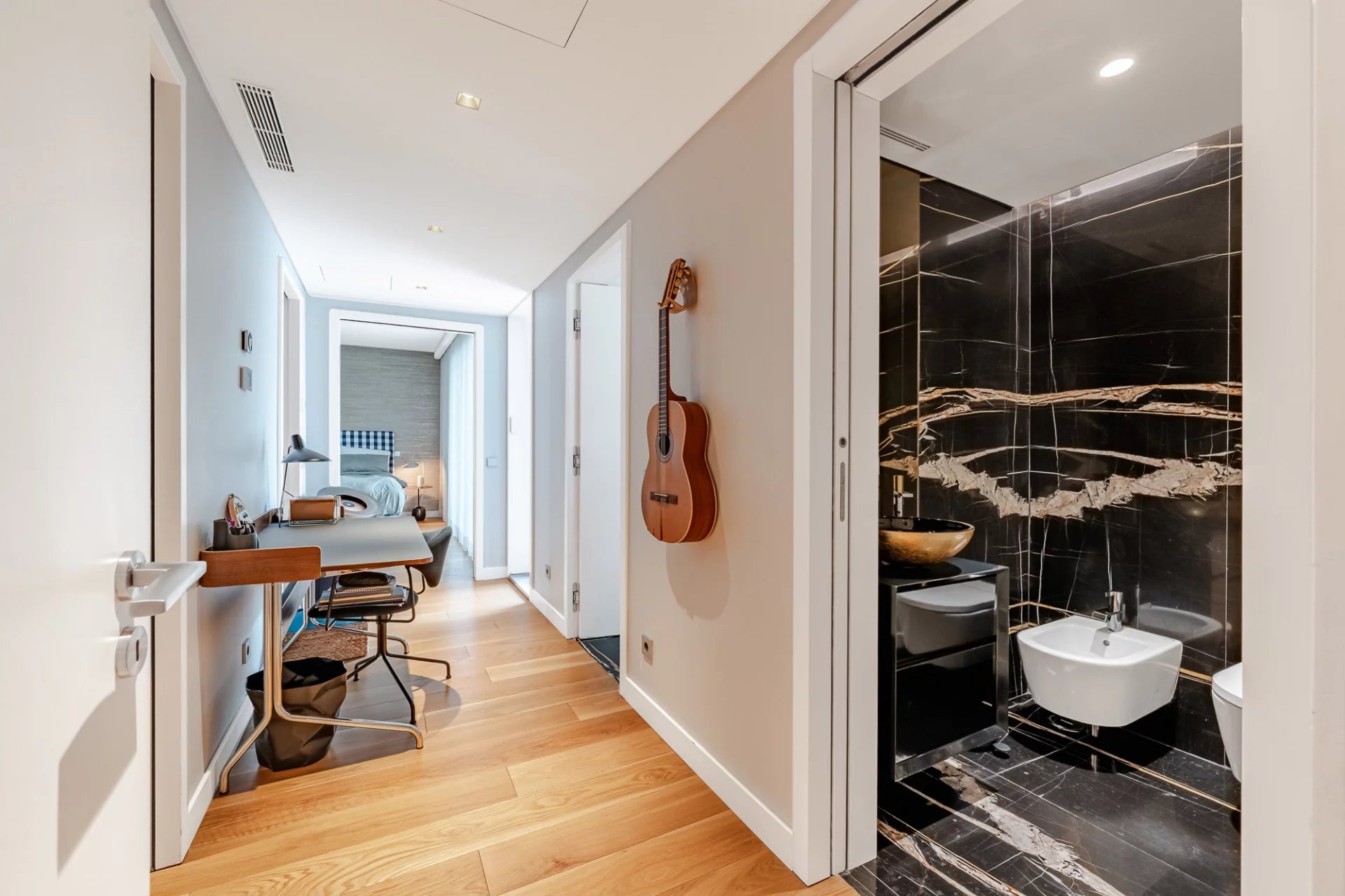 Каждая деталь отражает исключительное качество и мастерство исполнения. Квартира расположена в прекрасно отреставрированном здании и располагает четырьмя парковочными местами и большой кладовой.