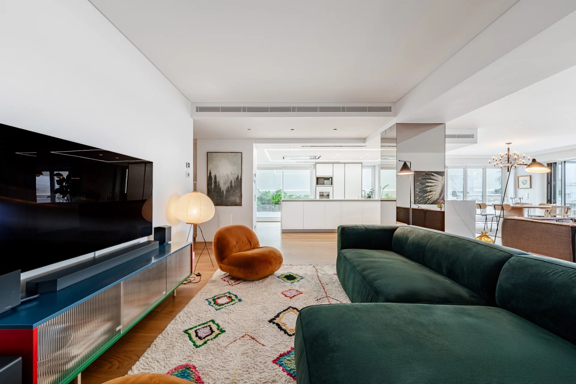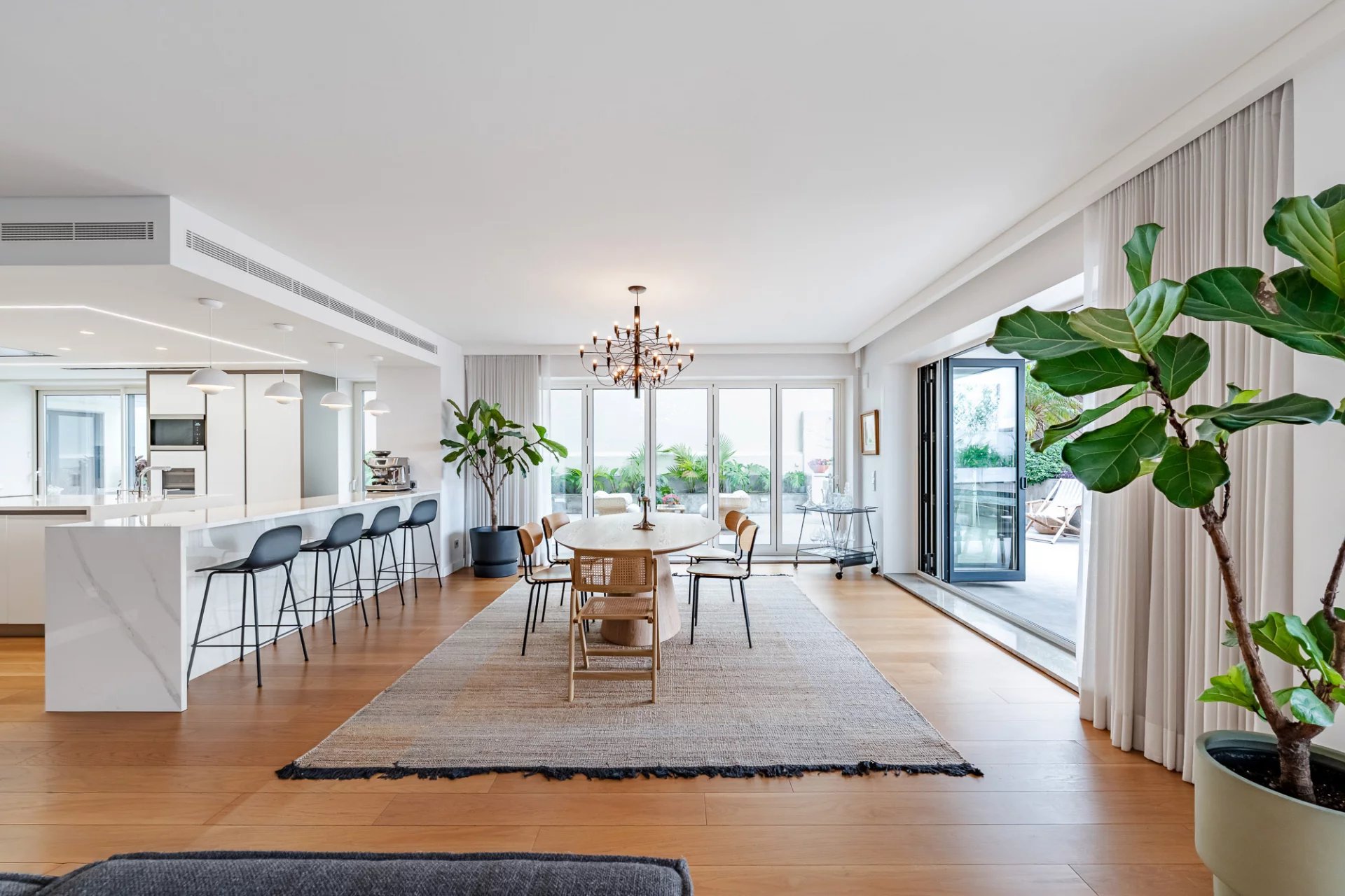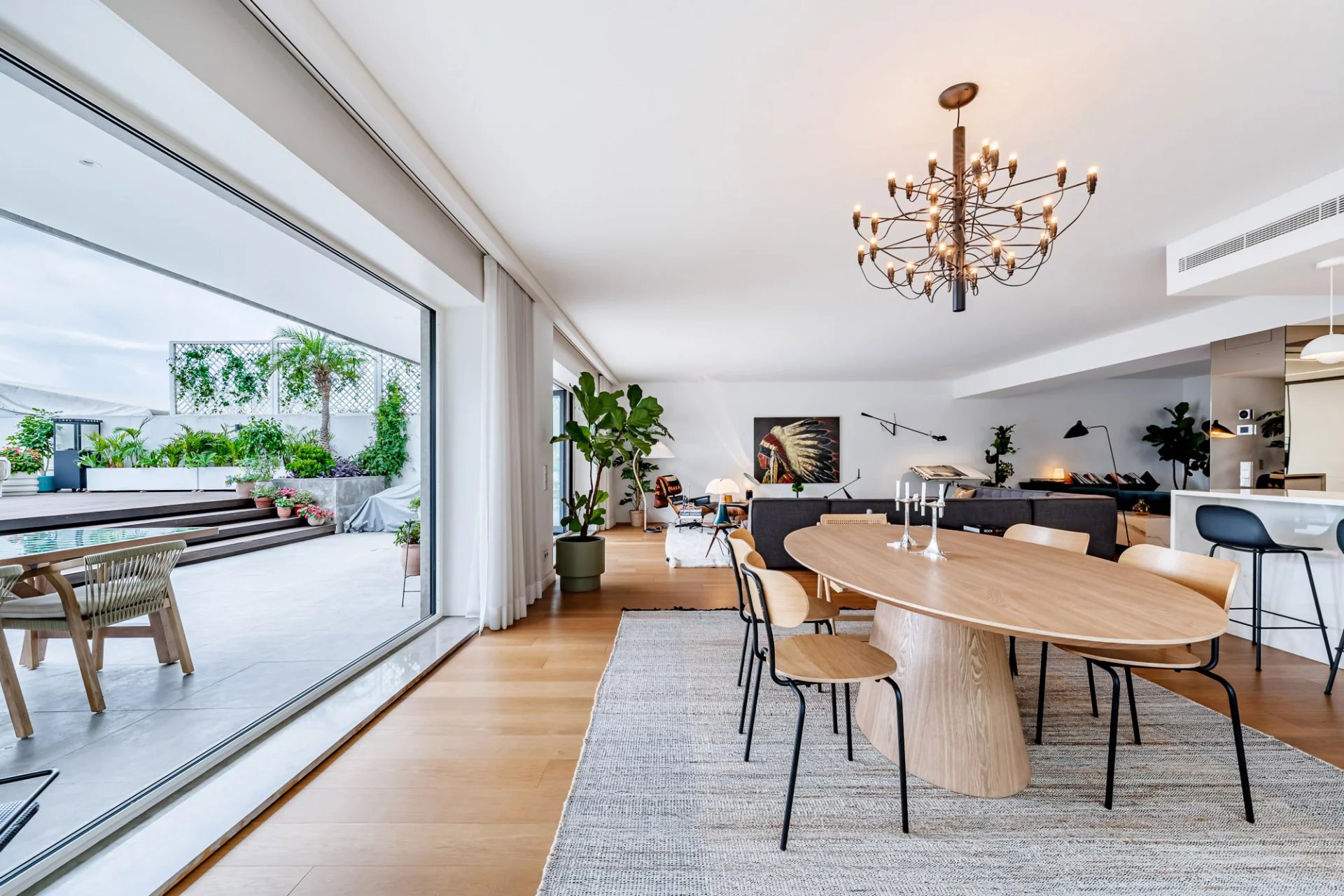 Спроектированная с современной утонченностью, квартира сочетает в себе просторные объемы, естественное освещение и изысканную отделку. Просторная гостиная и столовая с кухней открытой планировки выходят на обширные террасы, создавая плавную связь между комфортом в помещении и жизнью на свежем воздухе.