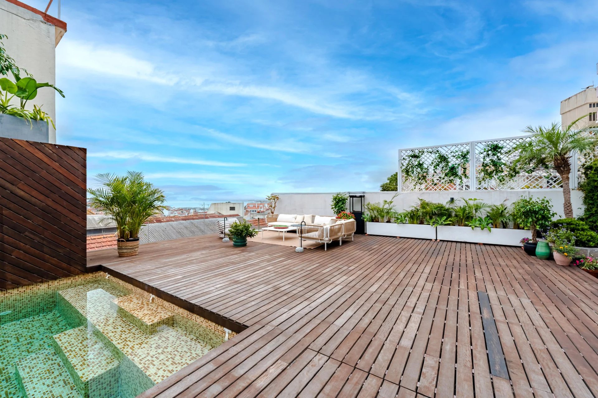 Эта замечательная квартира предлагает поистине уникальный опыт проживания в Лиссабоне. 421 м² элегантного внутреннего пространства дополнено 300 м² выдающихся открытых площадок с панорамным видом на город и реку Тежу.