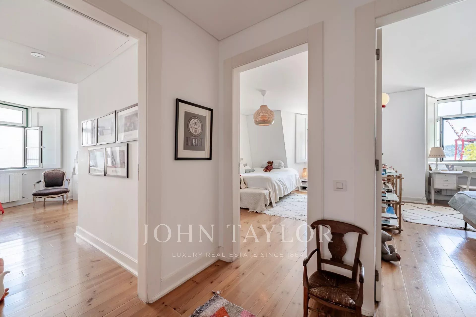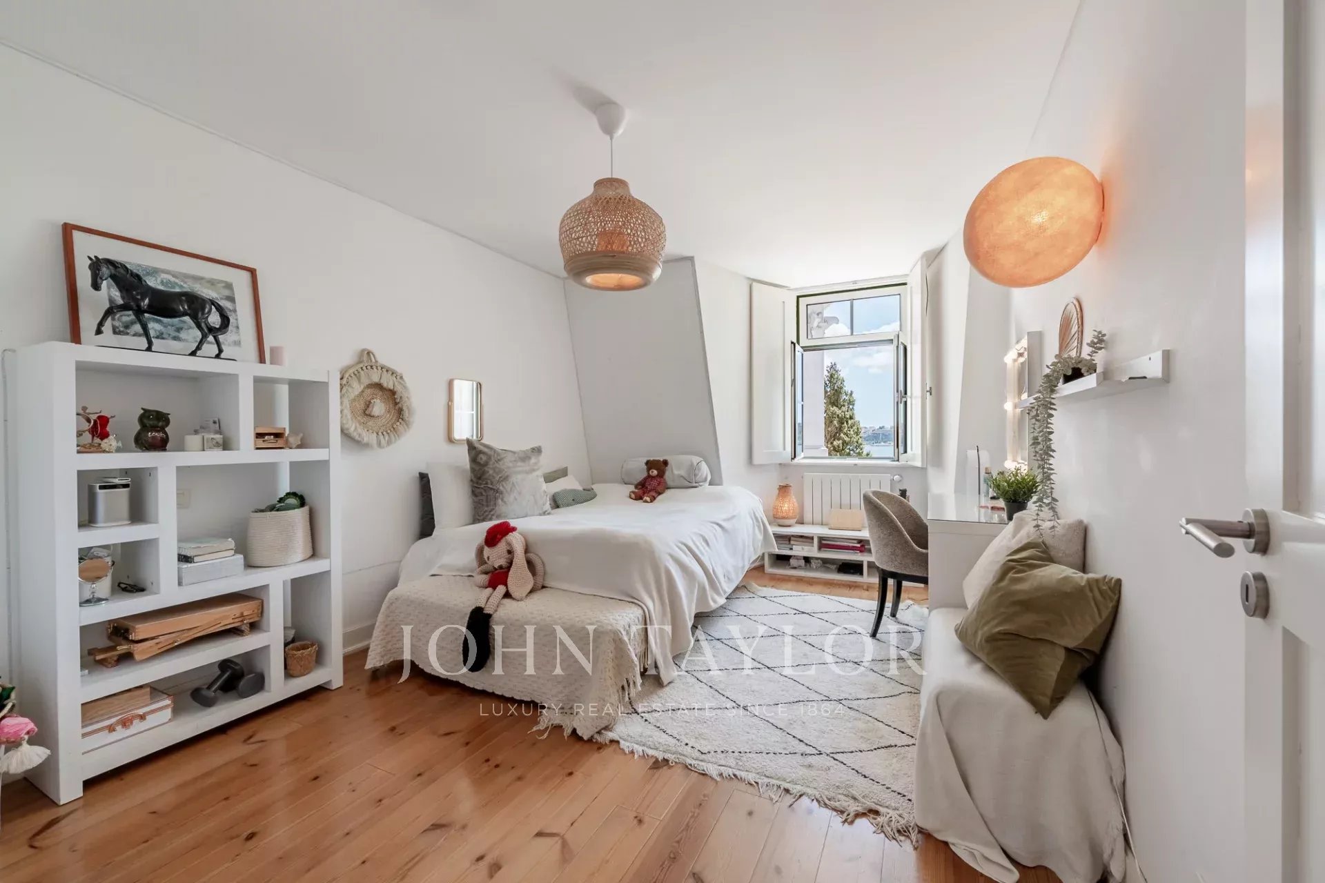 Этот элегантный двухэтажный дуплекс с четырьмя спальнями идеально расположен в популярном районе Лиссабона Сантуш. Из окон открывается непрерывный вид на реку Тежу и легендарный Национальный музей античного искусства. В этом особняке сочетаются неподвластное времени архитектурное очарование и современный комфорт.