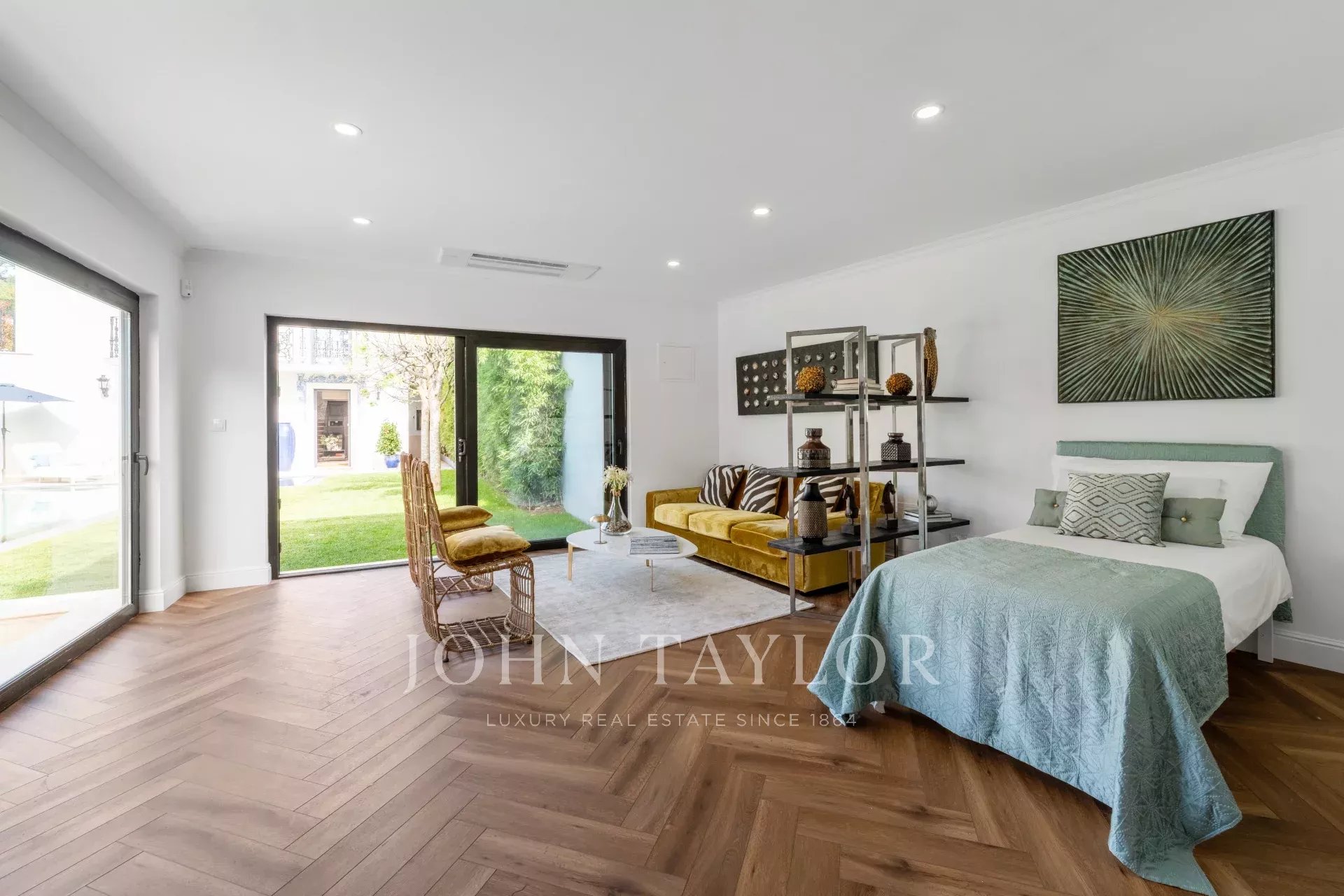 Снаружи дома расположен частный сад с бассейном и отдельная пристройка с кухней и ванной комнатой, идеально подходящая для использования в качестве гостевых апартаментов, домашнего офиса или тренажерного зала.